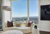 The Grand living and dining room is an exquisite space to entertain or relax after work, with prime-grade dark-chic hardwood floors, automated shades, floor-to-ceiling windows framing amazing views, and grand-height ceilings. The kitchen is equipped with Sub-Zero fridge, Wolf appliances, Bosch dishwasher, and premium Quartzite countertops. The balcony offers stunning views of the bay and the East Bay as far as Mt. Diablo.