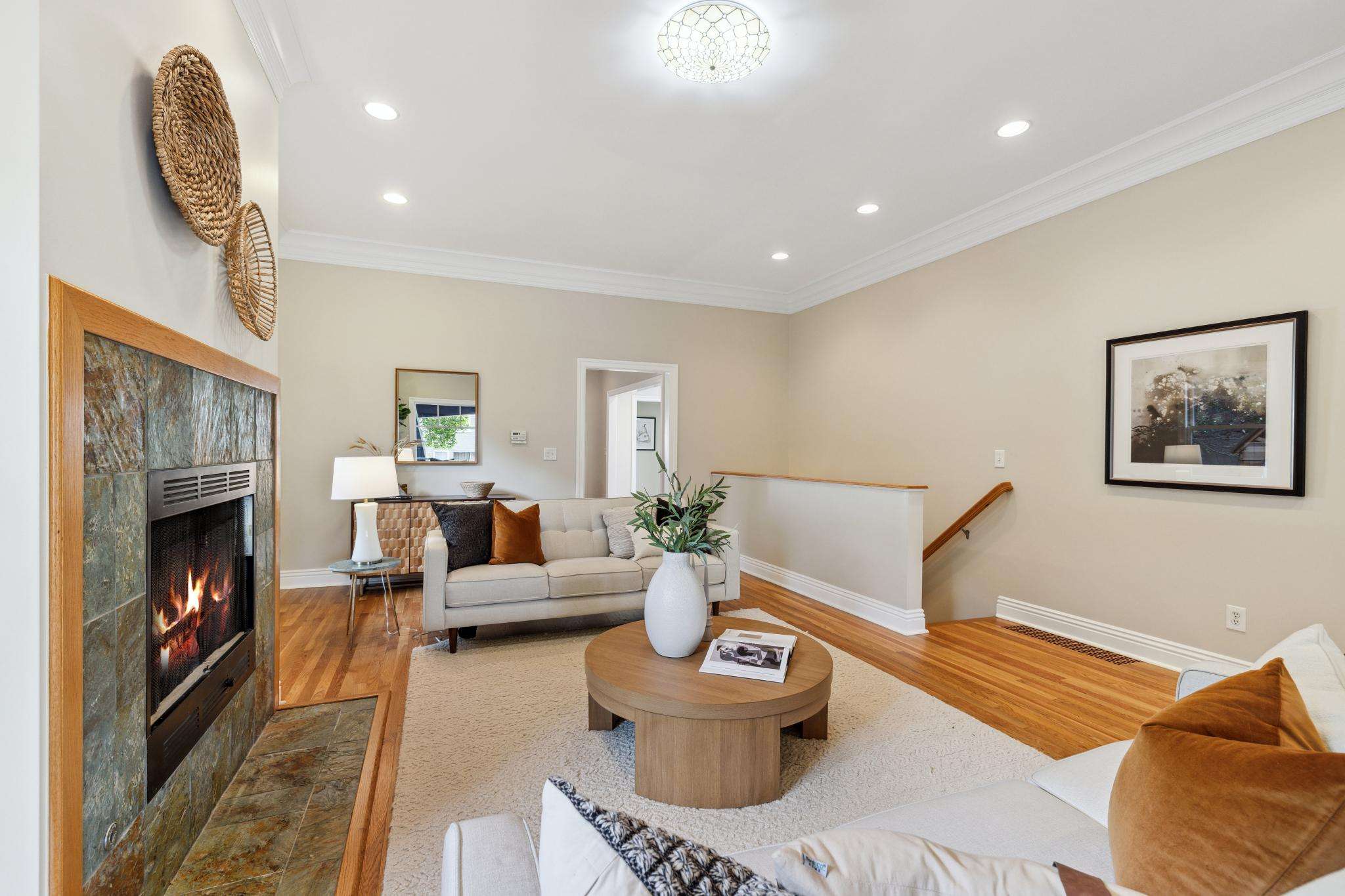 This gorgeous 1904 Craftsman was renovated and the quality of the work shines through. A stately living room with a fireplace, high ceilings, lovely hardwood floors, and crown molding welcomes you. Across from the expansive living room is the dining room which connects to the outside via a deck, and opens to the updated kitchen. There are three bedrooms, two of which are over sized. The front bedroom has room for a king size bed with plenty of room left over. The second bedroom is also large and both rooms have sunlight streaming through large windows. The third bedroom and ensuite were added after the original house was built. A walk-in closet sits beyond the bathroom. Under the house is a full height basement. Let your imagination run wild. Will it house a craft room? a home gym? a play area? or will you explore building out another bed room. There is a half bath in the basement as well. The two car garage is a nice bonus, and two more parking spots in the driveway. The current owners implemented a seismic retrofit. Low pest report. No action items on the home inspection.