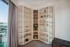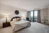 The kitchen, featuring a premium SubZero refrigerator, seamlessly connects to a stylish dining alcove with pendant lighting. The primary suite is complete with an ensuite bath, pristine antique fixtures, a custom walk-in closet, and private balcony showcasing dazzling cruise ships. Both bedrooms are thoughtfully designed with built-ins, providing ample storage. The second bedroom also boasts a walk-in closet and captivating vistas.