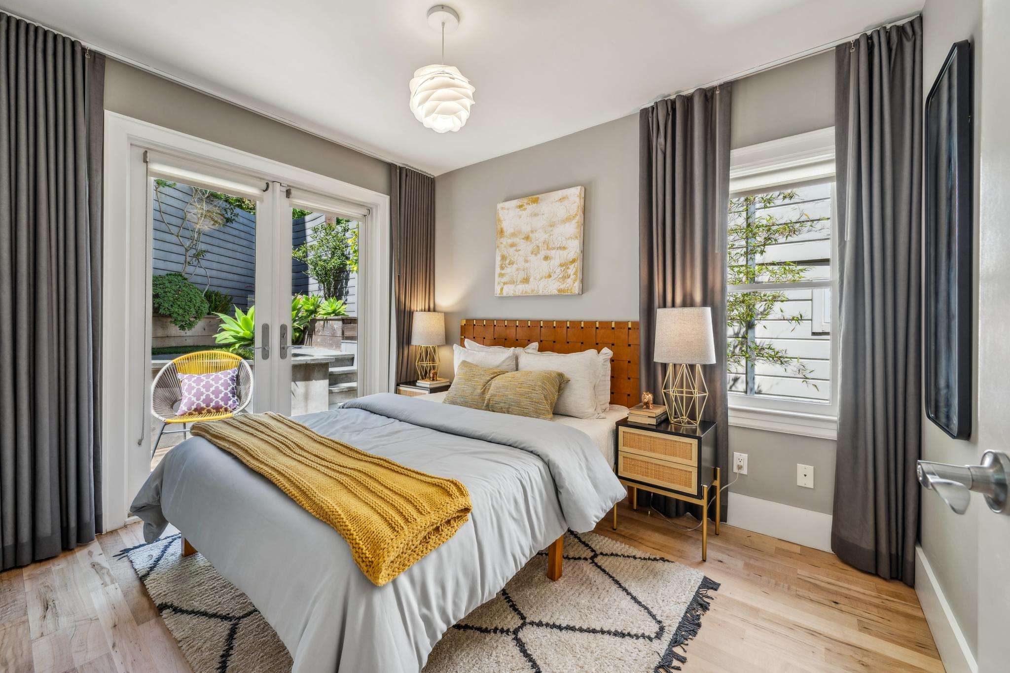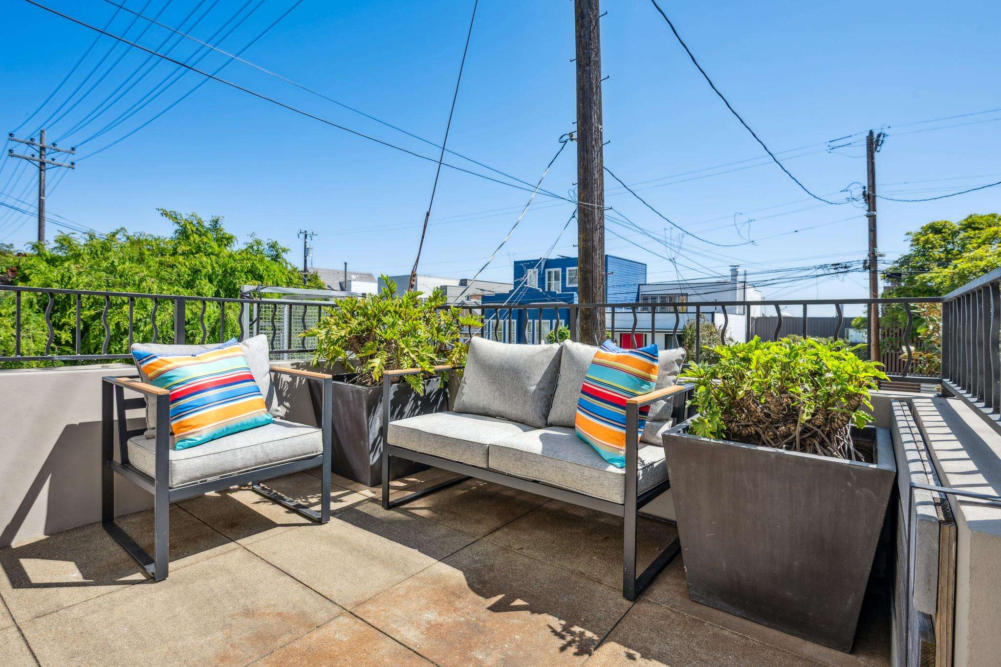 Other appealing features include a total of 3 distinct patios or seating areas to enjoy the sunshine at any time of day, blackout shades in the bedrooms, on-demand water heater, secure storage for bicycles or other valuable items and multiple irrigation zones serving the front and rear yards. The 1-car garage comes with extensive built-in storage. Your guests will find it easy to park on the street (Potrero Hill is known for its abundant perpendicular parking). 20th Street with its modern public library, GoodLife Grocery Store and other neat cafes is very close by and 18th Street with its many beloved cafes, restaurants and stores is also within easy walking distance. There is a children’s playground, tennis court and Rec Center just half a block away. Whole Foods, the fun Dogpatch neighborhood and Crane Cove beach where you can launch a kayak is 5 minutes away. Iconic wharfside restaurants such as The Ramp with shimmering Bay views are within easy reach while the Mission Bay hospitals are all a short drive or bicycle ride away. This neighborhood is also especially well-served by freeway connections which make getting downtown or to the airport fast and easy!