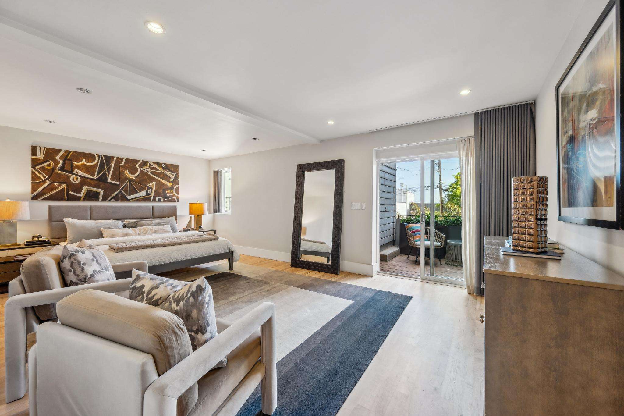 There is a spacious office adjacent to the kitchen, with a balcony, that could be used as a media room or children's playroom or potentially to accommodate guests. On this level you will also find a delightful bedroom with french doors that allow you step directly out into the beautiful terraced garden. The garden features a soothing fountain and many succulent plants with several convenient seating areas to sit and enjoy a drink or meditate - a private and tranquil respite from the city.