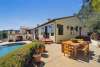 Four bedroom retreats line the hallway, offering flexibility for office, guests, and family. Note the mahogany doors that bring richness and classic integrity. At the end of the hallway, the Primary Suite (10 ft. cathedral ceiling) is a dream escape, perched strategically at the home's upper southeast wing. Luminosity streams in abundance, with canyon, hillside, and ridgeline vistas all around. A private terrace is a panoramic crow's nest overlooking and leading down to your private poolside resort. The primary suite also hosts an enormous walk-in closet and a decadent double shower with rainforest head and body spray.