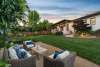 - Serene backyard with mature landscaping, seating areas, spacious lawn, and covered porch for entertaining