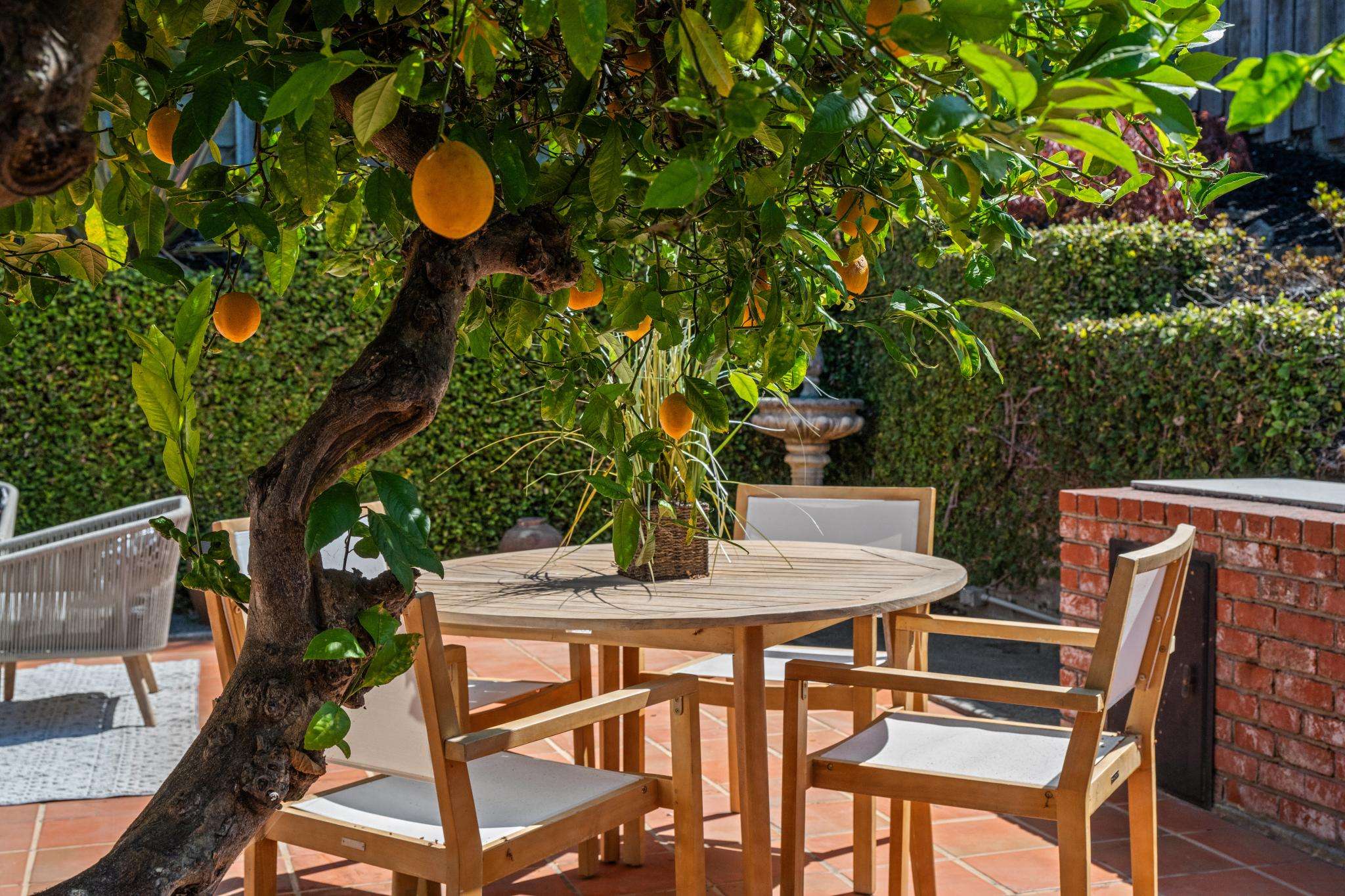 Set back from Broadway Terrace on a corner cul-de-sac, this home offers a lovely landscaped front yard, and a private, fenced-in, brick and tile backyard with mature plants, fountain, swings, wooden decking and a Meyer lemon tree. Ideal for indoor/outdoor entertaining and play!