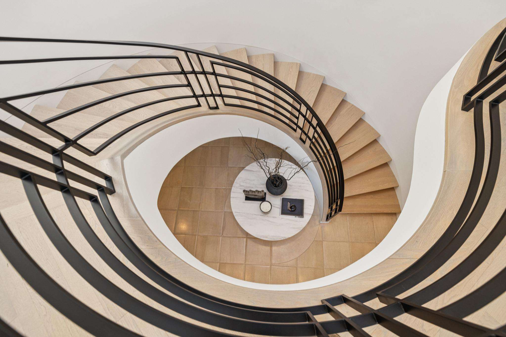 Curved Staircase Lit by a 16-ft. Skylight