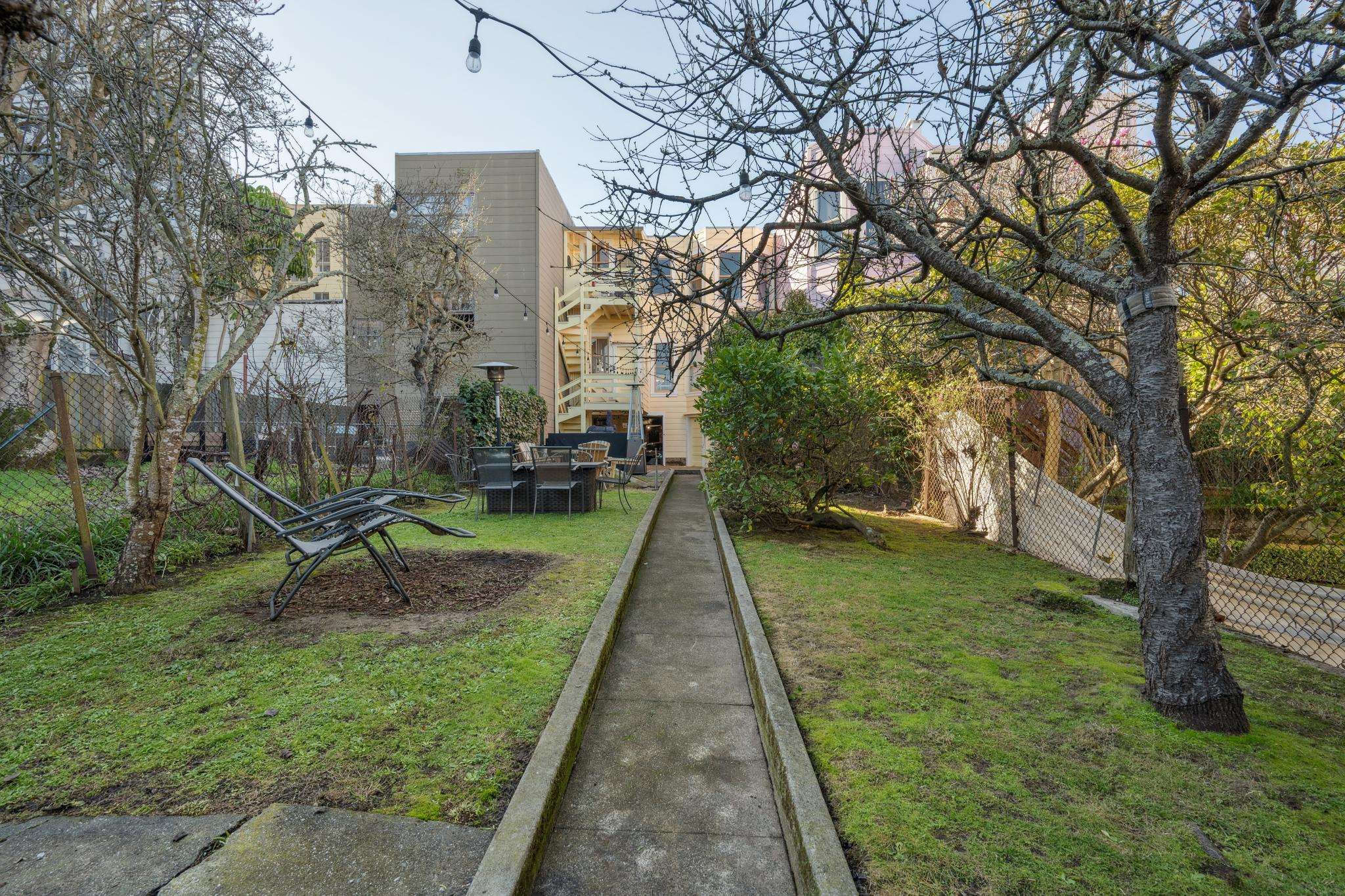 Behind the garage, the property includes a long, deep shared rear garden with mature landscaping including an orange tree, offering a spacious and peaceful outdoor retreat. Head outside and you are in vibrant, walkable Cow Hollow, around the corner from shops on Union Street, a short stroll from eateries on Chestnut, with easy access to Fort Mason, Crissy Field, and public transit.