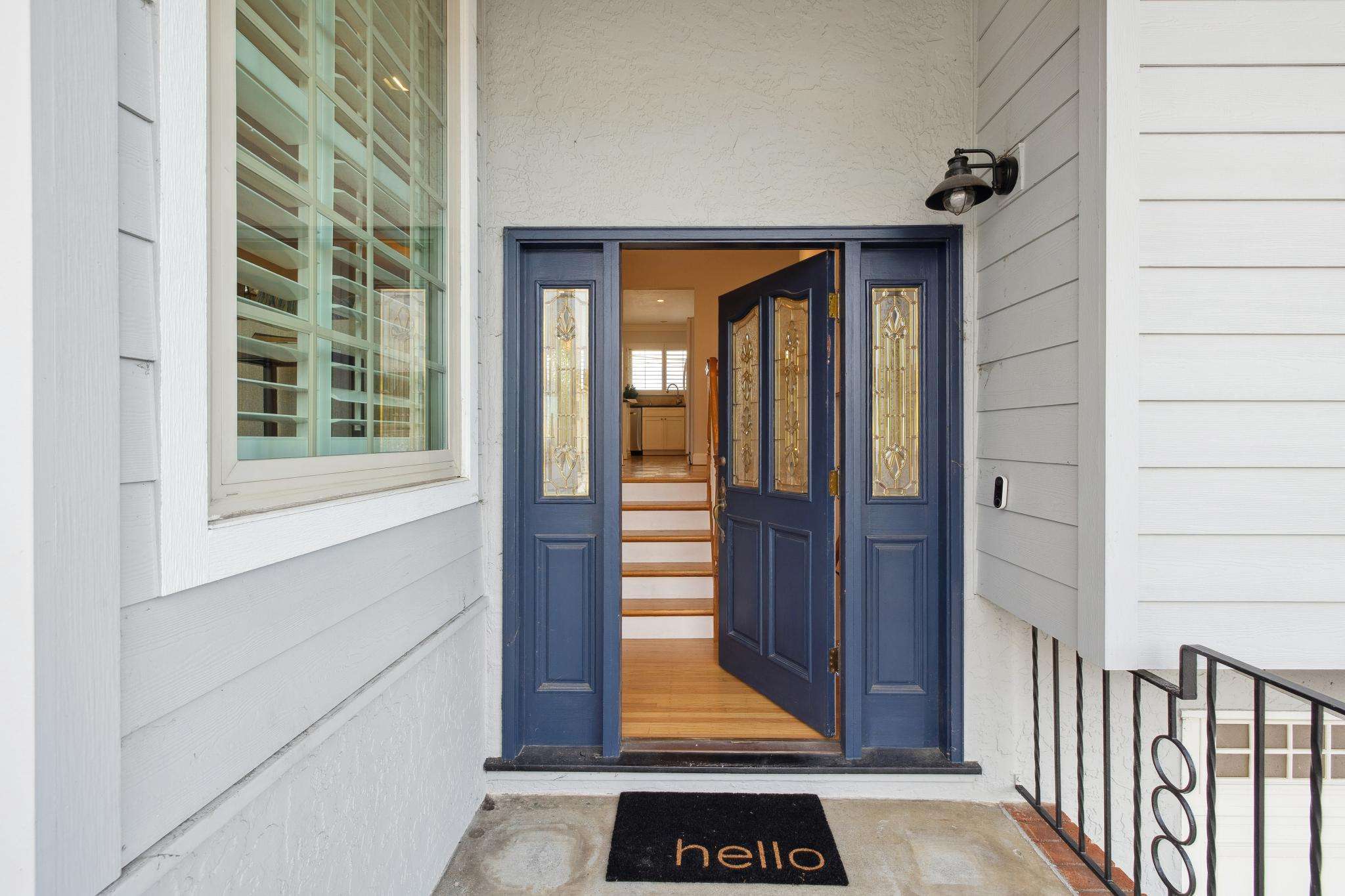 - Foyer reveals the split-level layout, with upper- and lower-level staircases