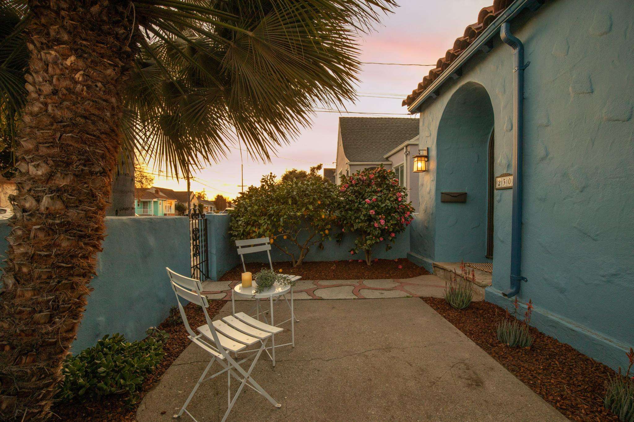 The updated kitchen offers stainless steel appliances and opens to a sunny breakfast room that connects to the back yard. The formal dining room features original built-in hutches that are both lovely and functional. The home features two bedrooms and two bathrooms, including a serene primary suite with an ensuite bath. The primary bedroom has french doors that open onto a deck overlooking the beautiful back yard where a grassy lawn and mature fruit trees are abundant - meyer lemon, blueberries, nectarine, Honeycrisp Apple and Naval Orange. The peaceful setting is ideal for relaxing and entertaining. Back inside, the front bedroom is sunny while the hall bath is spacious and conveniently located. A stackable washer dryer is neatly tucked away in the hall bathroom. The lower-level space is versatile; this could be a music room, maker’s space or simply fantastic storage! Completing the property is a detached two car garage … envision exercise equipment or a workshop space. With its charming architectural details, flexible living spaces, and lush backyard oasis, this San Leandro gem is a special place to call home. Nearby to transit like bus lines and San Leandro BART, as well as local parks, shops & restaurants.