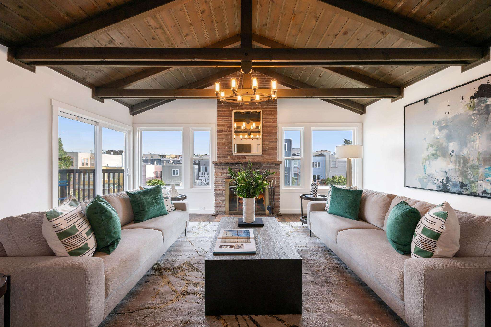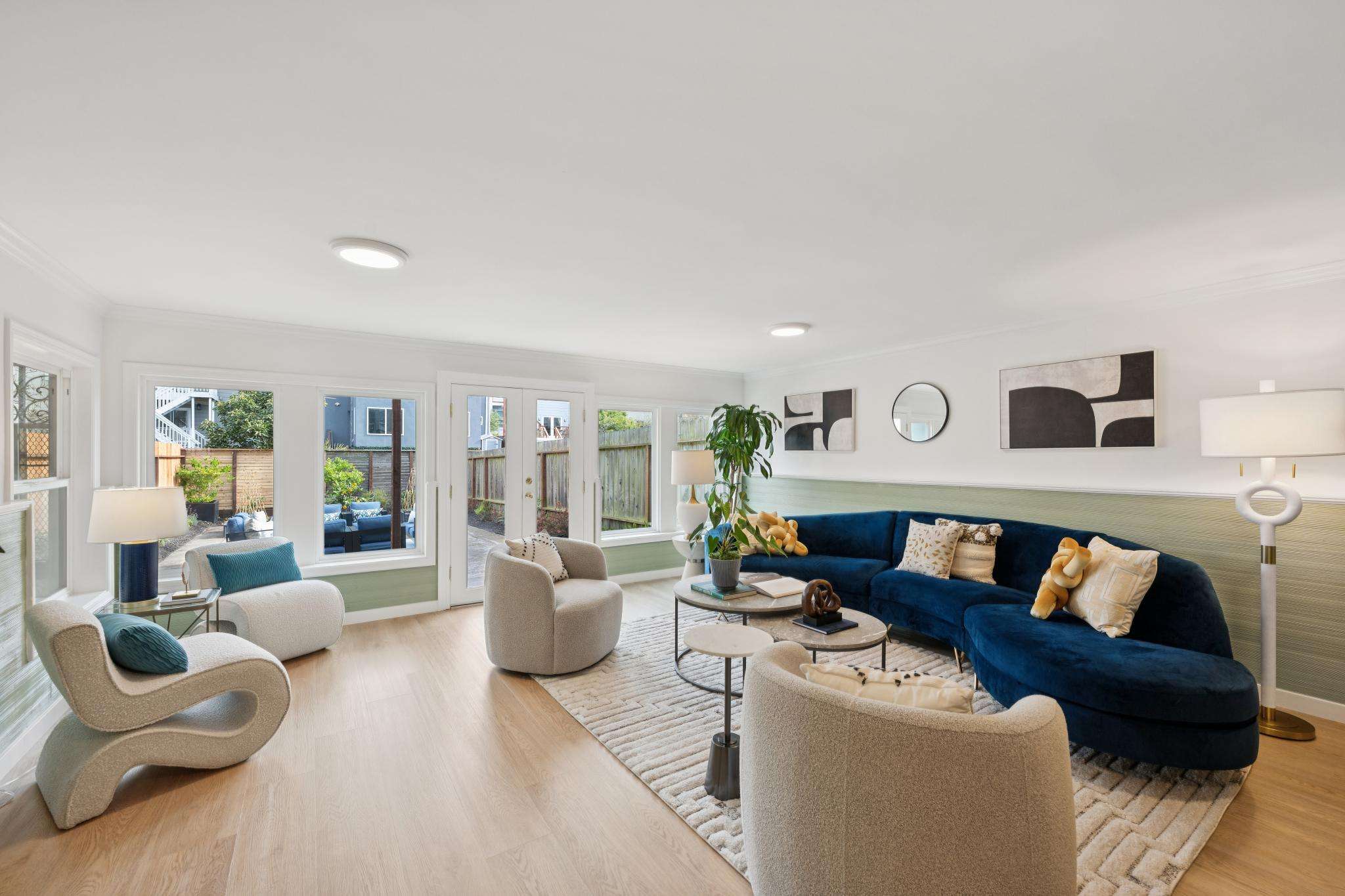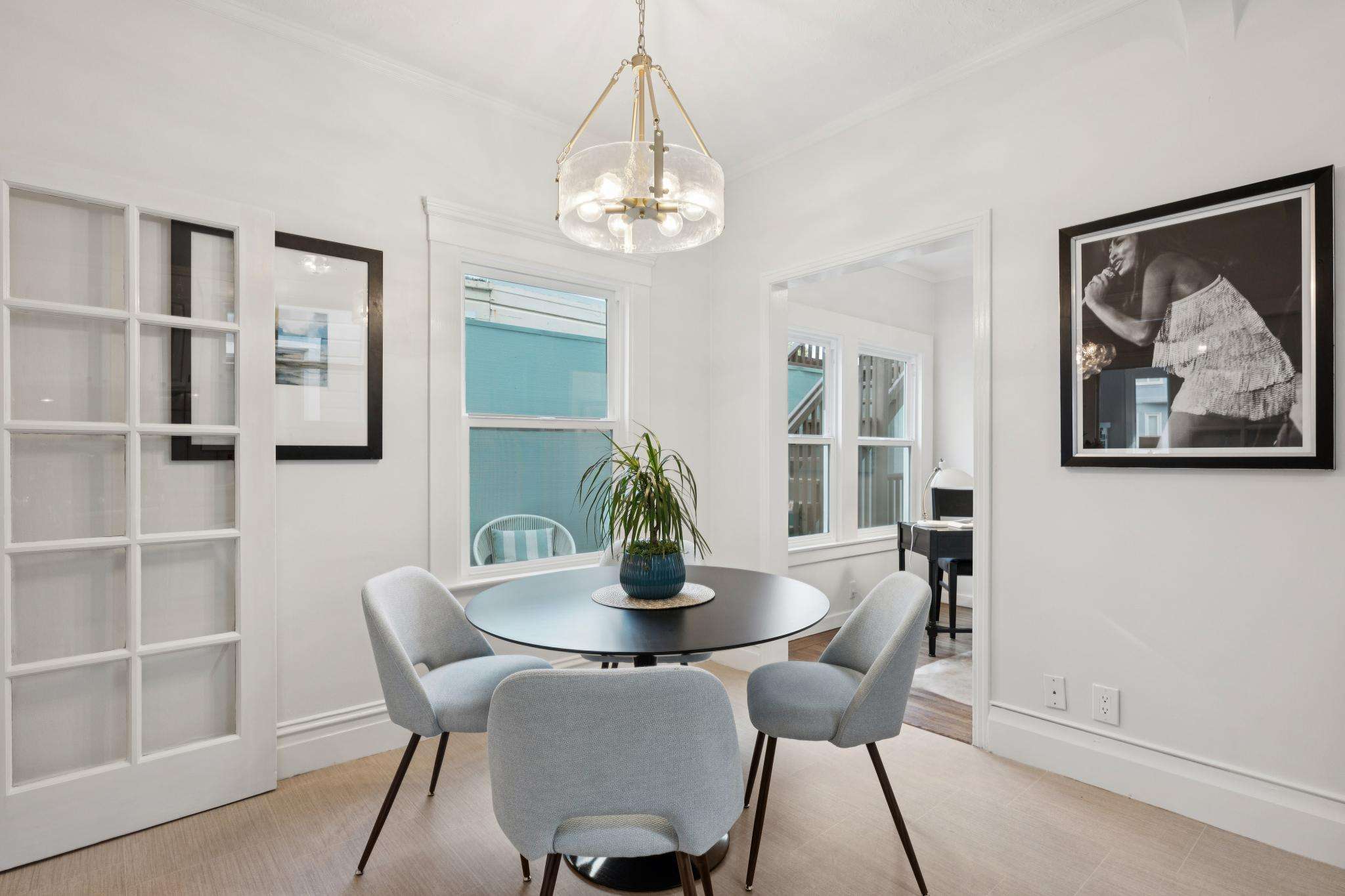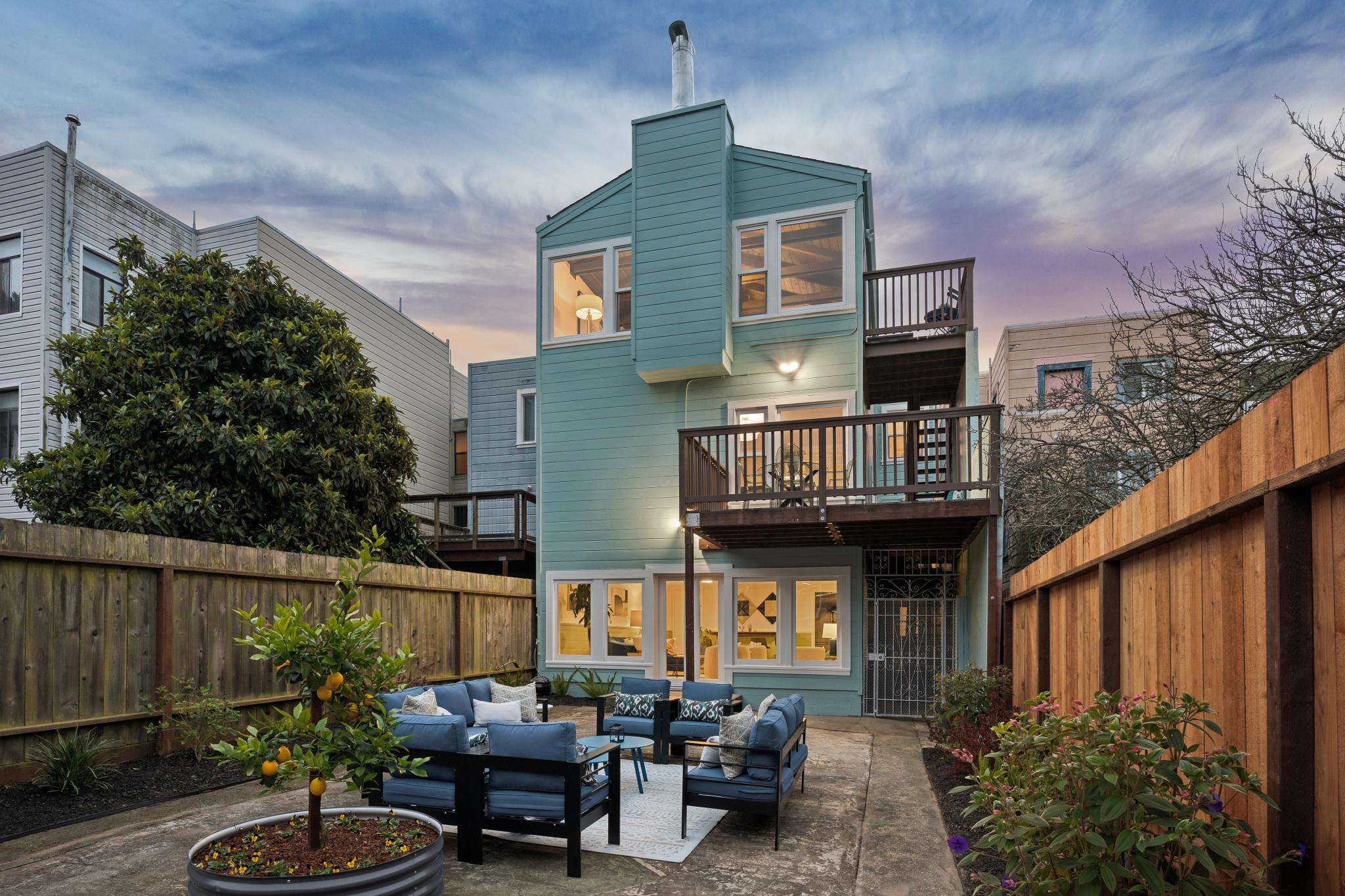 First time on the market in over 60 years. Built circa 1921, this distinguished Edwardian home offers approximately 3,298 square feet of living space and a rare architectural layout defined by intentionally scaled living environments on every level, seldom found in San Francisco homes. Rich in original period detail, the home features refinished original hardwood floors throughout and outdoor terraces on multiple levels, creating a seamless connection to light, air, and indoor–outdoor living.The main level includes formal living and dining rooms with deck access, a spacious kitchen with adjoining breakfast area, a private office, and a quietly positioned primary bedroom suite with an east-facing deck, sitting area, two closets, and a spa-inspired bathroom.The upper level offers three well-proportioned bedrooms, a full bathroom with double sinks and a soaking tub, and a magnificent family room that serves as a true architectural centerpiece. With cathedral ceilings, a fireplace, deck access, and an adjoining bonus kitchen, this space provides exceptional scale, privacy, and natural light while remaining connected to the rest of the home. This space is thoughtfully designed to support both everyday living and gathering in a way rarely found in San Francisco residences.On the lower level, a generous social hall with a built-in bar and direct access to the private, spacious backyard offers an ideal setting for gathering and everyday enjoyment. This thoughtfully layered floor plan creates a sense of privacy and flexibility, allowing the home to adapt gracefully to evolving needs. The garage provides tandem parking for two cars, along with storage, laundry, and a powder room. Defined by timeless Edwardian architecture, generous proportions, and thoughtful design, this home supports a refined lifestyle centered on comfort, flexibility, and long-term livability.