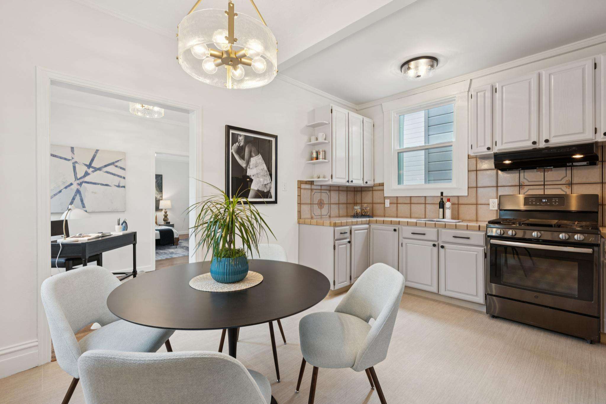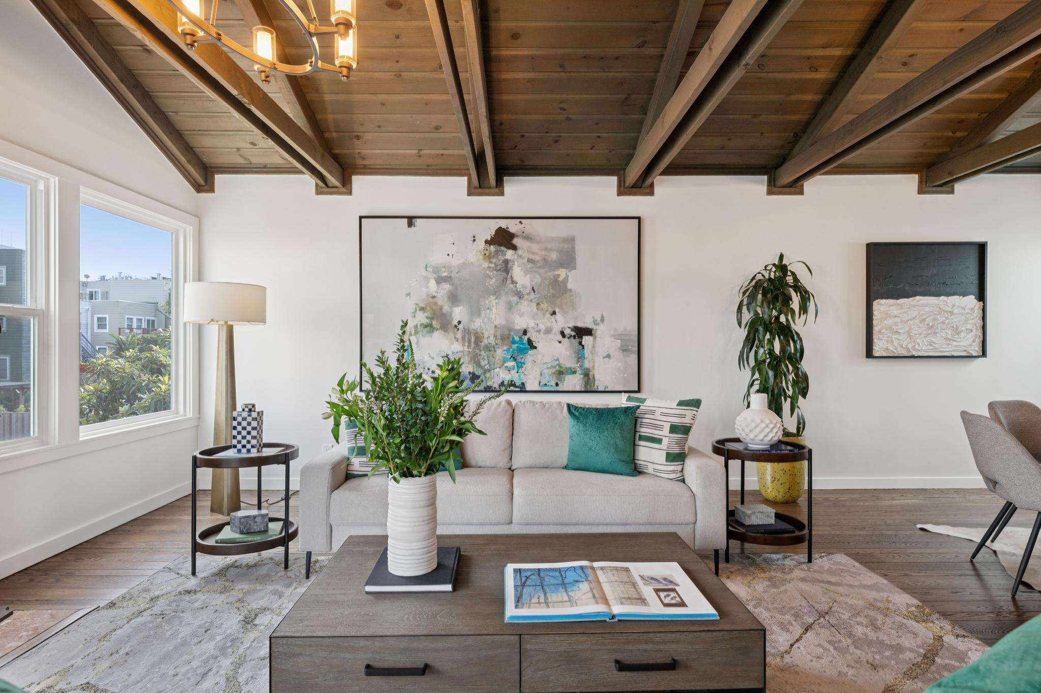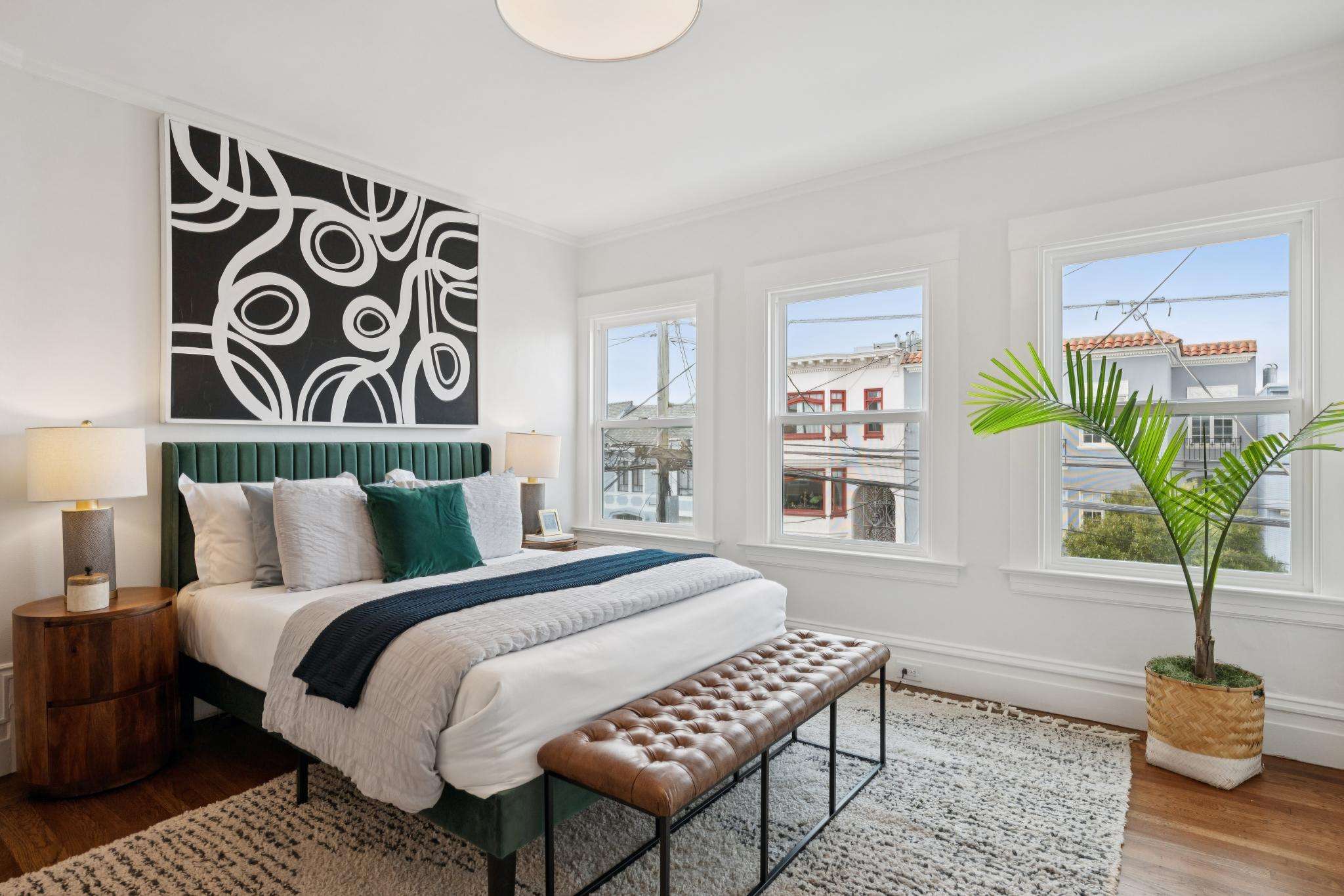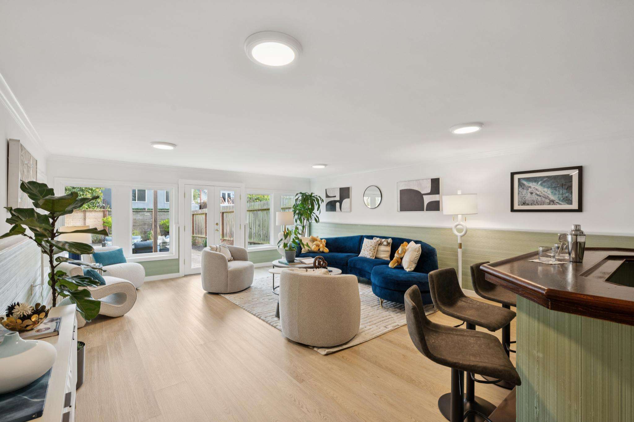 First time on the market in over 60 years. Built circa 1921, this distinguished Edwardian home offers approximately 3,298 square feet of living space and a rare architectural layout defined by intentionally scaled living environments on every level, seldom found in San Francisco homes. Rich in original period detail, the home features refinished original hardwood floors throughout and outdoor terraces on multiple levels, creating a seamless connection to light, air, and indoor–outdoor living.The main level includes formal living and dining rooms with deck access, a spacious kitchen with adjoining breakfast area, a private office, and a quietly positioned primary bedroom suite with an east-facing deck, sitting area, two closets, and a spa-inspired bathroom.The upper level offers three well-proportioned bedrooms, a full bathroom with double sinks and a soaking tub, and a magnificent family room that serves as a true architectural centerpiece. With cathedral ceilings, a fireplace, deck access, and an adjoining bonus kitchen, this space provides exceptional scale, privacy, and natural light while remaining connected to the rest of the home. This space is thoughtfully designed to support both everyday living and gathering in a way rarely found in San Francisco residences.On the lower level, a generous social hall with a built-in bar and direct access to the private, spacious backyard offers an ideal setting for gathering and everyday enjoyment. This thoughtfully layered floor plan creates a sense of privacy and flexibility, allowing the home to adapt gracefully to evolving needs. The garage provides tandem parking for two cars, along with storage, laundry, and a powder room. Defined by timeless Edwardian architecture, generous proportions, and thoughtful design, this home supports a refined lifestyle centered on comfort, flexibility, and long-term livability.