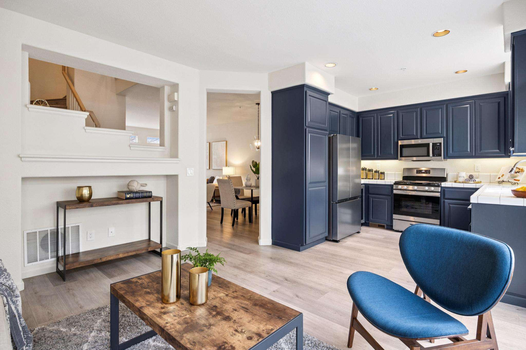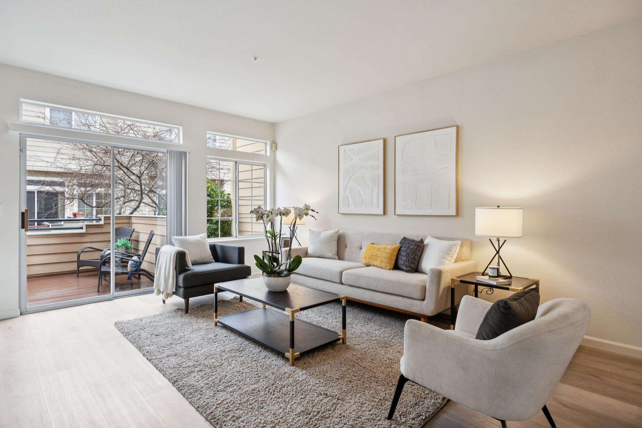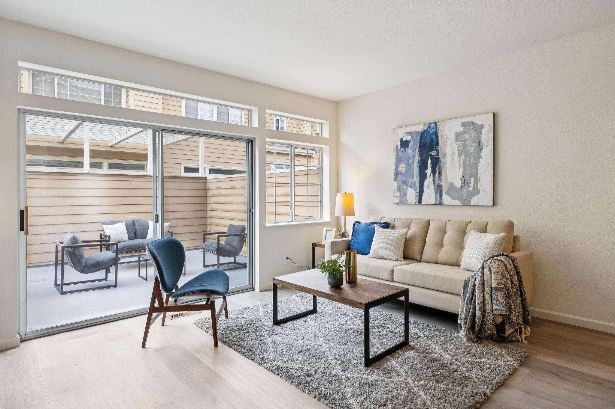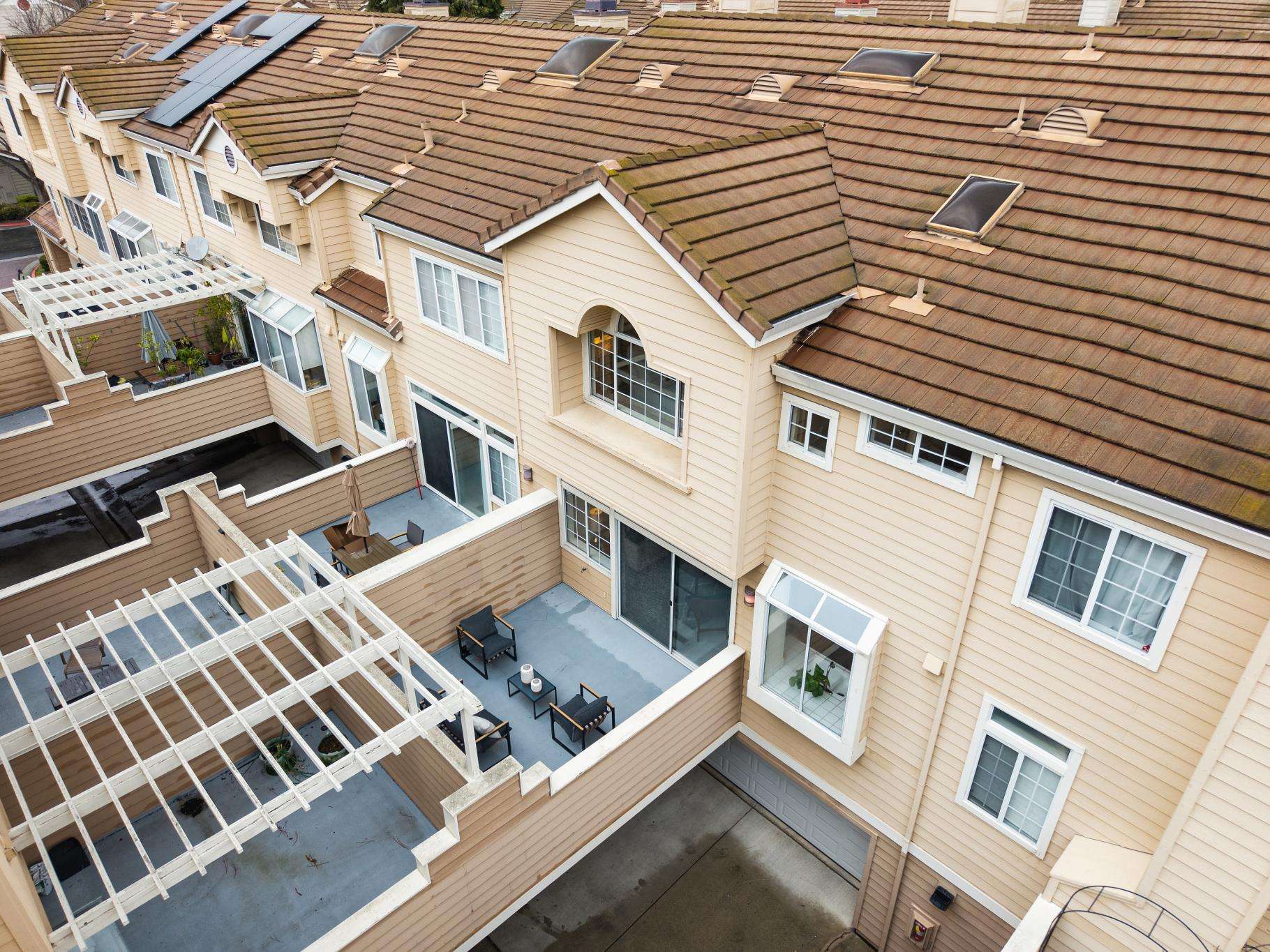 At the intersection of tech and more tech, life in this quiet neighborhood is surprisingly uncomplicated, streamlined by accessible transportation and amenities, enhanced by nearby parks and trails. This three-level townhome truly lives like a single-family home, with a classic floor plan that segments public and private spaces. High ceilings, skylights and large windows make the space light and airy. The main level is the heart and hub of daily life, connecting living and dining spaces, a spacious kitchen with family room area, a discreet powder room, and private and spacious front and back patios that add an unusual amount of exterior living space. A gracious, open staircase leads to the upper level and all three bedrooms. Room sizes, closets and storage space are generous, and a huge lower level room, unique to homes at the Traditions Community, adds multi-functional space. Luxury vinyl flooring throughout, newer appliances, inside laundry and attached two car garage. Community pool and spa, children’s play area, ample guest parking. Close to major tech campuses, commute routes, VTA/shuttles. Walking distance to grocery shopping and restaurants. Fabulous Seven Seas Park is down the street, or pop over to Baylands Park and jump on the SF Bay Trail.