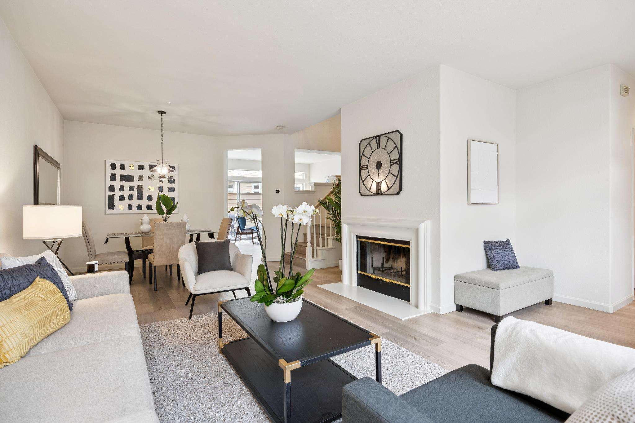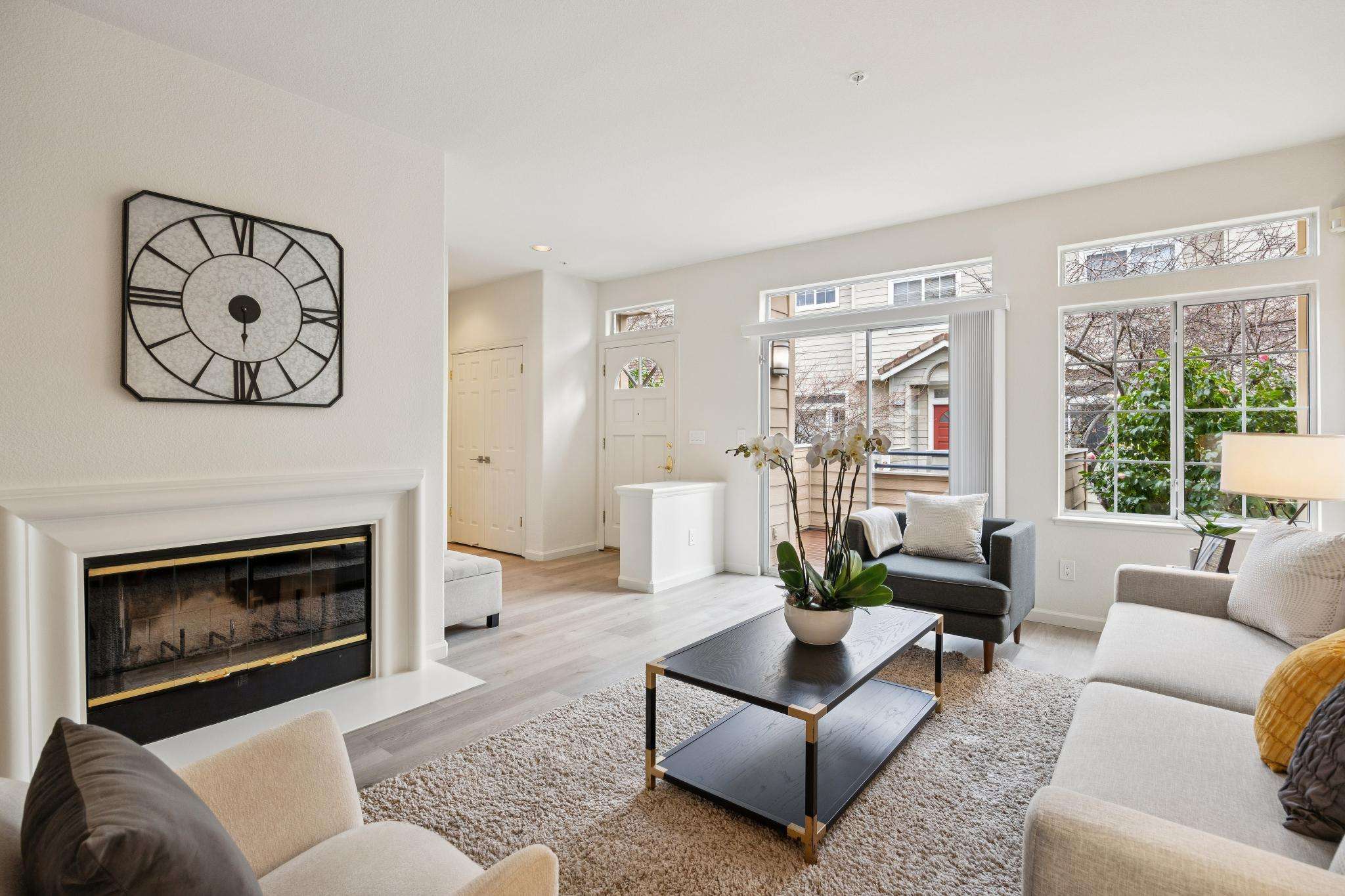 - Living / dining rooms with fireplace and sliding door to front patio