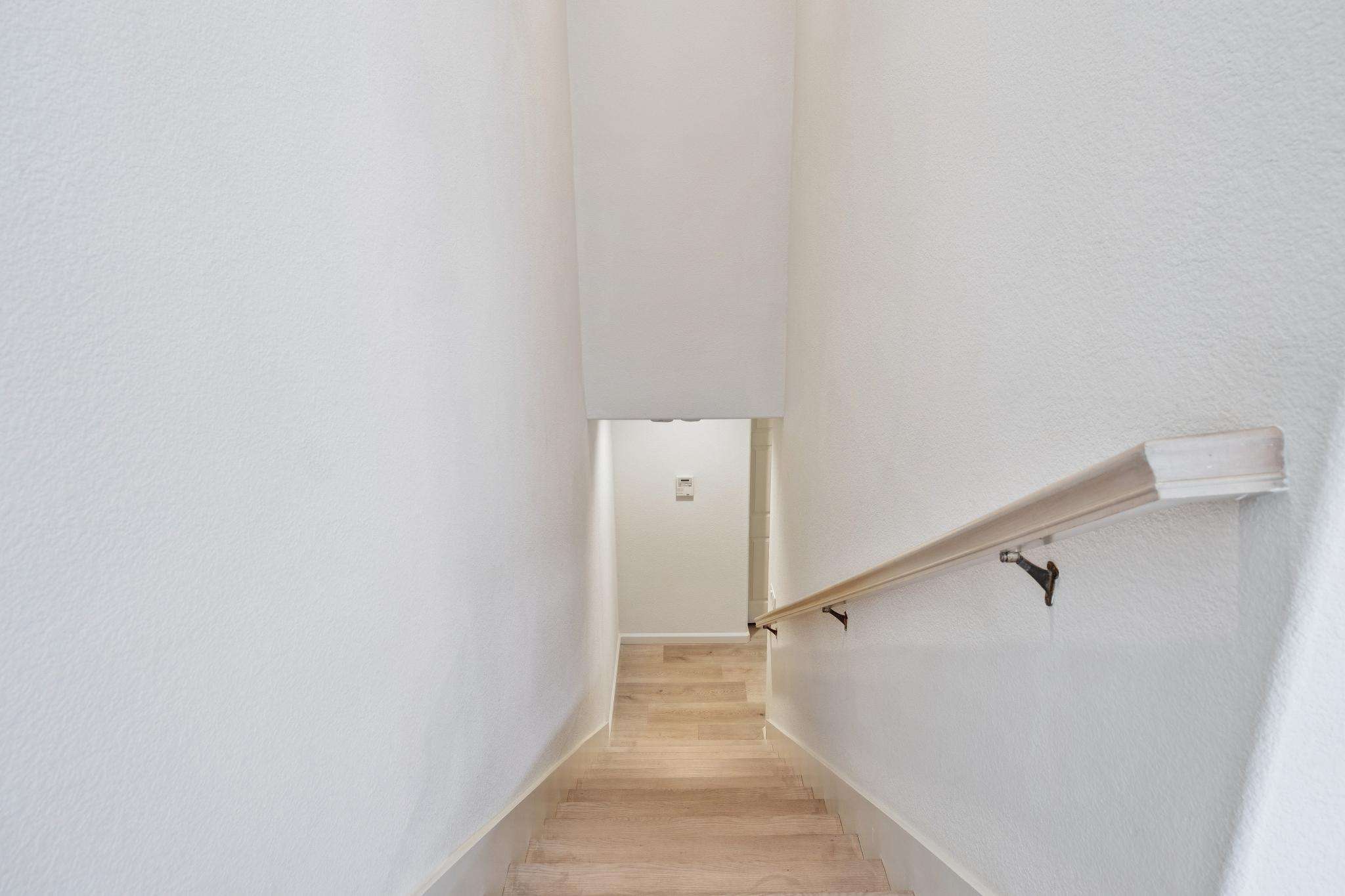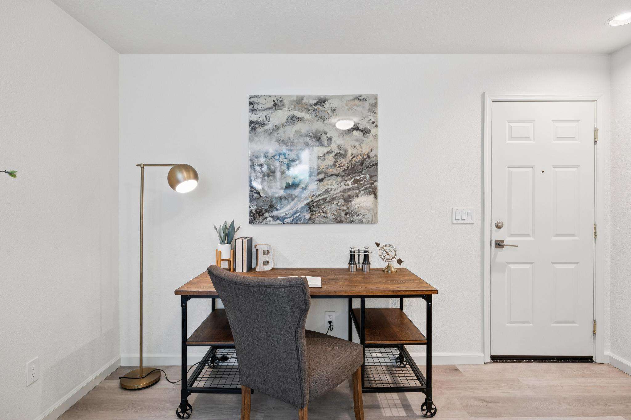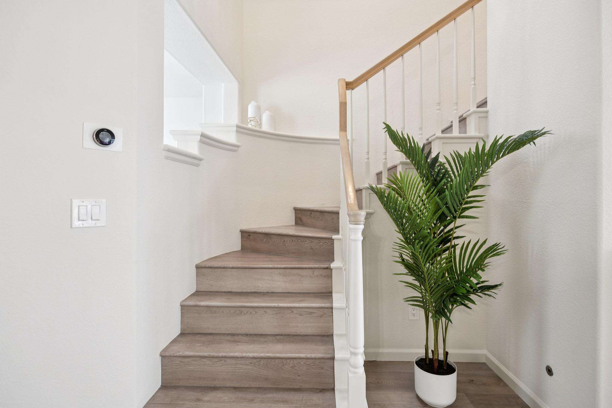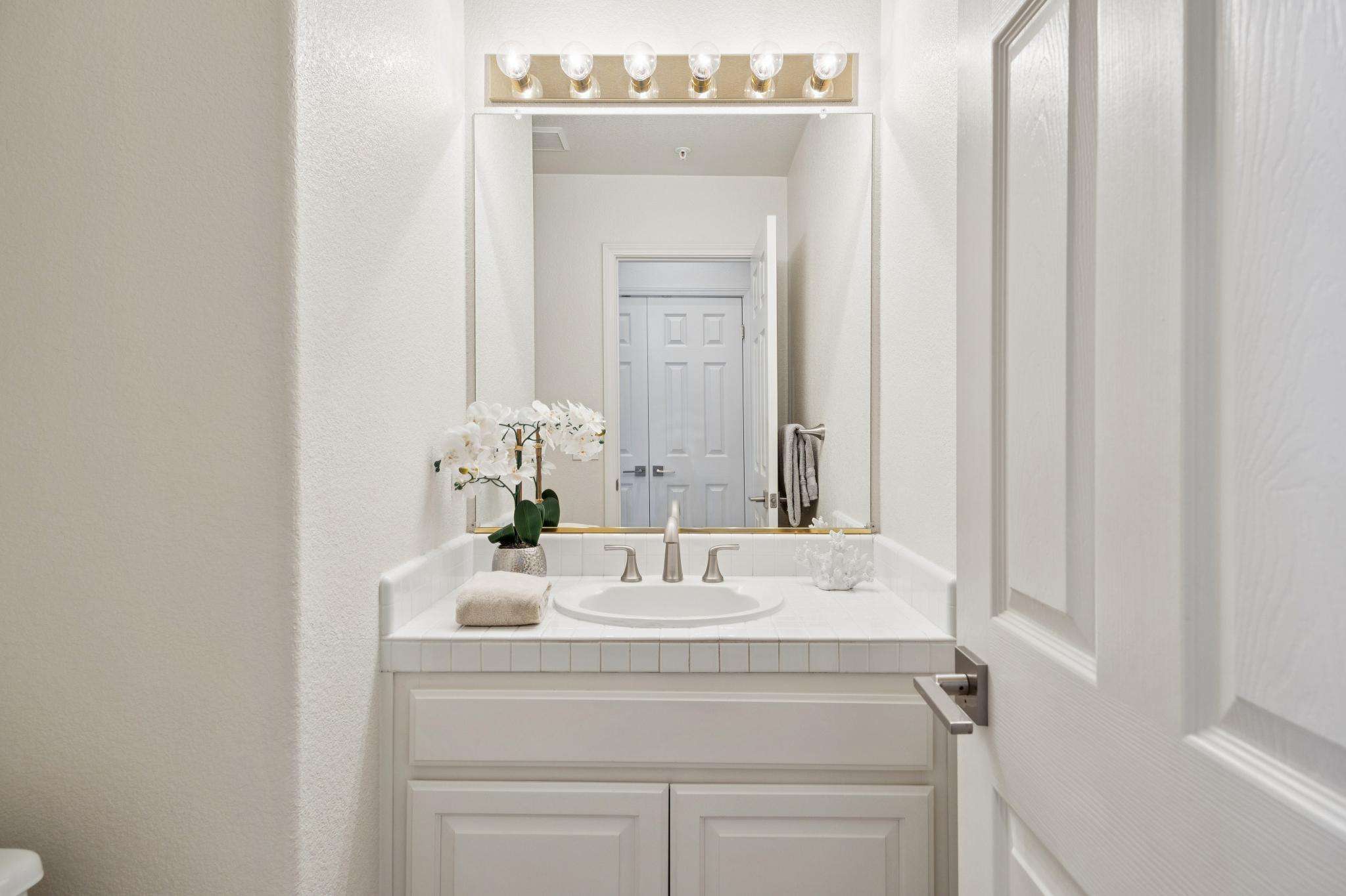 - Entry with discreet powder room and large coat closet