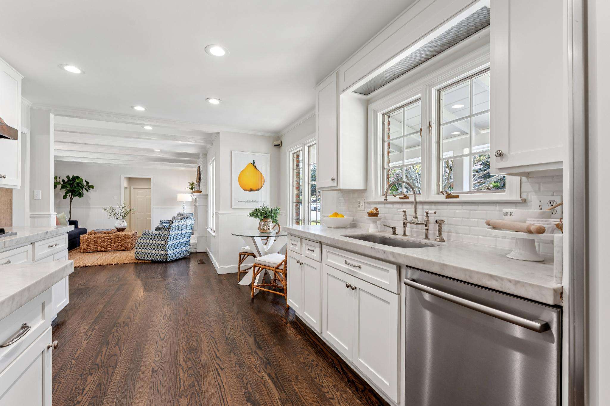Additional highlights include a light-filled living room and dining room with beautiful bay windows, spacious primary suite, hardwood floors, and updated baths, adding both character and modern comfort throughout the home.