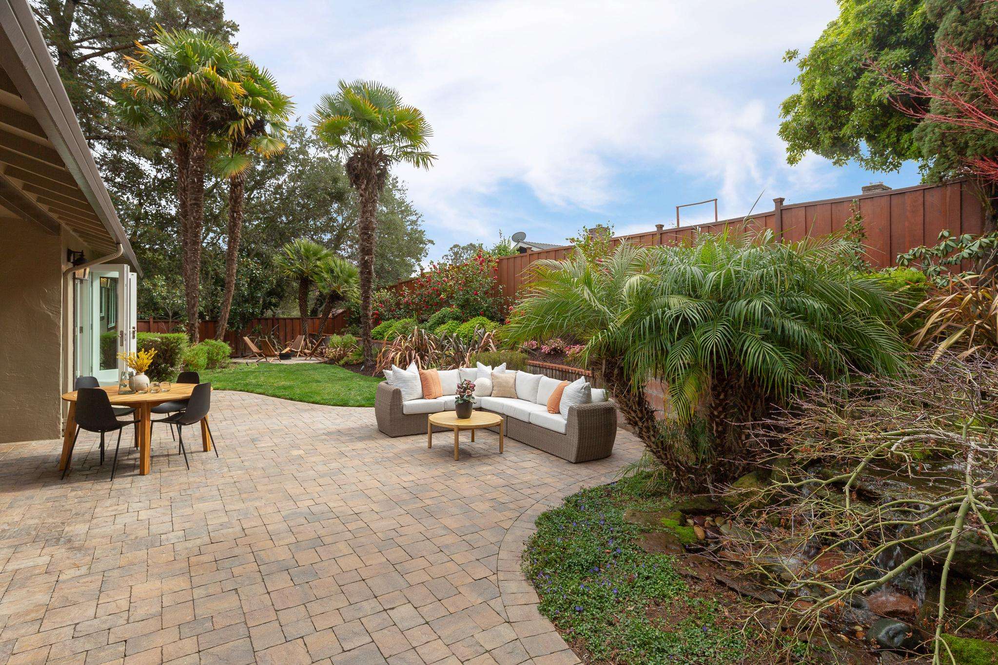 Effortless single-level living at its absolute finest — 261 Silverado Court is a masterfully reimagined mid-century ranch tucked on a whisper-quiet cul-de-sac in one of Oakland's most sought-after pockets. No stairs, no compromises. Three generously scaled bedrooms and two exquisitely redesigned bathrooms set an elevated tone throughout. Expansive living and family rooms offer remarkable scale for both entertaining and everyday comfort. The newly constructed chef's kitchen is a true showpiece — Calacatta Gold marble and rich soapstone countertops, bespoke cabinetry, and a full Thermador suite including dual ovens, induction cooktop, and a double beverage center for wine and entertaining. Every major system has been done right: all-new windows and doors, a fully modernized electrical system, and heavy-duty insulation in the ceilings, walls, and floors for exceptional energy efficiency and hushed, year-round comfort. Zero-dollar pest report on file. Outside, meticulous landscaping and a tranquil waterfall feature create a private garden sanctuary — your own quiet retreat from the world.