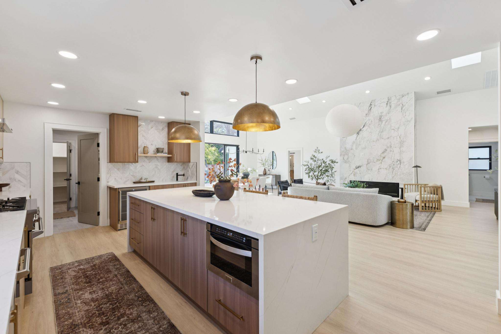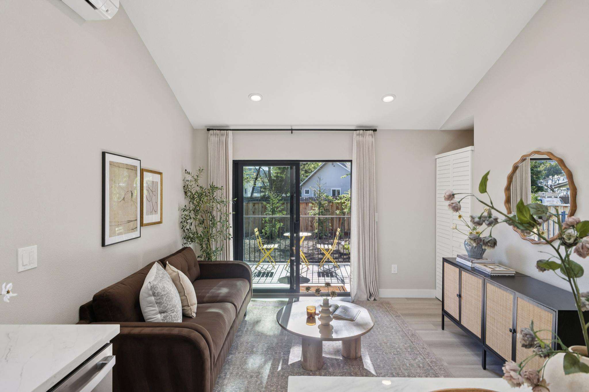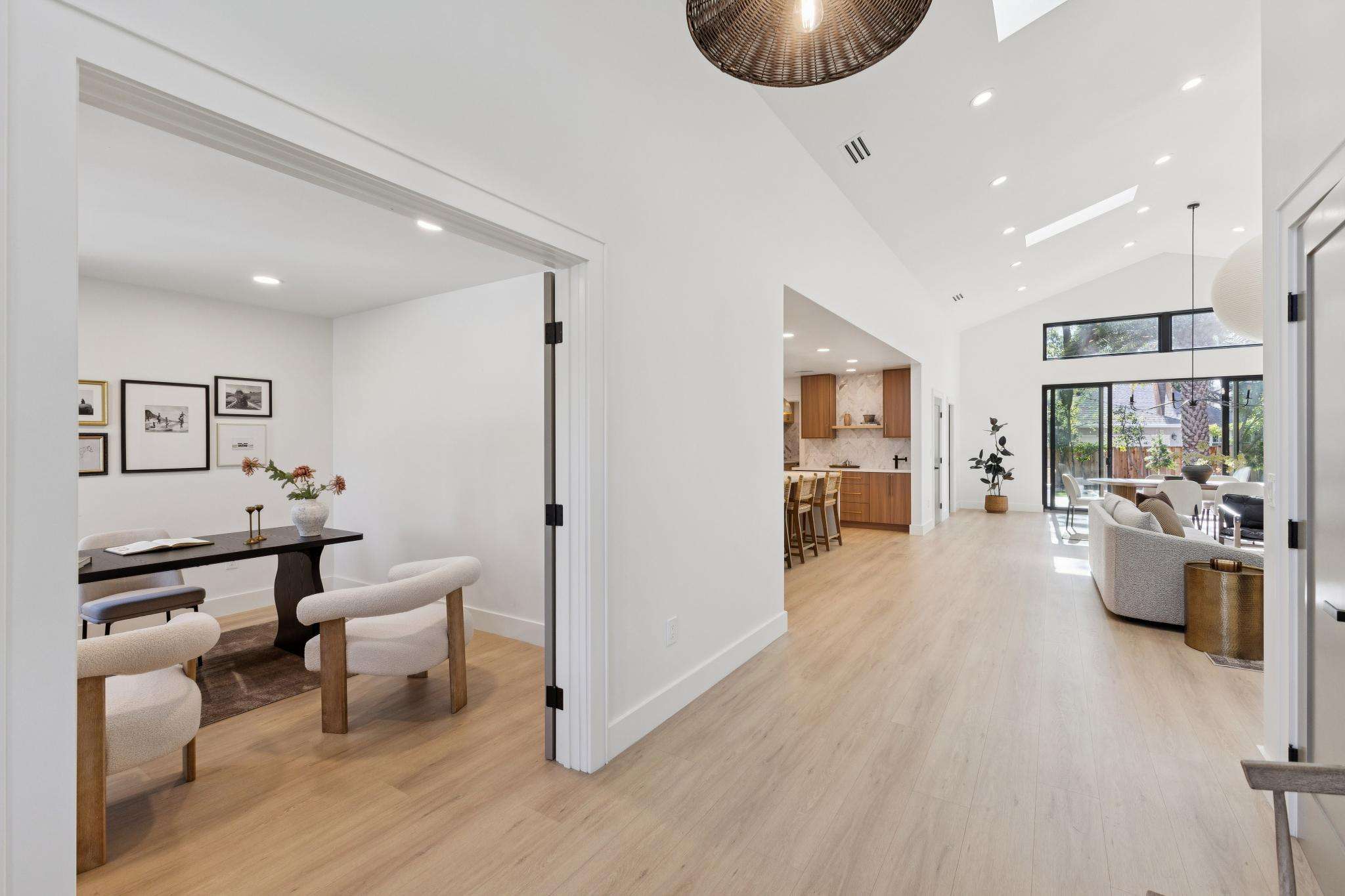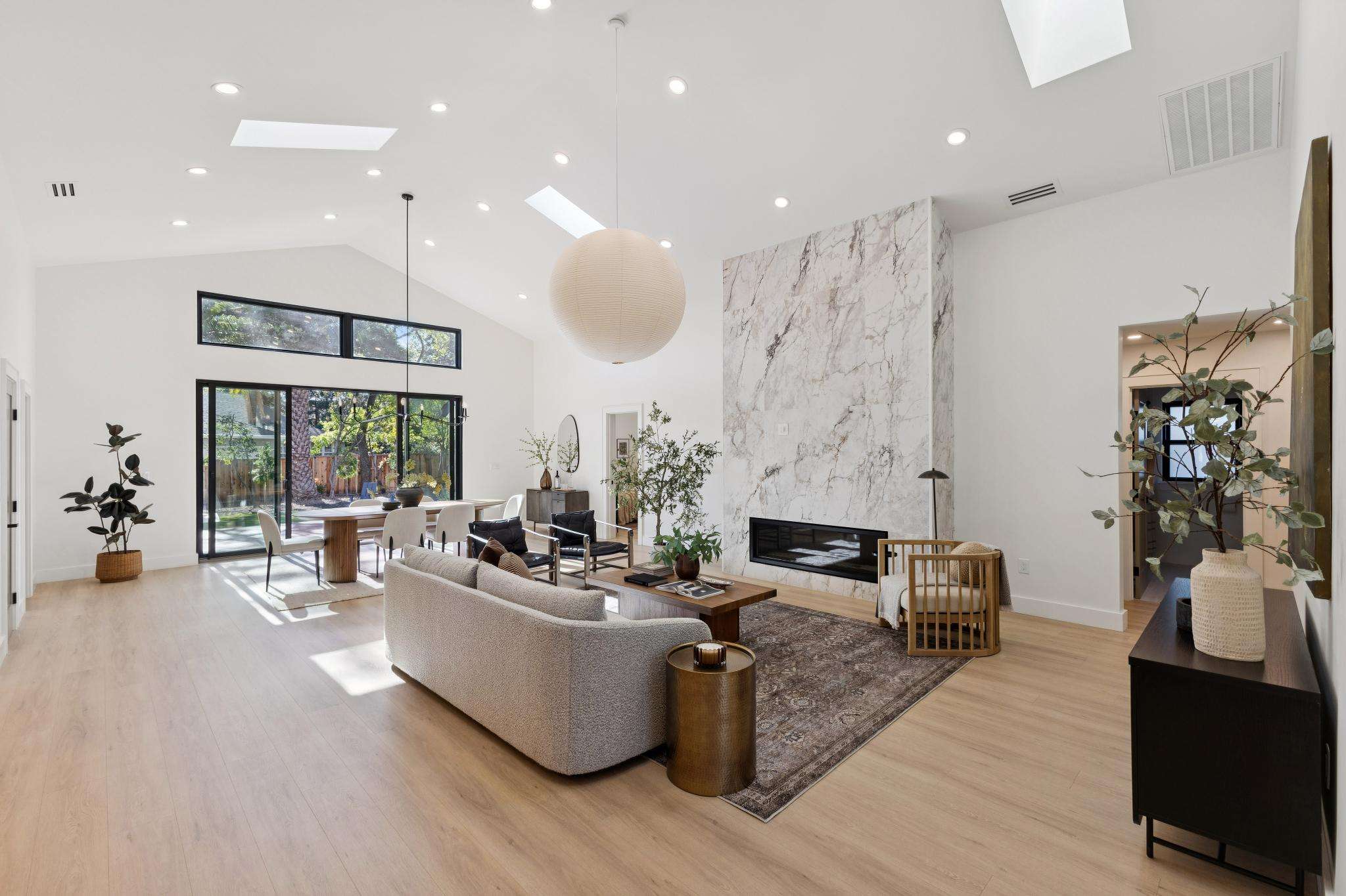 Rebuilt in 2025 on a Flat 0.4-Acre Lot with Single-Story Living and ADU. The 4-bedroom + office, 2.5-bathroom main home is complemented by a 1-bedroom, 1-bathroom private attached ADU with a kitchen and laundry. Ideal for guests, extended family, office space, or rental income. Soaring vaulted ceilings, skylights, and natural light highlight the home’s modern design. Open living spaces center around a dramatic floor-to-ceiling fireplace and expansive Andersen sliding glass doors for seamless indoor-outdoor living. Wide-plank engineered wood floors run throughout, and the chef’s kitchen features sleek quartz countertops and a refined minimalist aesthetic. The primary suite includes a freestanding soaking tub and dual vanity. Additional highlights include an attached two-car garage and a puppy shower. The tree-canopied outdoor area is perfect for dining, entertaining, and relaxation, with potential for another ADU or a possible lot split. Minutes to BART, downtown Walnut Creek, Lafayette, and Pleasant Hill, with easy freeway access. Close to award-winning schools and nationally recognized De La Salle and Carondelet, plus nearby trails, restaurants, shopping, and parks. A rare offering set on one of the most desirable expansive grounds.