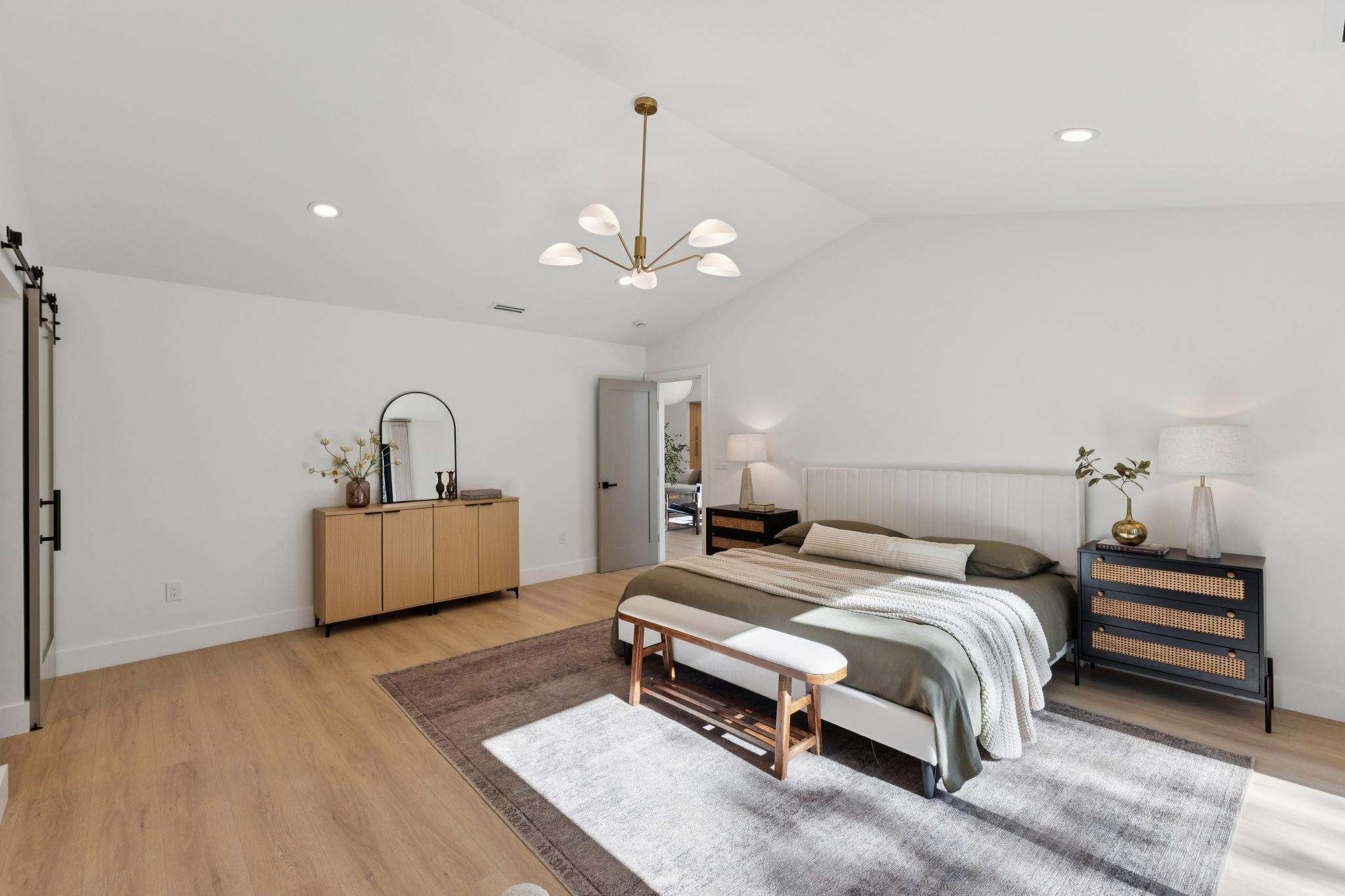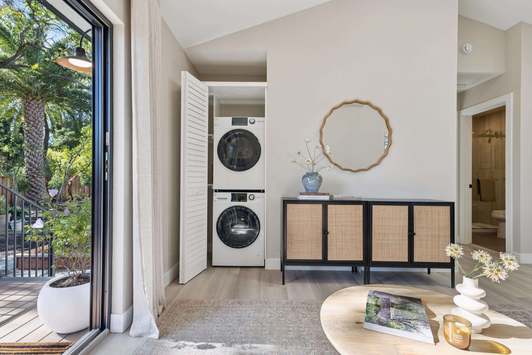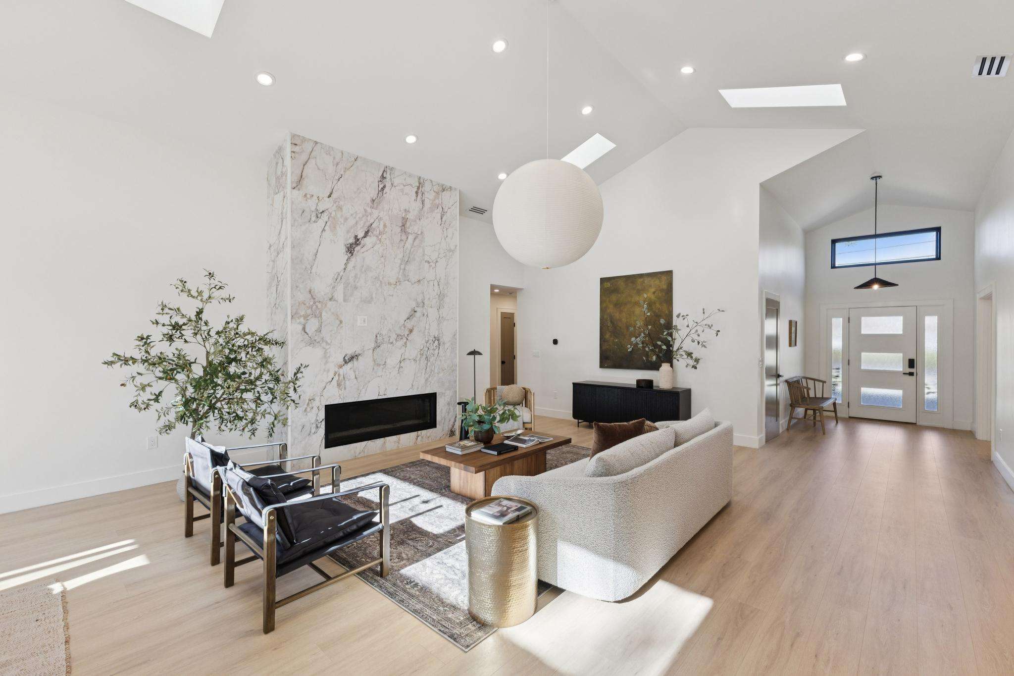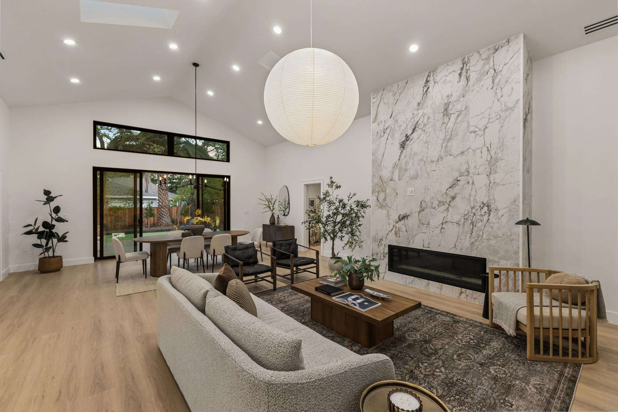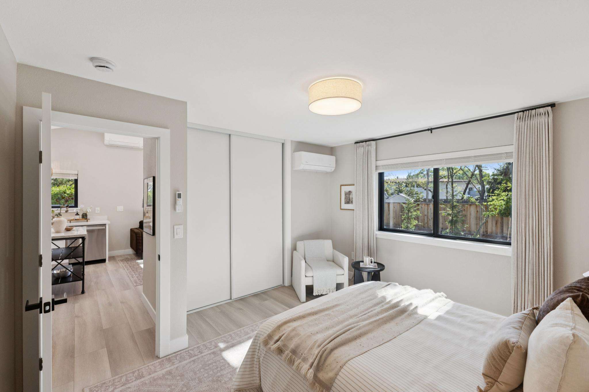 Rebuilt in 2025 on a Flat 0.4-Acre Lot with Single-Story Living and ADU. The 4-bedroom + office, 2.5-bathroom main home is complemented by a 1-bedroom, 1-bathroom private attached ADU with a kitchen and laundry. Ideal for guests, extended family, office space, or rental income. Soaring vaulted ceilings, skylights, and natural light highlight the home’s modern design. Open living spaces center around a dramatic floor-to-ceiling fireplace and expansive Andersen sliding glass doors for seamless indoor-outdoor living. Wide-plank engineered wood floors run throughout, and the chef’s kitchen features sleek quartz countertops and a refined minimalist aesthetic. The primary suite includes a freestanding soaking tub and dual vanity. Additional highlights include an attached two-car garage and a puppy shower. The tree-canopied outdoor area is perfect for dining, entertaining, and relaxation, with potential for another ADU or a possible lot split. Minutes to BART, downtown Walnut Creek, Lafayette, and Pleasant Hill, with easy freeway access. Close to award-winning schools and nationally recognized De La Salle and Carondelet, plus nearby trails, restaurants, shopping, and parks. A rare offering set on one of the most desirable expansive grounds.