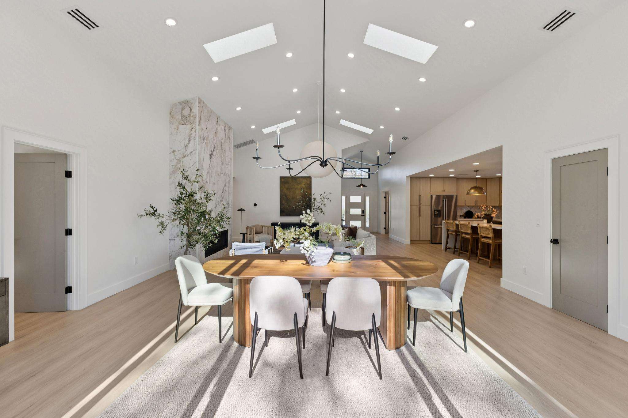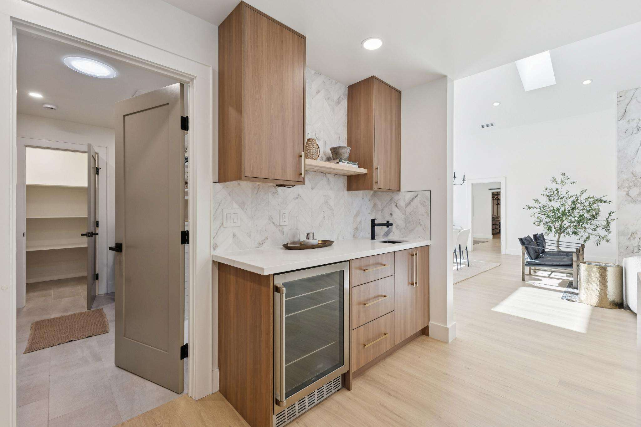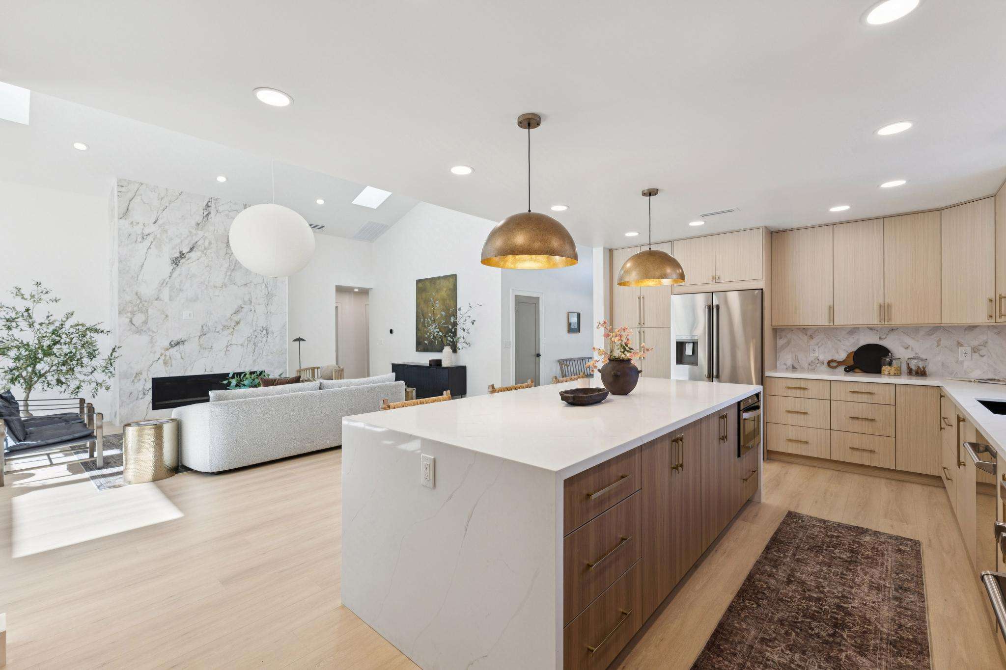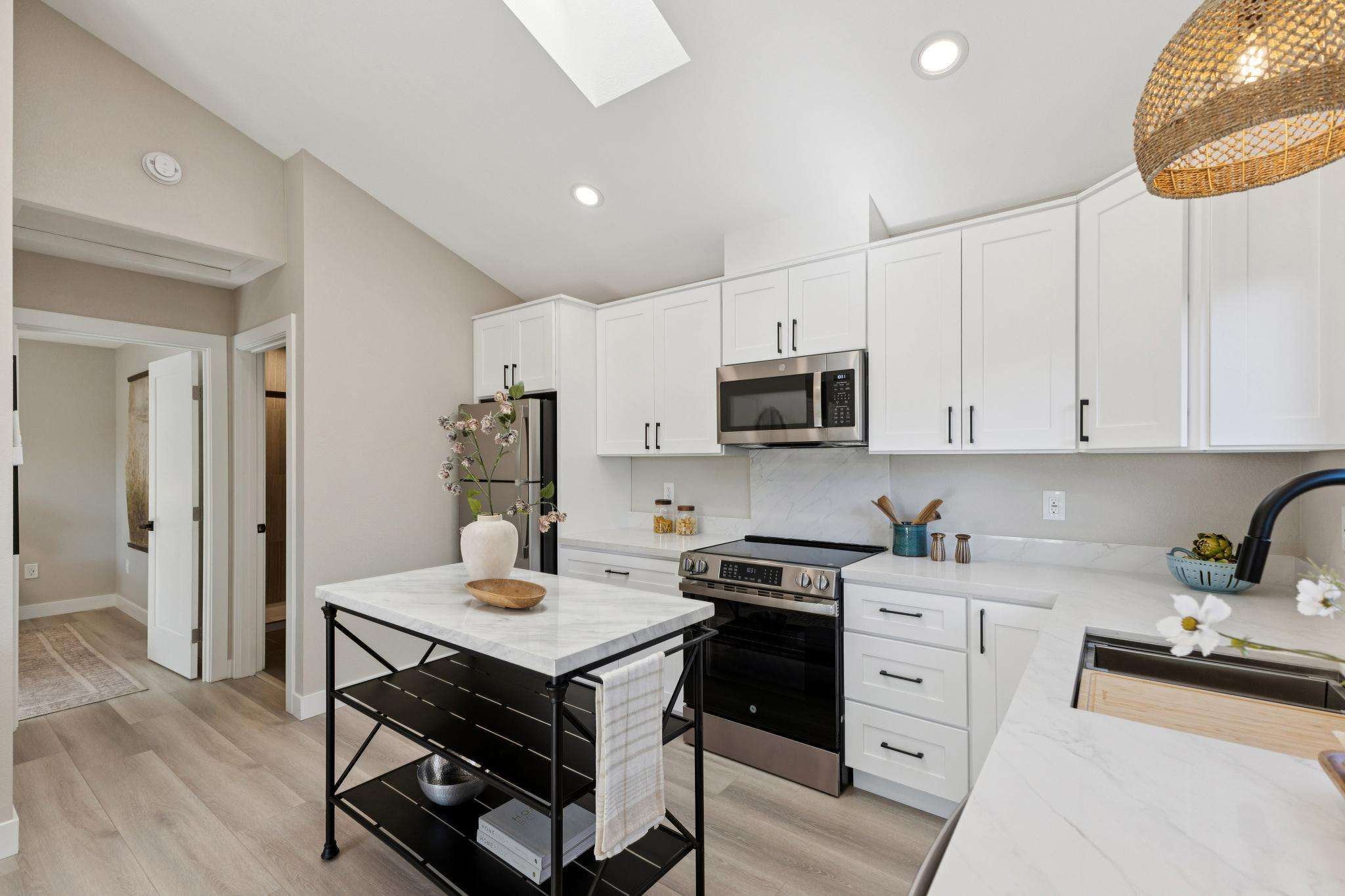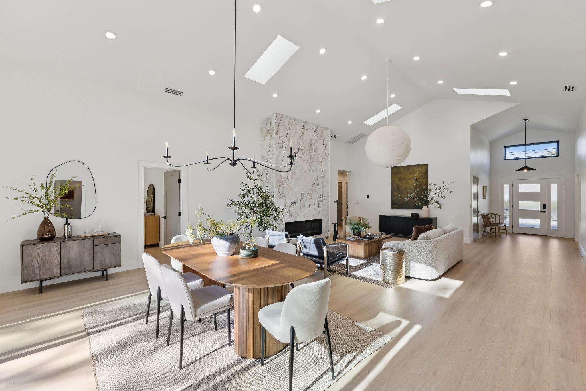 Rebuilt in 2025 on a Flat 0.4-Acre Lot with Single-Story Living and ADU. The 4-bedroom + office, 2.5-bathroom main home is complemented by a 1-bedroom, 1-bathroom private attached ADU with a kitchen and laundry. Ideal for guests, extended family, office space, or rental income. Soaring vaulted ceilings, skylights, and natural light highlight the home’s modern design. Open living spaces center around a dramatic floor-to-ceiling fireplace and expansive Andersen sliding glass doors for seamless indoor-outdoor living. Wide-plank engineered wood floors run throughout, and the chef’s kitchen features sleek quartz countertops and a refined minimalist aesthetic. The primary suite includes a freestanding soaking tub and dual vanity. Additional highlights include an attached two-car garage and a puppy shower. The tree-canopied outdoor area is perfect for dining, entertaining, and relaxation, with potential for another ADU or a possible lot split. Minutes to BART, downtown Walnut Creek, Lafayette, and Pleasant Hill, with easy freeway access. Close to award-winning schools and nationally recognized De La Salle and Carondelet, plus nearby trails, restaurants, shopping, and parks. A rare offering set on one of the most desirable expansive grounds.