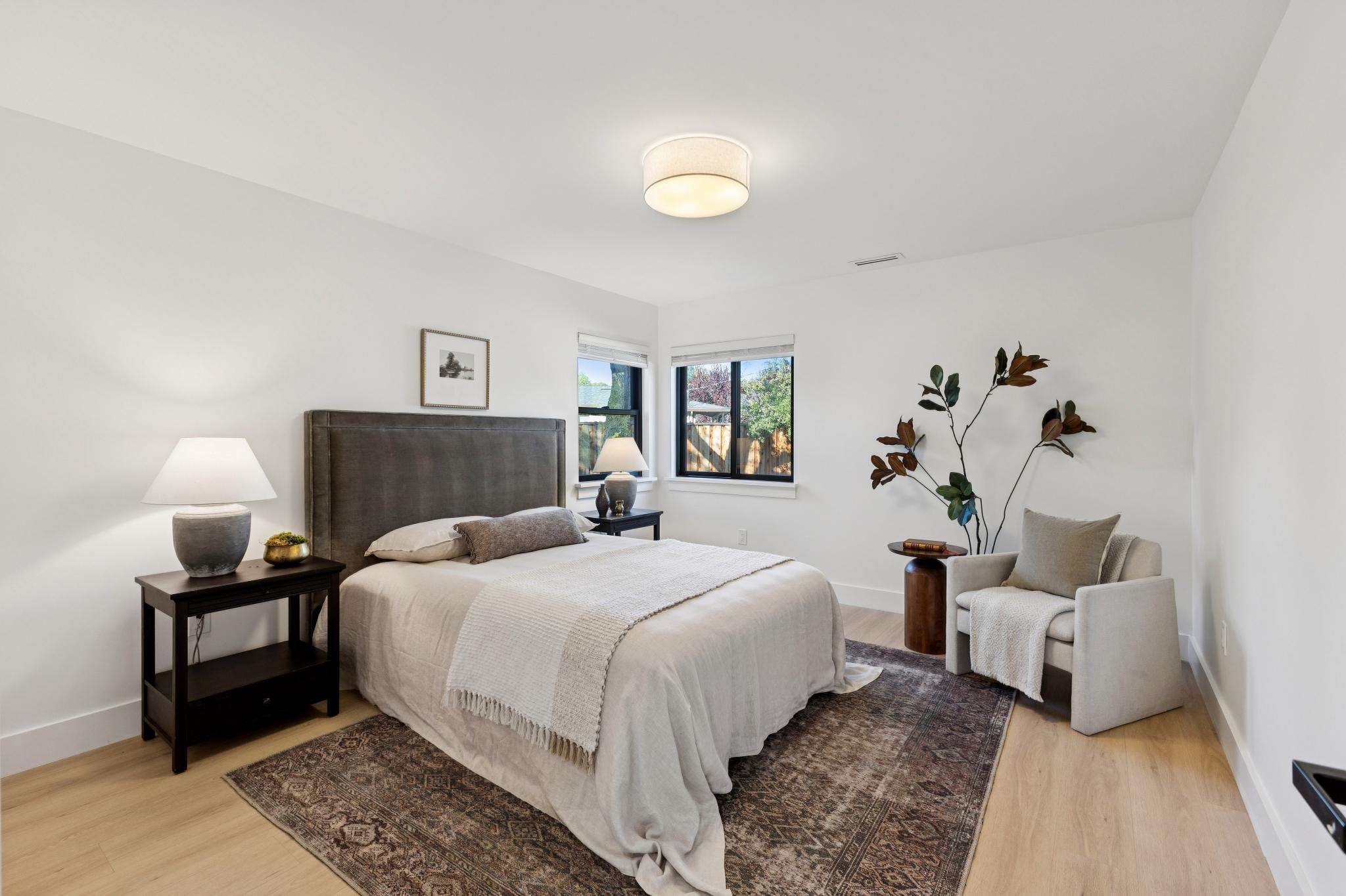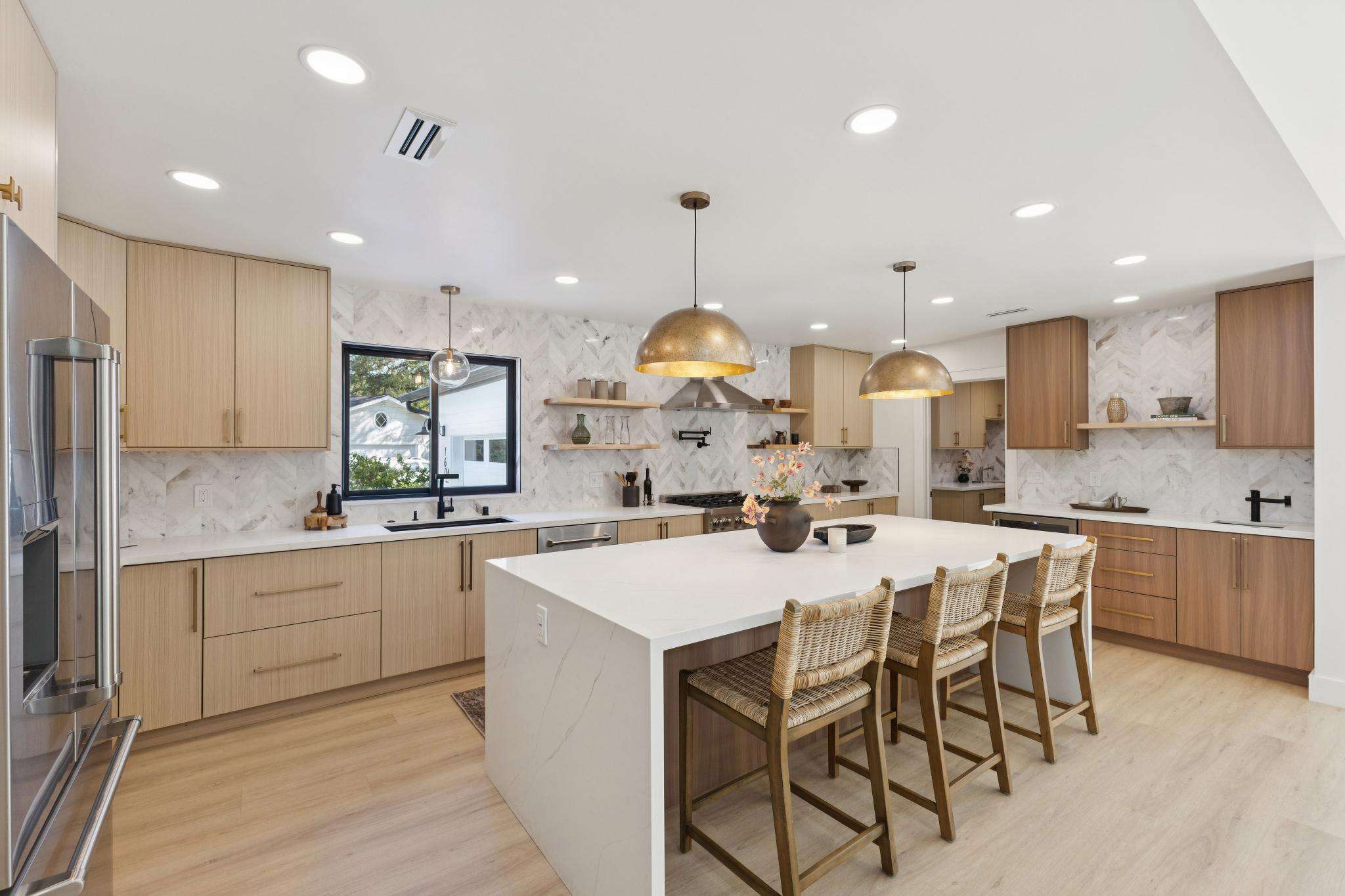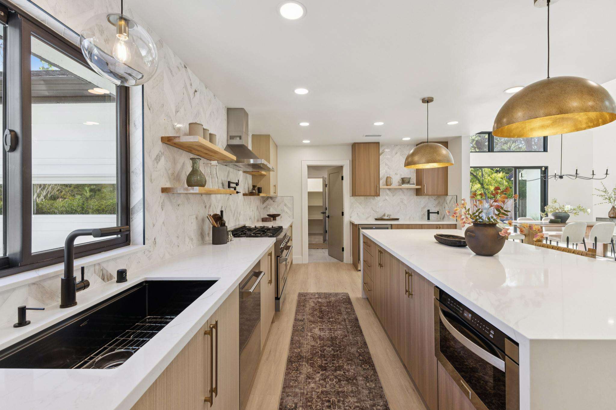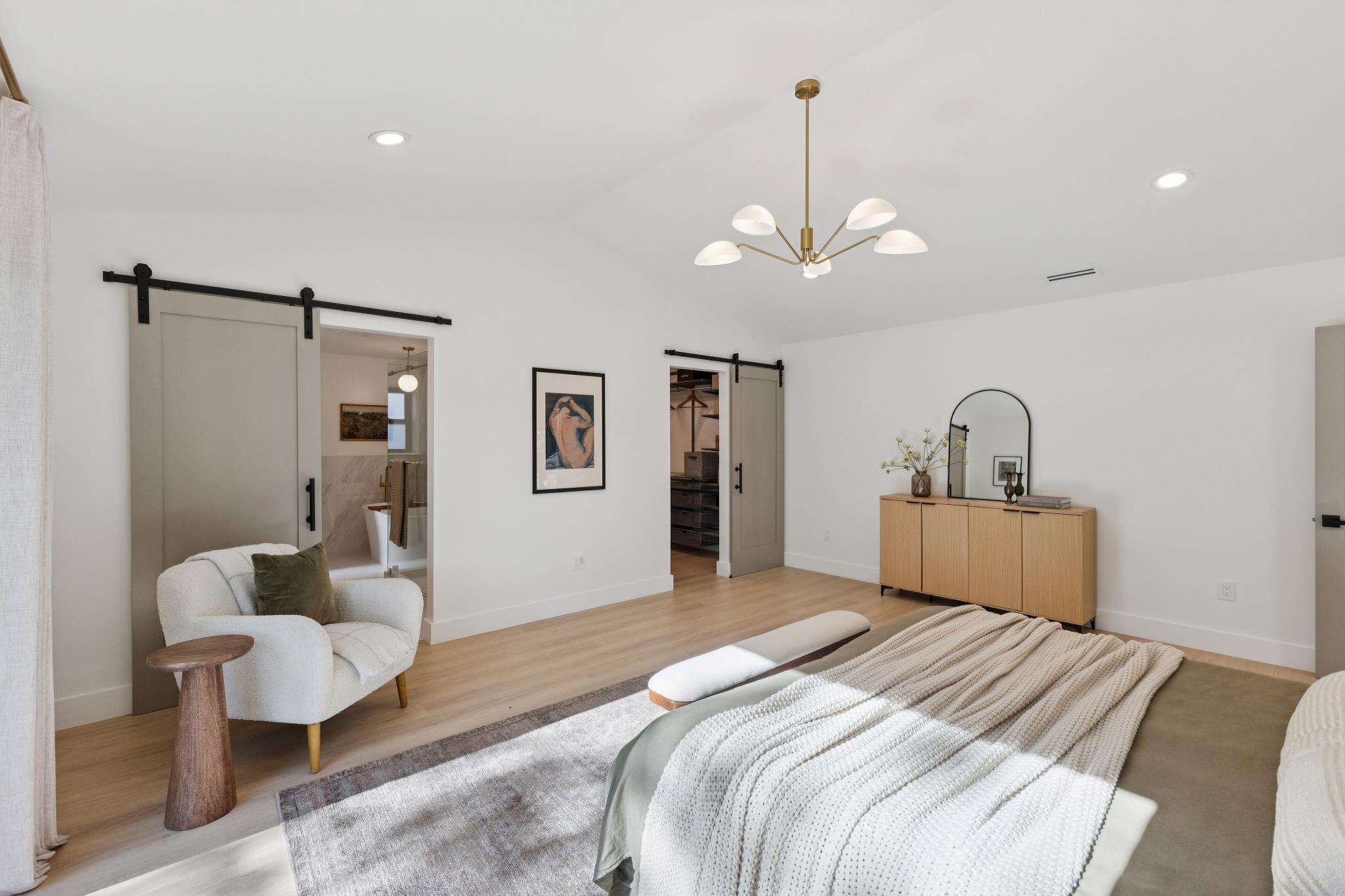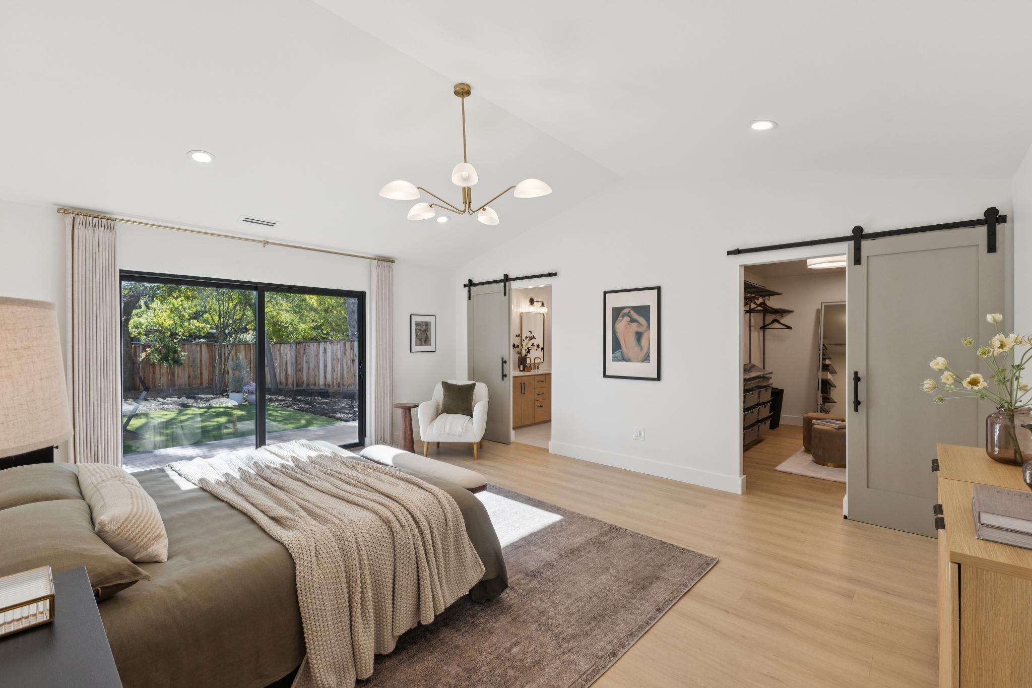 Rebuilt in 2025 on a Flat 0.4-Acre Lot with Single-Story Living and ADU. The 4-bedroom + office, 2.5-bathroom main home is complemented by a 1-bedroom, 1-bathroom private attached ADU with a kitchen and laundry. Ideal for guests, extended family, office space, or rental income. Soaring vaulted ceilings, skylights, and natural light highlight the home’s modern design. Open living spaces center around a dramatic floor-to-ceiling fireplace and expansive Andersen sliding glass doors for seamless indoor-outdoor living. Wide-plank engineered wood floors run throughout, and the chef’s kitchen features sleek quartz countertops and a refined minimalist aesthetic. The primary suite includes a freestanding soaking tub and dual vanity. Additional highlights include an attached two-car garage and a puppy shower. The tree-canopied outdoor area is perfect for dining, entertaining, and relaxation, with potential for another ADU or a possible lot split. Minutes to BART, downtown Walnut Creek, Lafayette, and Pleasant Hill, with easy freeway access. Close to award-winning schools and nationally recognized De La Salle and Carondelet, plus nearby trails, restaurants, shopping, and parks. A rare offering set on one of the most desirable expansive grounds.