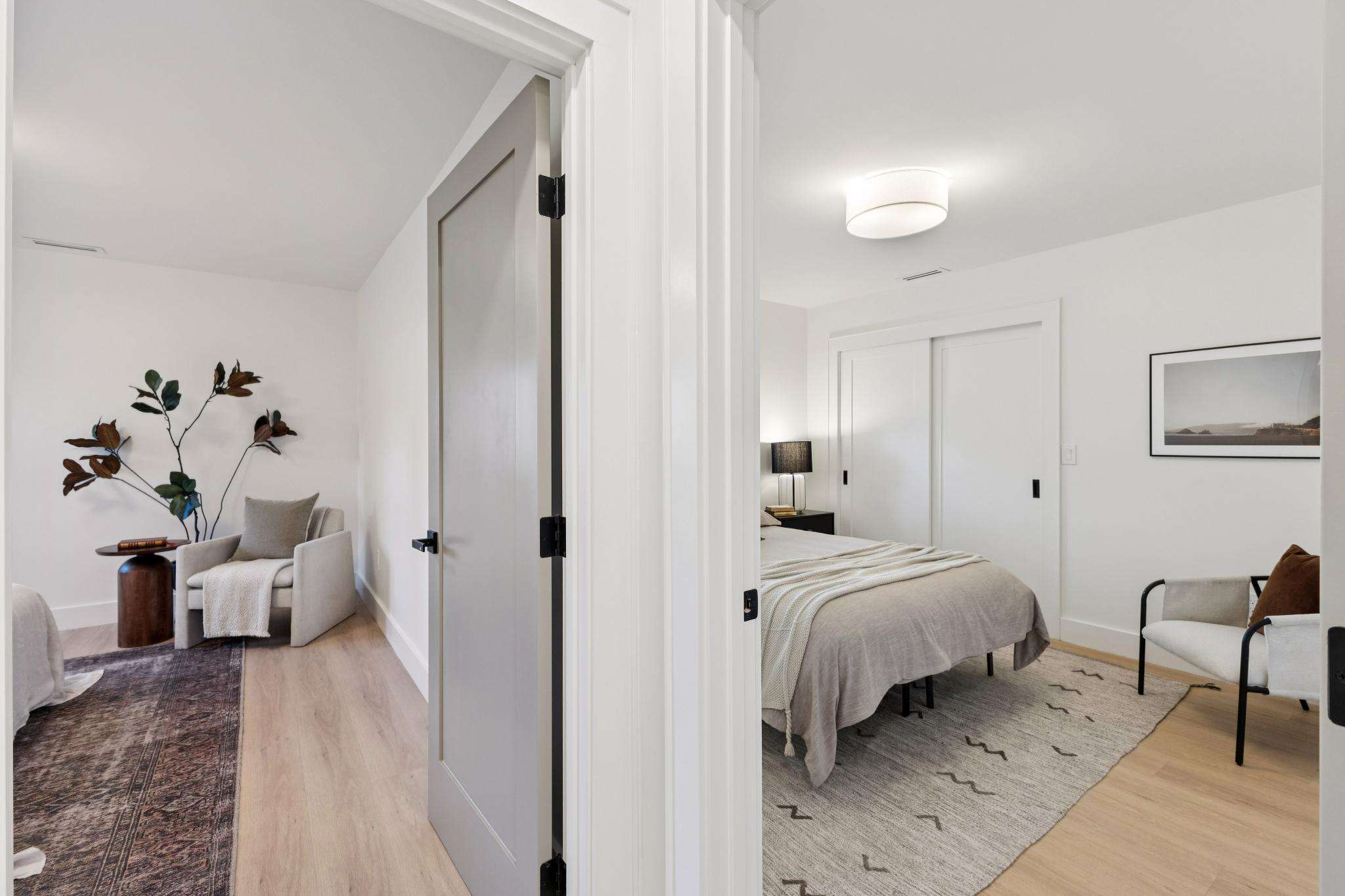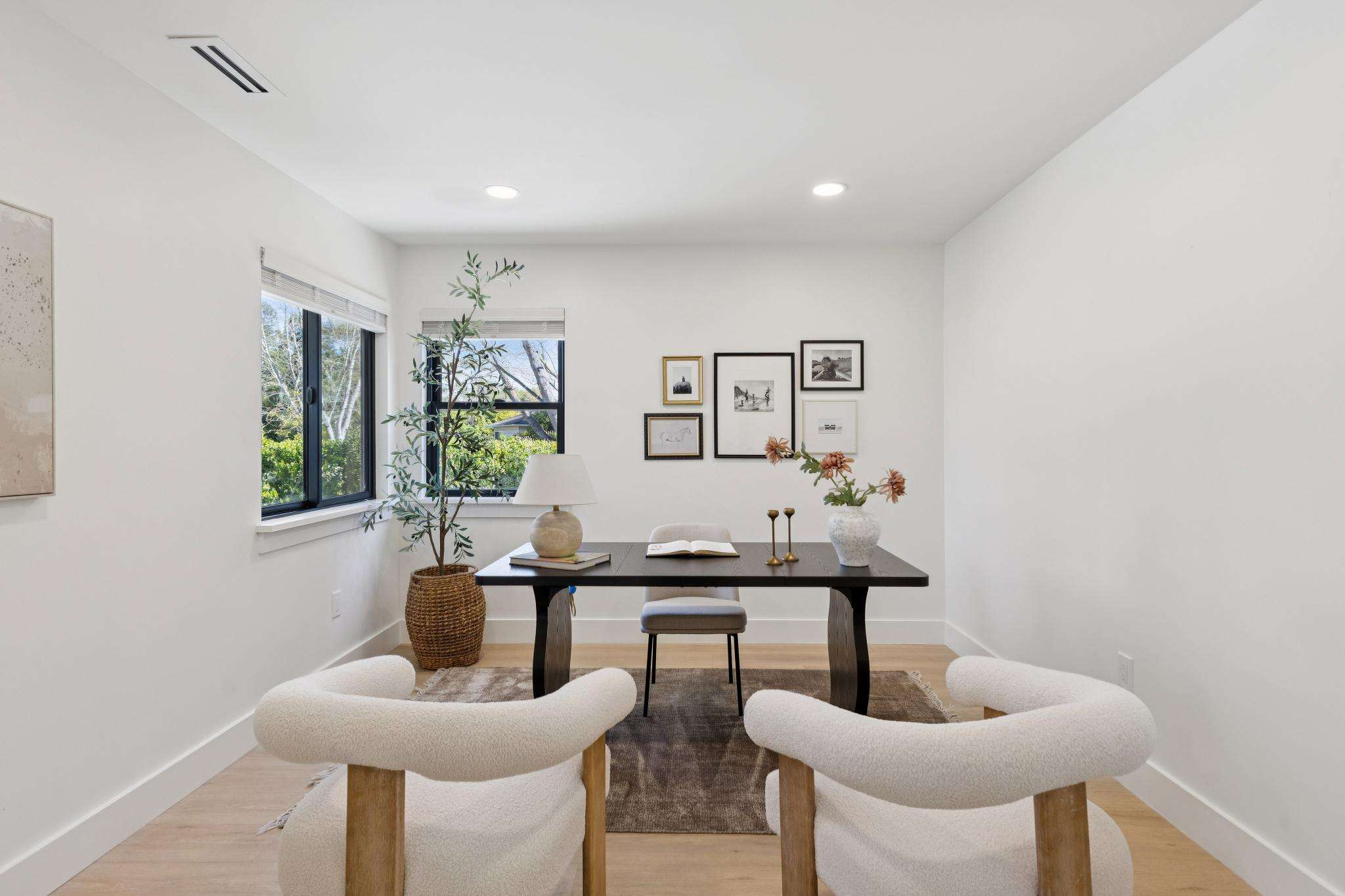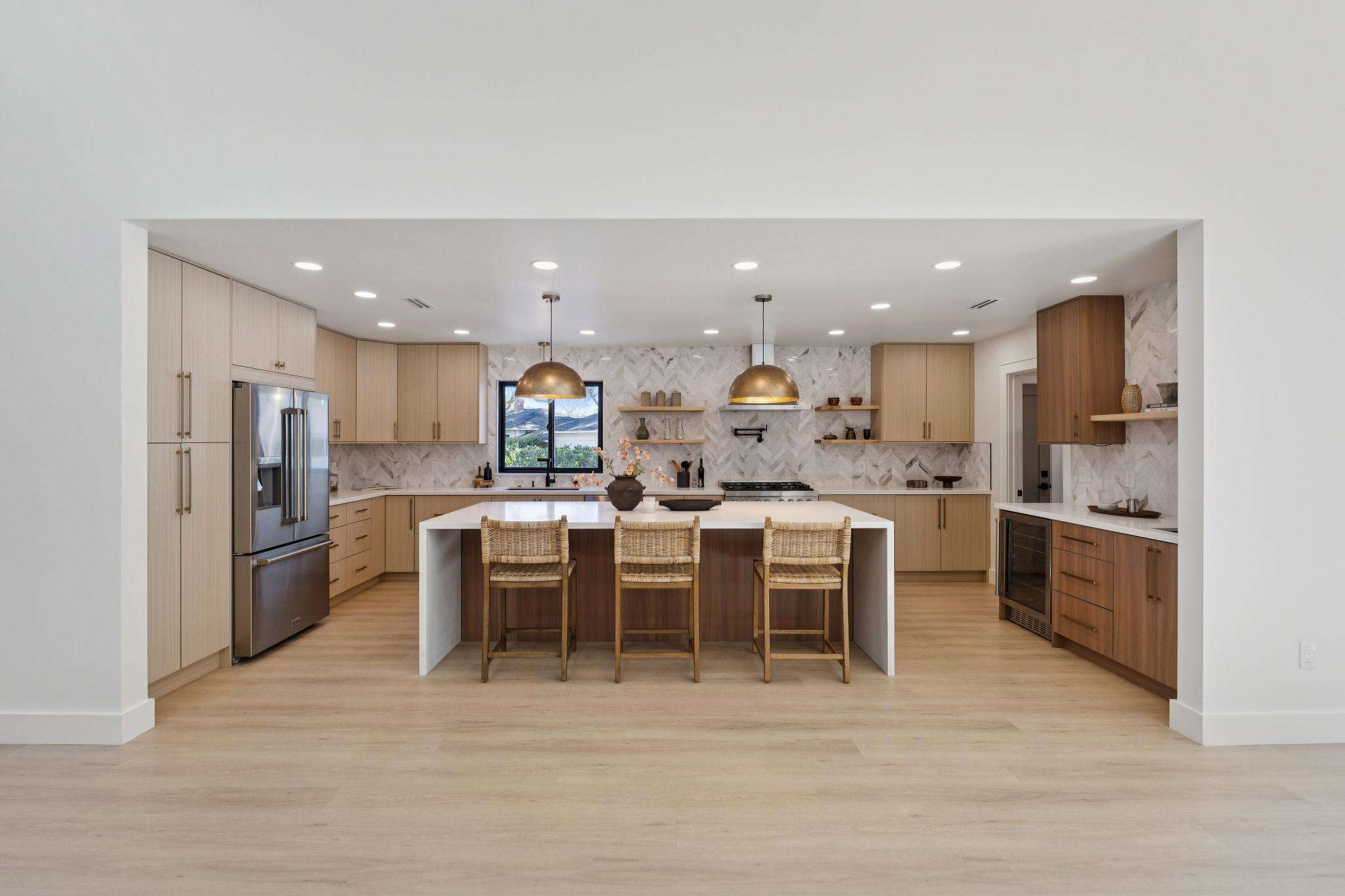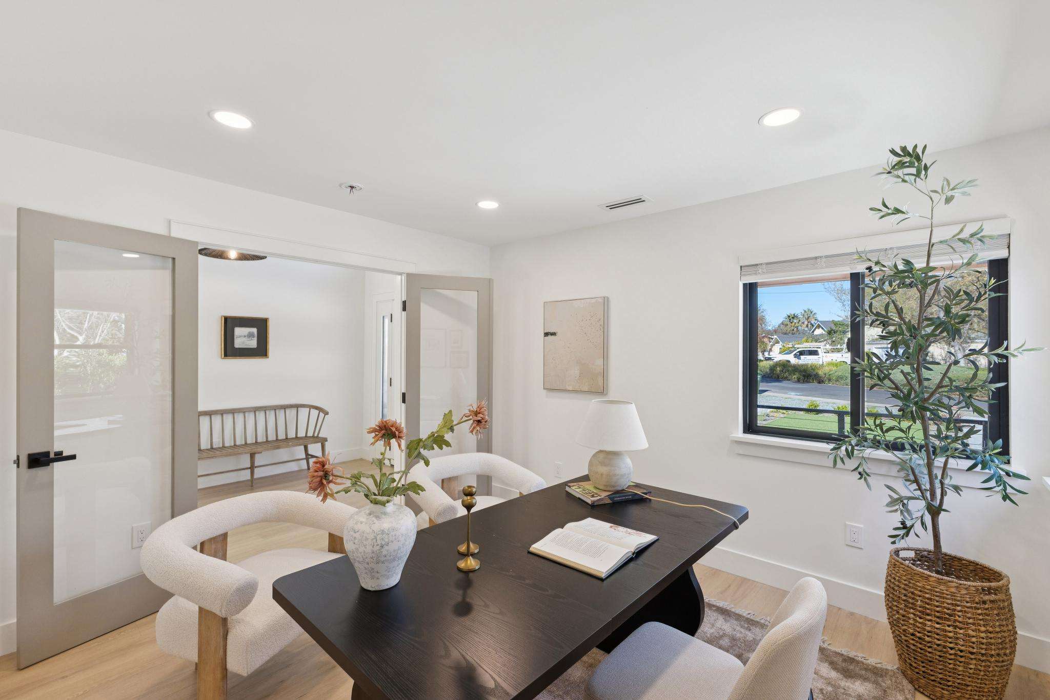 Rebuilt in 2025 on a Flat 0.4-Acre Lot with Single-Story Living and ADU. The 4-bedroom + office, 2.5-bathroom main home is complemented by a 1-bedroom, 1-bathroom private attached ADU with a kitchen and laundry. Ideal for guests, extended family, office space, or rental income. Soaring vaulted ceilings, skylights, and natural light highlight the home’s modern design. Open living spaces center around a dramatic floor-to-ceiling fireplace and expansive Andersen sliding glass doors for seamless indoor-outdoor living. Wide-plank engineered wood floors run throughout, and the chef’s kitchen features sleek quartz countertops and a refined minimalist aesthetic. The primary suite includes a freestanding soaking tub and dual vanity. Additional highlights include an attached two-car garage and a puppy shower. The tree-canopied outdoor area is perfect for dining, entertaining, and relaxation, with potential for another ADU or a possible lot split. Minutes to BART, downtown Walnut Creek, Lafayette, and Pleasant Hill, with easy freeway access. Close to award-winning schools and nationally recognized De La Salle and Carondelet, plus nearby trails, restaurants, shopping, and parks. A rare offering set on one of the most desirable expansive grounds.
