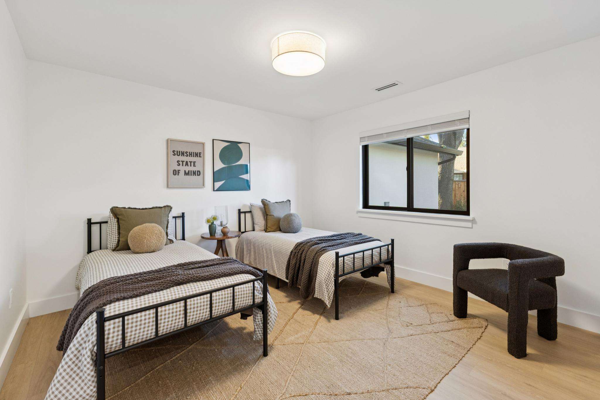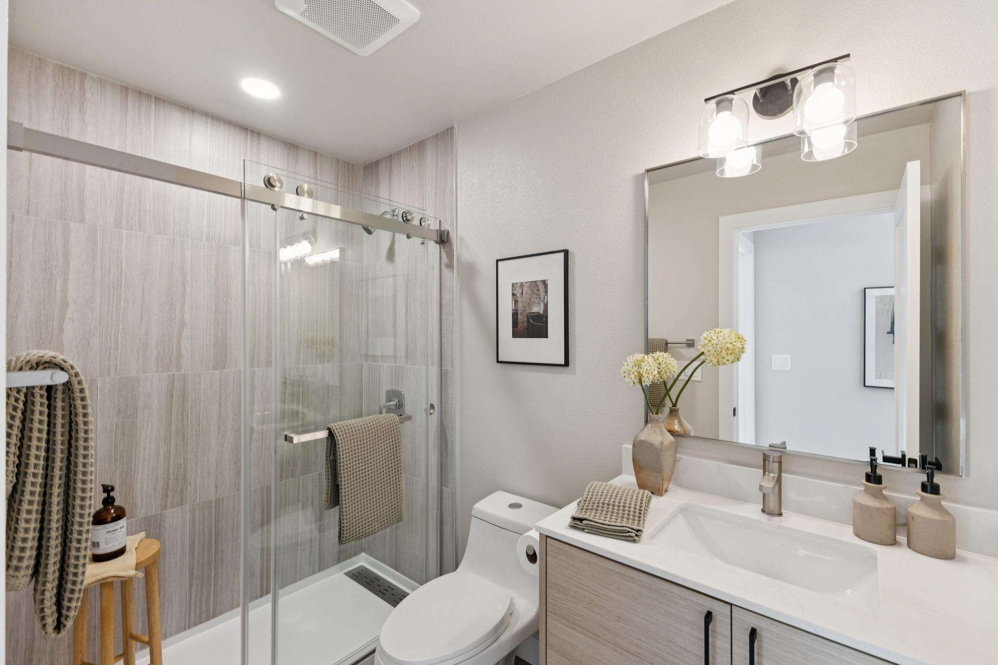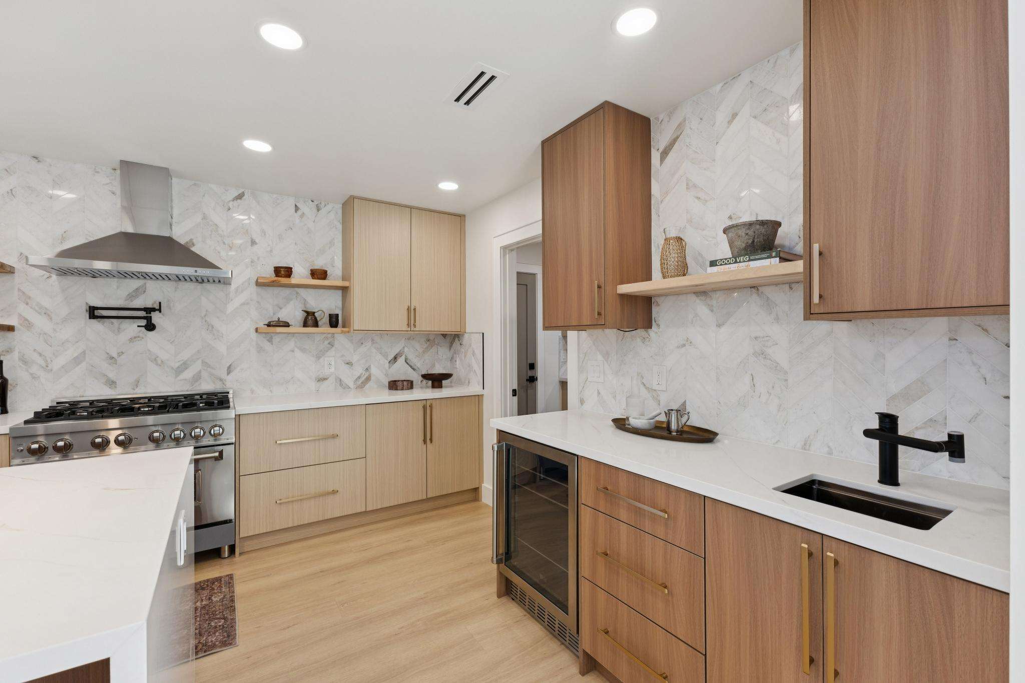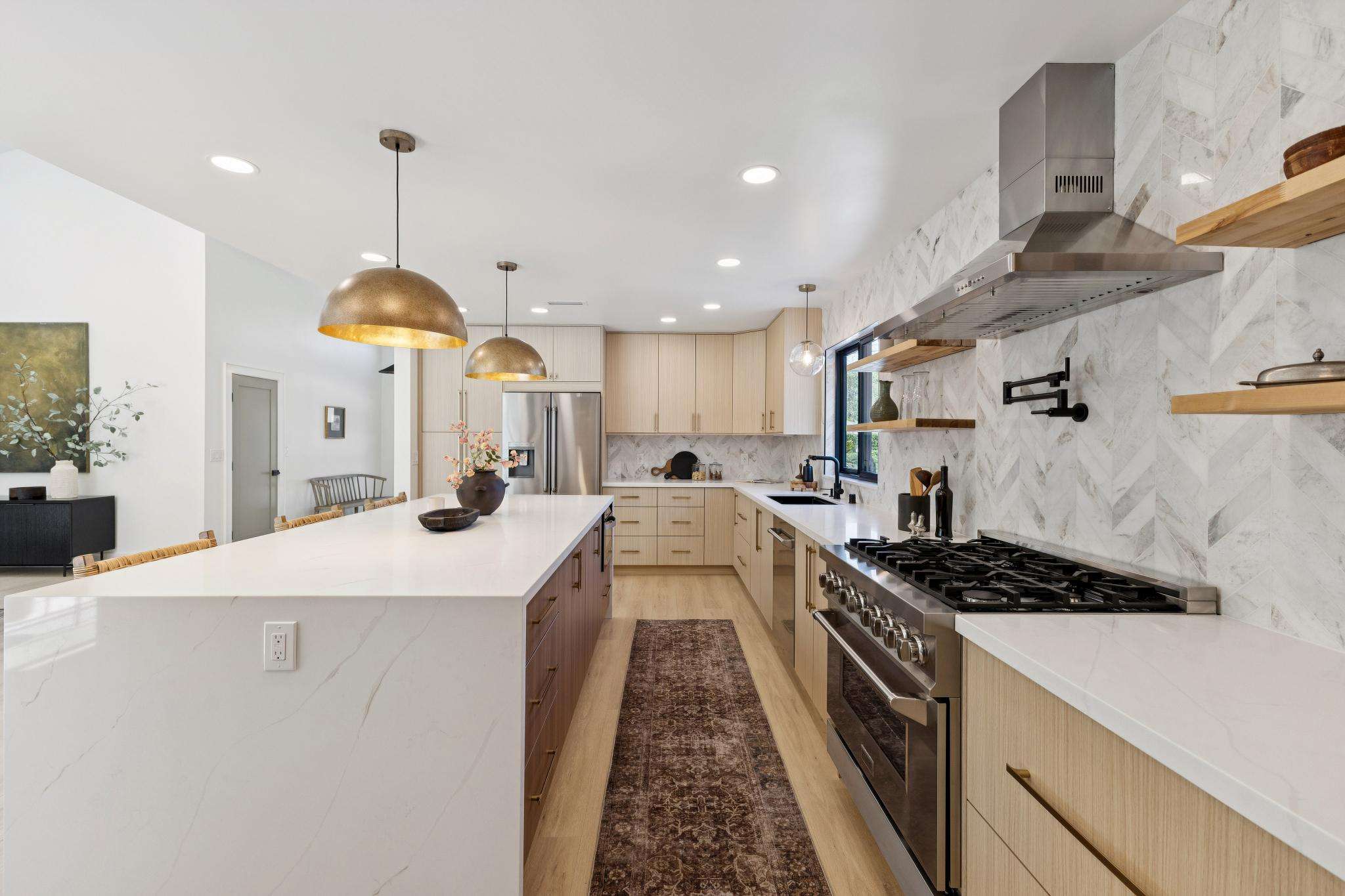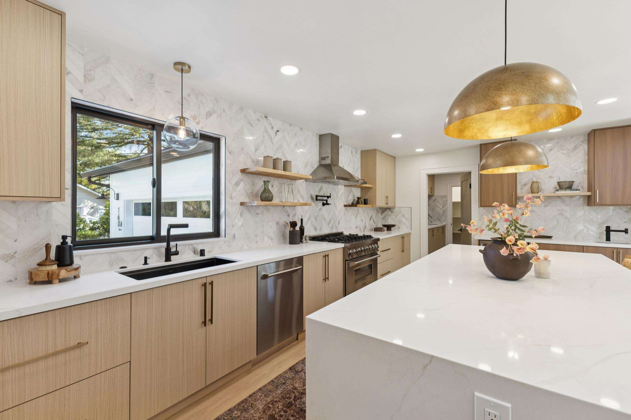 Rebuilt in 2025 on a Flat 0.4-Acre Lot with Single-Story Living and ADU. The 4-bedroom + office, 2.5-bathroom main home is complemented by a 1-bedroom, 1-bathroom private attached ADU with a kitchen and laundry. Ideal for guests, extended family, office space, or rental income. Soaring vaulted ceilings, skylights, and natural light highlight the home’s modern design. Open living spaces center around a dramatic floor-to-ceiling fireplace and expansive Andersen sliding glass doors for seamless indoor-outdoor living. Wide-plank engineered wood floors run throughout, and the chef’s kitchen features sleek quartz countertops and a refined minimalist aesthetic. The primary suite includes a freestanding soaking tub and dual vanity. Additional highlights include an attached two-car garage and a puppy shower. The tree-canopied outdoor area is perfect for dining, entertaining, and relaxation, with potential for another ADU or a possible lot split. Minutes to BART, downtown Walnut Creek, Lafayette, and Pleasant Hill, with easy freeway access. Close to award-winning schools and nationally recognized De La Salle and Carondelet, plus nearby trails, restaurants, shopping, and parks. A rare offering set on one of the most desirable expansive grounds.