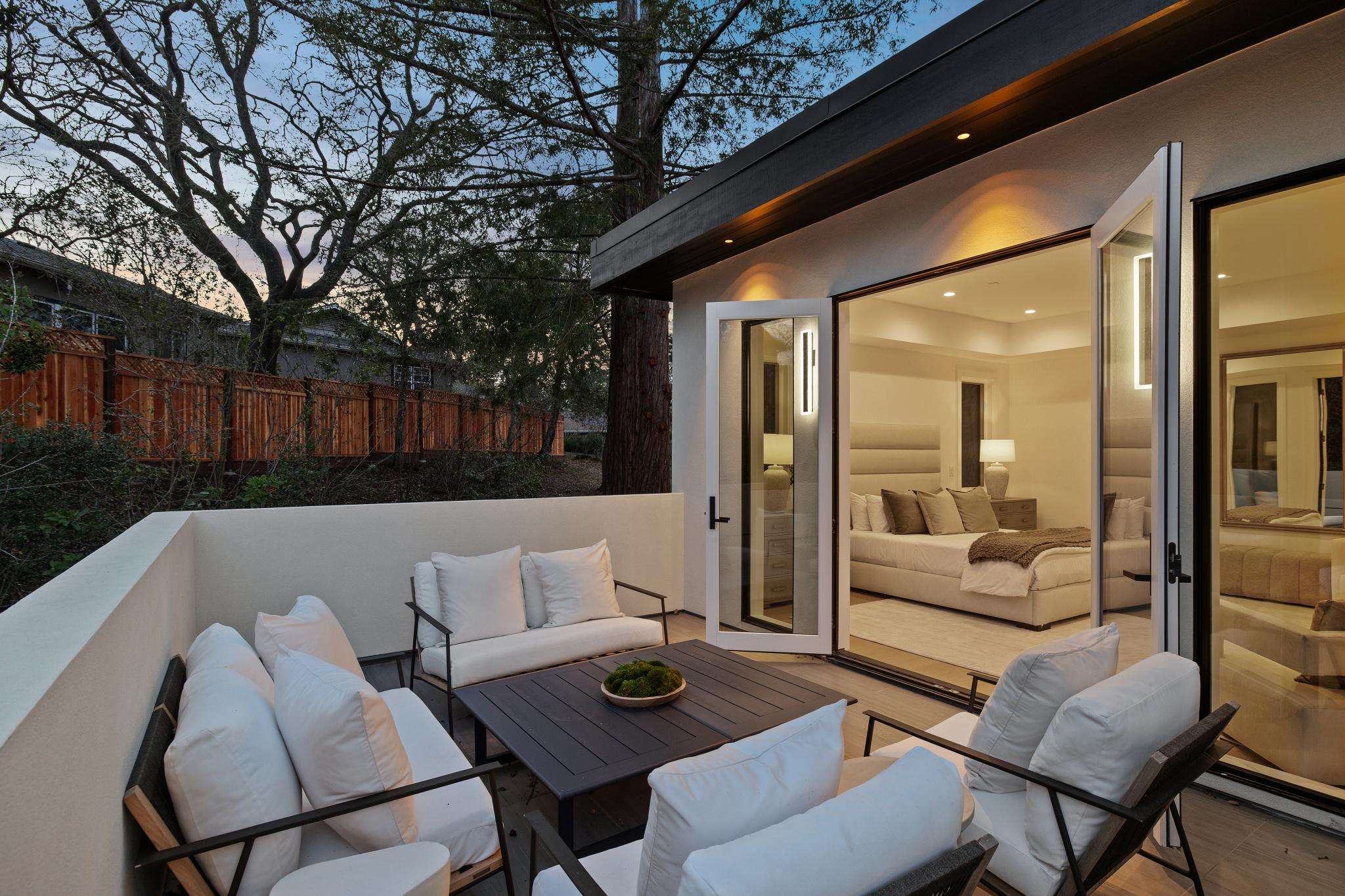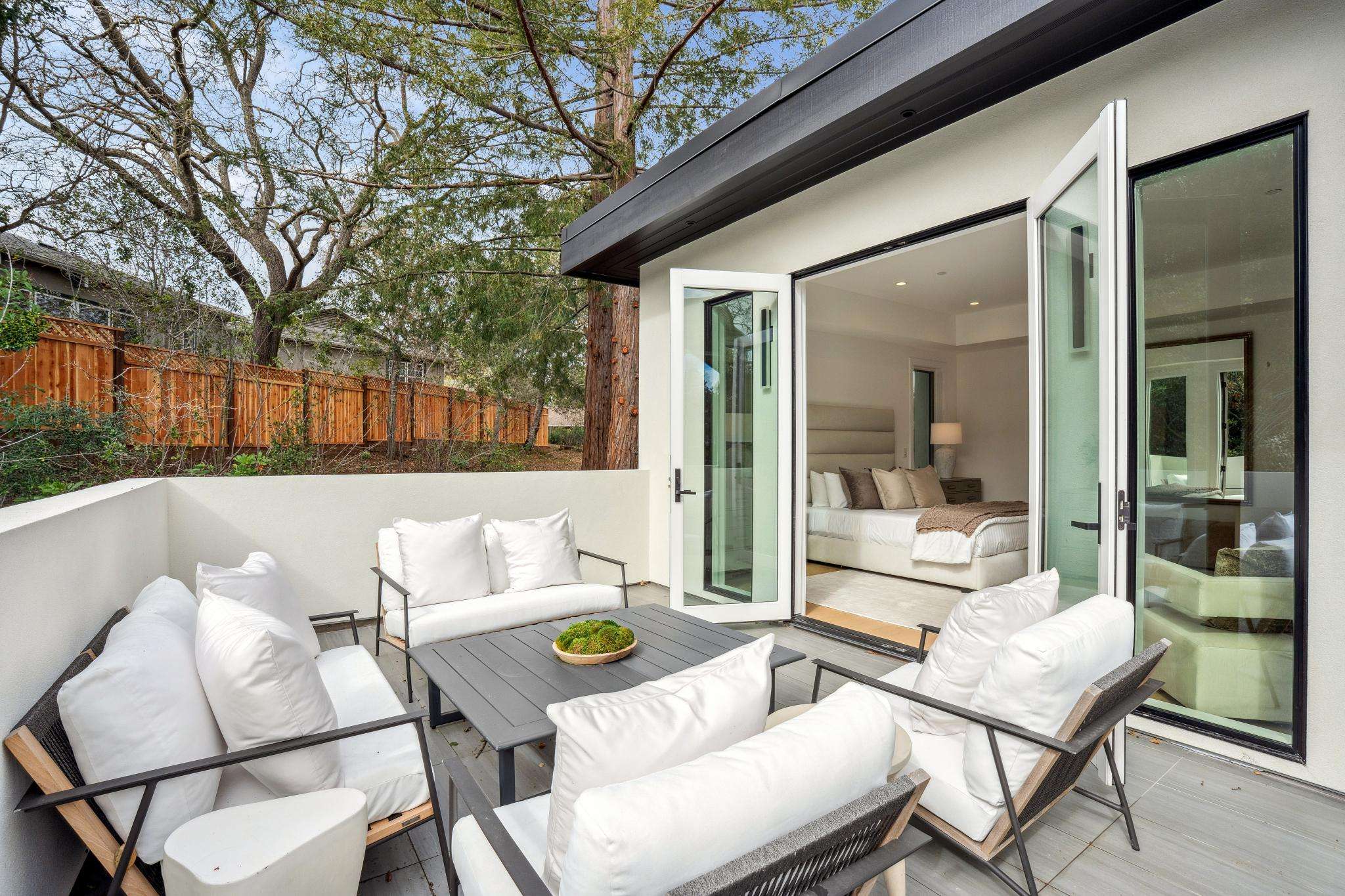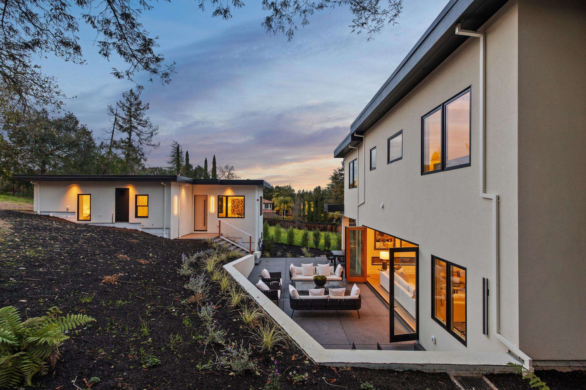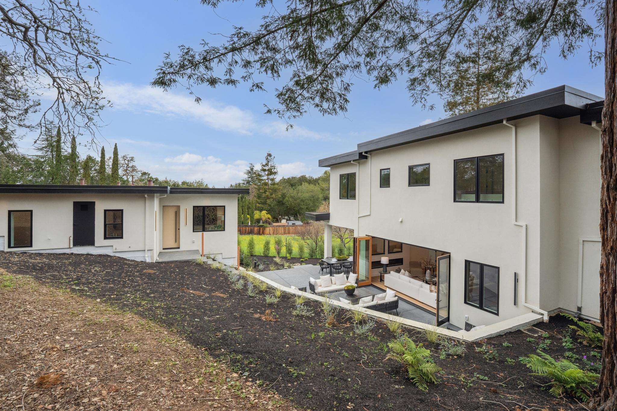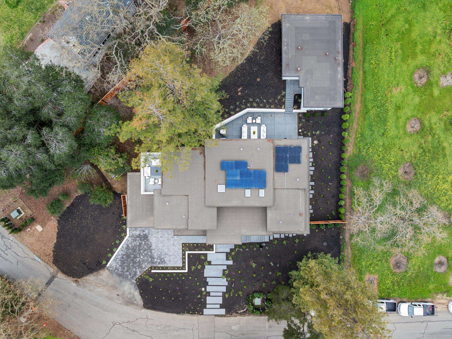 Balancing understated sophistication and artistic vibrance, this bi-level custom estate occupies grounds of nearly 0.5 acre on an exclusive cul-de-sac in the sought-after Country Club neighborhood. Completed in February 2026, the residence reveals sky-lit interiors bathed in natural light and designed to embrace indoor-outdoor living. Highlights include a master chef’s kitchen with butler’s pantry, formal and informal living areas, a ground-level office and bedroom suite, and a spectacular primary suite with spa bath, rooftop patio, and custom luxury closet. A folding wall retracts to connect the gathering areas with an expansive leisure patio—perfect for entertaining. The grounds are newly landscaped and fenced, offering a detached ADU thoughtfully equipped with a full kitchen and two bedrooms. Exciting details include a solid-core pivot door, Taj Mahal quartzite slabs, Italian tiles, German-engineered fixtures, and a floating staircase of wood, metal, and glass. Just one block over from the Los Altos Golf & Country Club. Excellent access to Downtown Los Altos, superb schools, Stanford University, and top tech centers.