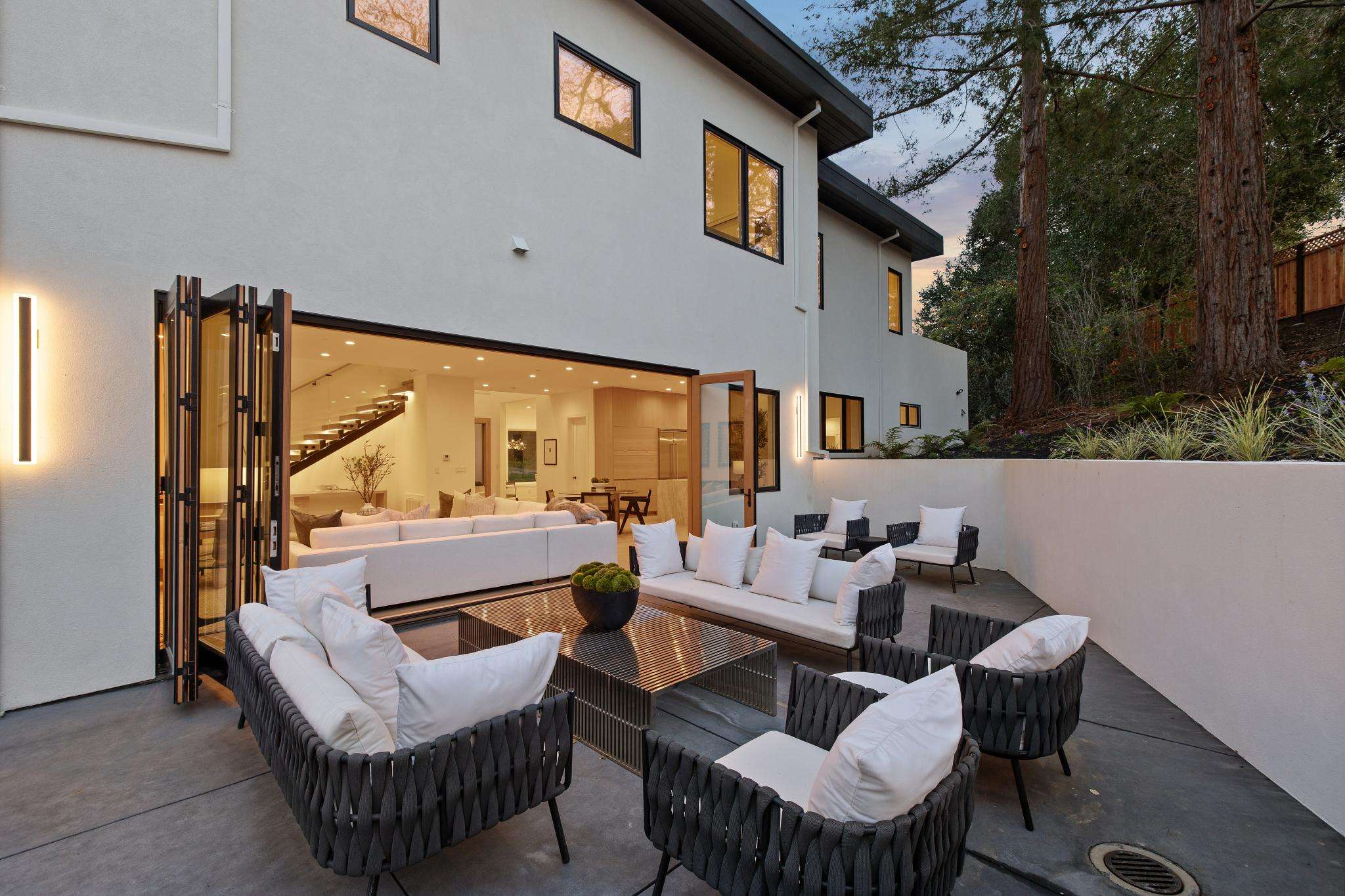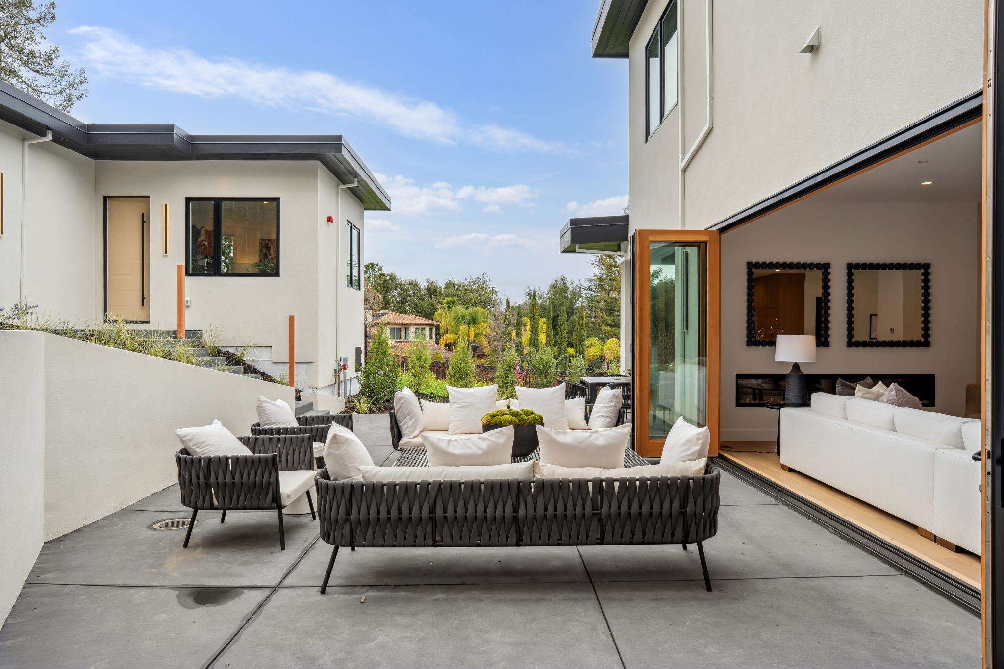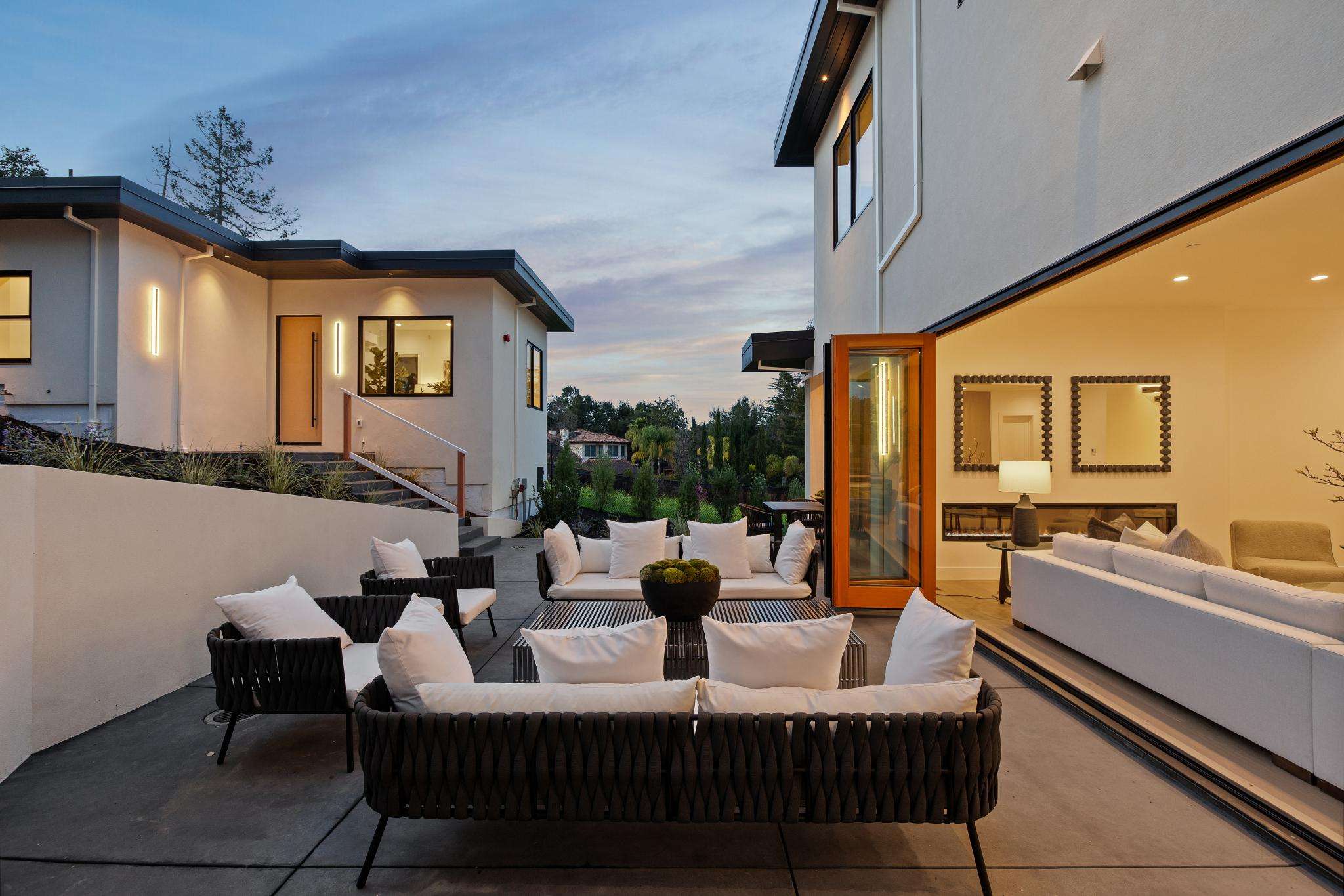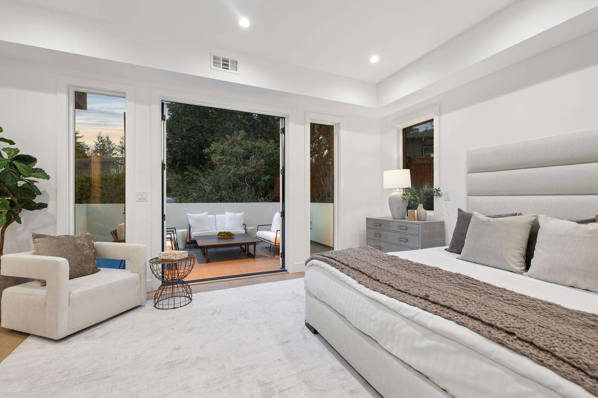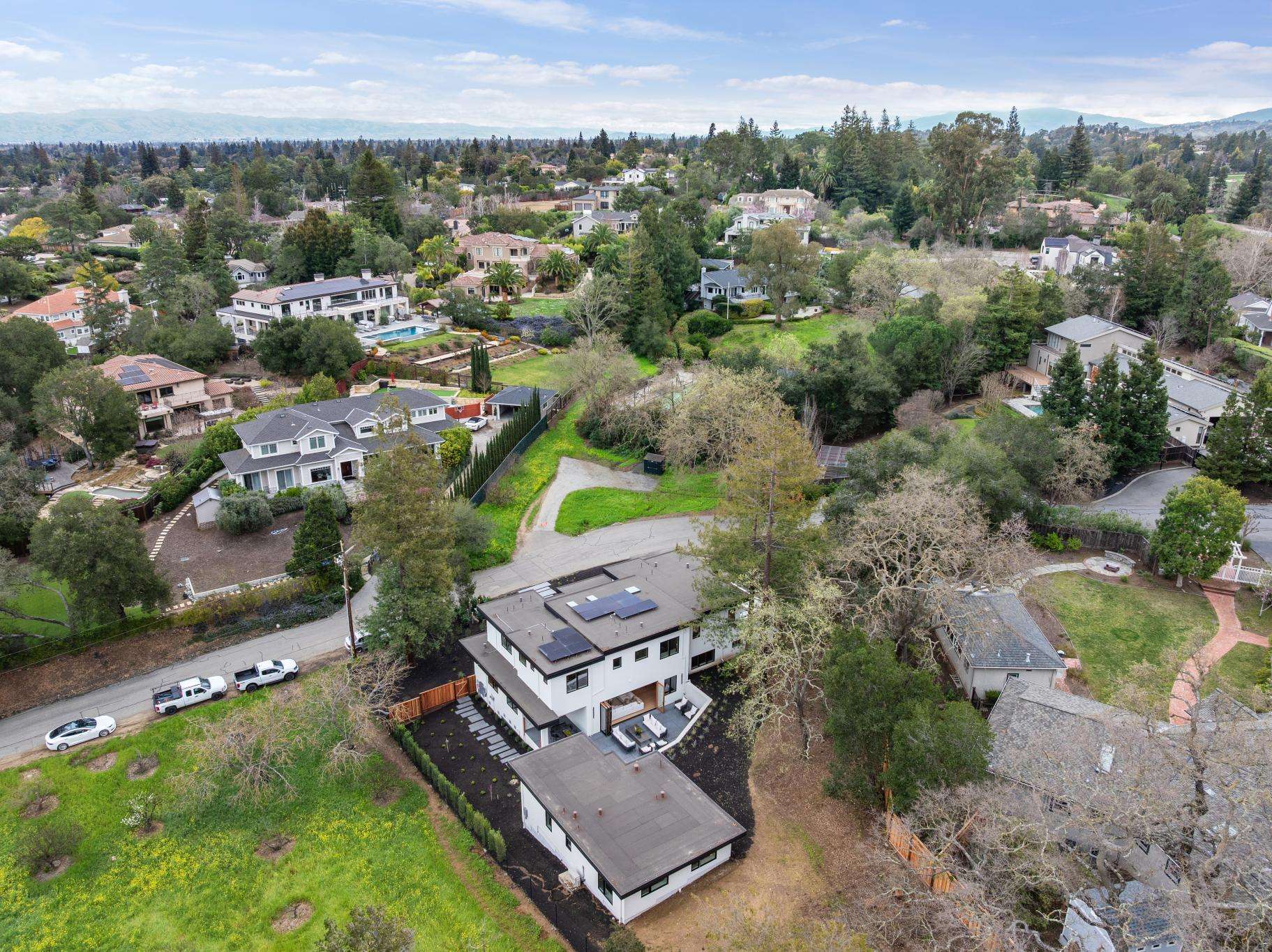 Balancing understated sophistication and artistic vibrance, this bi-level custom estate occupies grounds of nearly 0.5 acre on an exclusive cul-de-sac in the sought-after Country Club neighborhood. Completed in February 2026, the residence reveals sky-lit interiors bathed in natural light and designed to embrace indoor-outdoor living. Highlights include a master chef’s kitchen with butler’s pantry, formal and informal living areas, a ground-level office and bedroom suite, and a spectacular primary suite with spa bath, rooftop patio, and custom luxury closet. A folding wall retracts to connect the gathering areas with an expansive leisure patio—perfect for entertaining. The grounds are newly landscaped and fenced, offering a detached ADU thoughtfully equipped with a full kitchen and two bedrooms. Exciting details include a solid-core pivot door, Taj Mahal quartzite slabs, Italian tiles, German-engineered fixtures, and a floating staircase of wood, metal, and glass. Just one block over from the Los Altos Golf & Country Club. Excellent access to Downtown Los Altos, superb schools, Stanford University, and top tech centers.