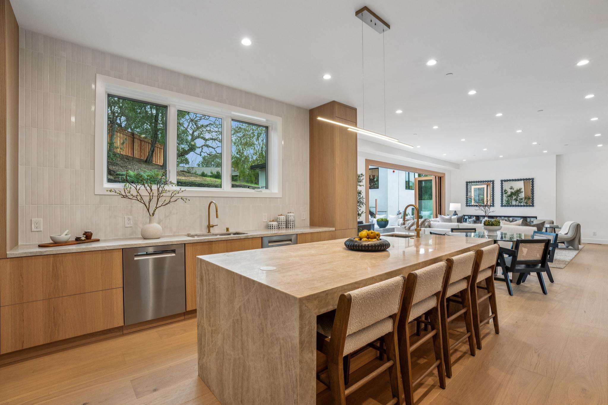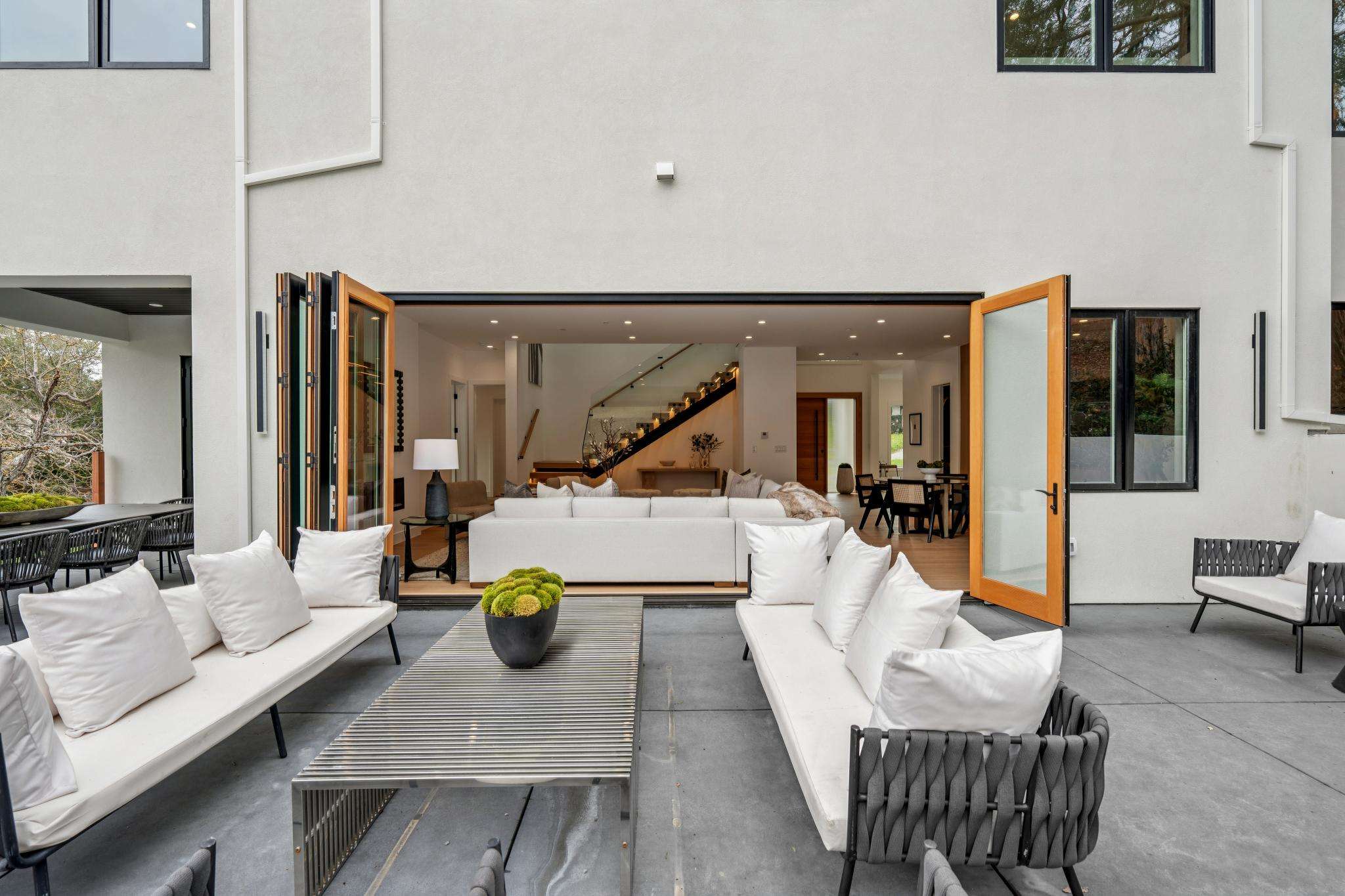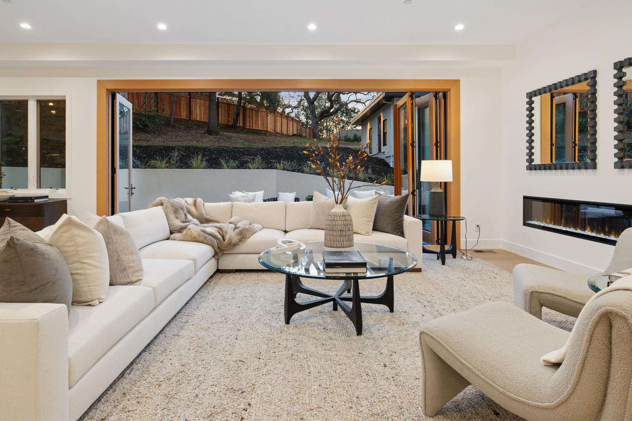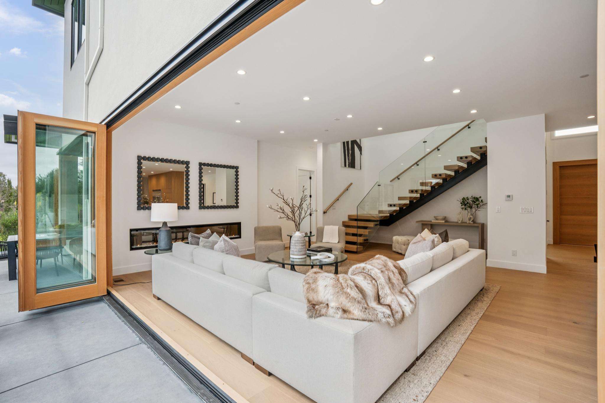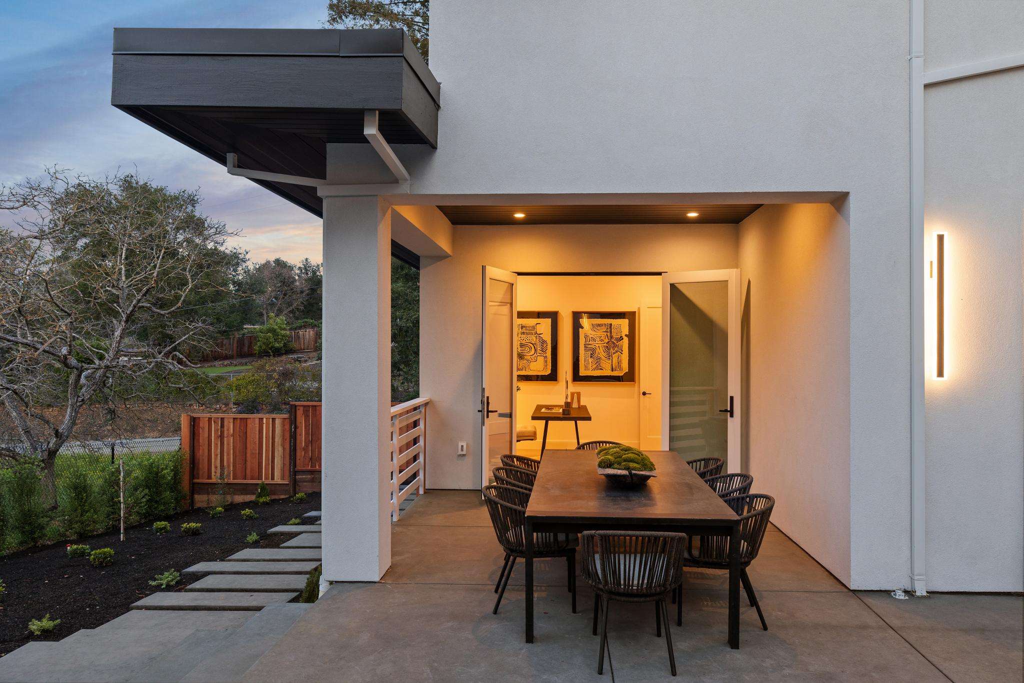 Balancing understated sophistication and artistic vibrance, this bi-level custom estate occupies grounds of nearly 0.5 acre on an exclusive cul-de-sac in the sought-after Country Club neighborhood. Completed in February 2026, the residence reveals sky-lit interiors bathed in natural light and designed to embrace indoor-outdoor living. Highlights include a master chef’s kitchen with butler’s pantry, formal and informal living areas, a ground-level office and bedroom suite, and a spectacular primary suite with spa bath, rooftop patio, and custom luxury closet. A folding wall retracts to connect the gathering areas with an expansive leisure patio—perfect for entertaining. The grounds are newly landscaped and fenced, offering a detached ADU thoughtfully equipped with a full kitchen and two bedrooms. Exciting details include a solid-core pivot door, Taj Mahal quartzite slabs, Italian tiles, German-engineered fixtures, and a floating staircase of wood, metal, and glass. Just one block over from the Los Altos Golf & Country Club. Excellent access to Downtown Los Altos, superb schools, Stanford University, and top tech centers.