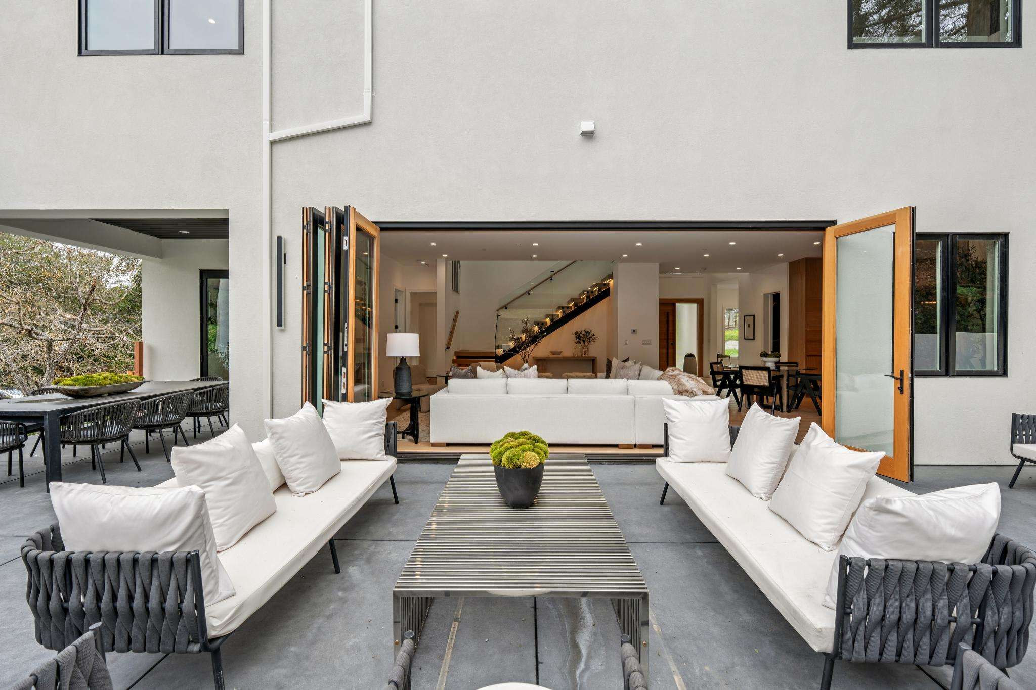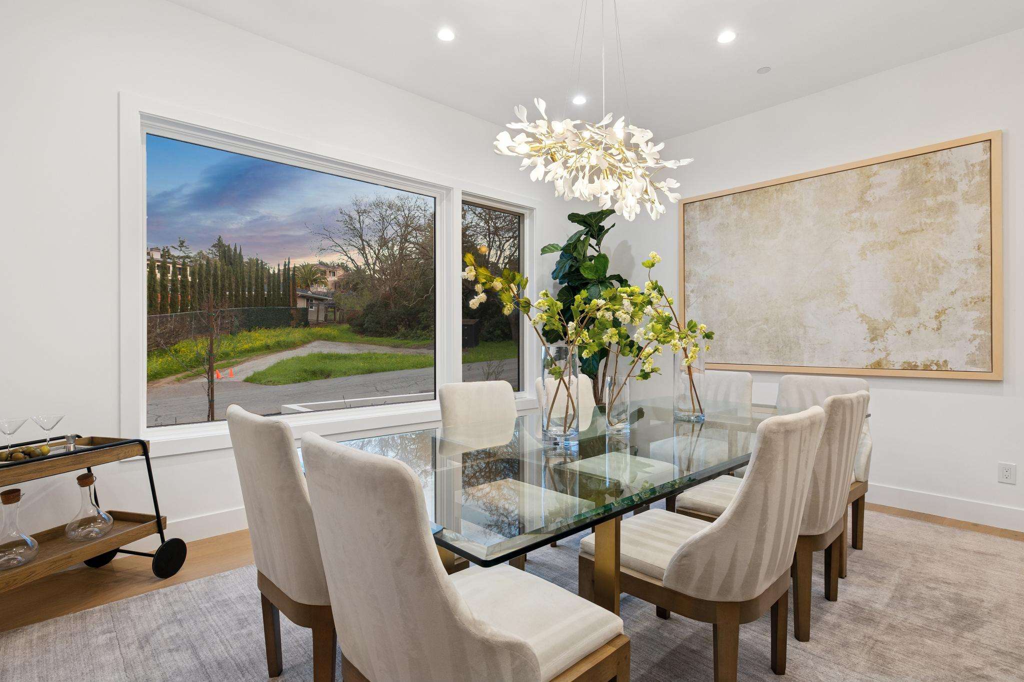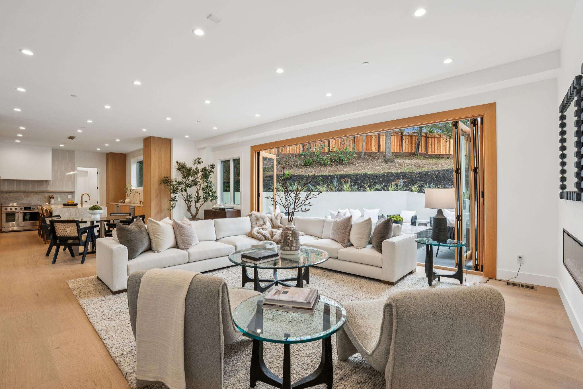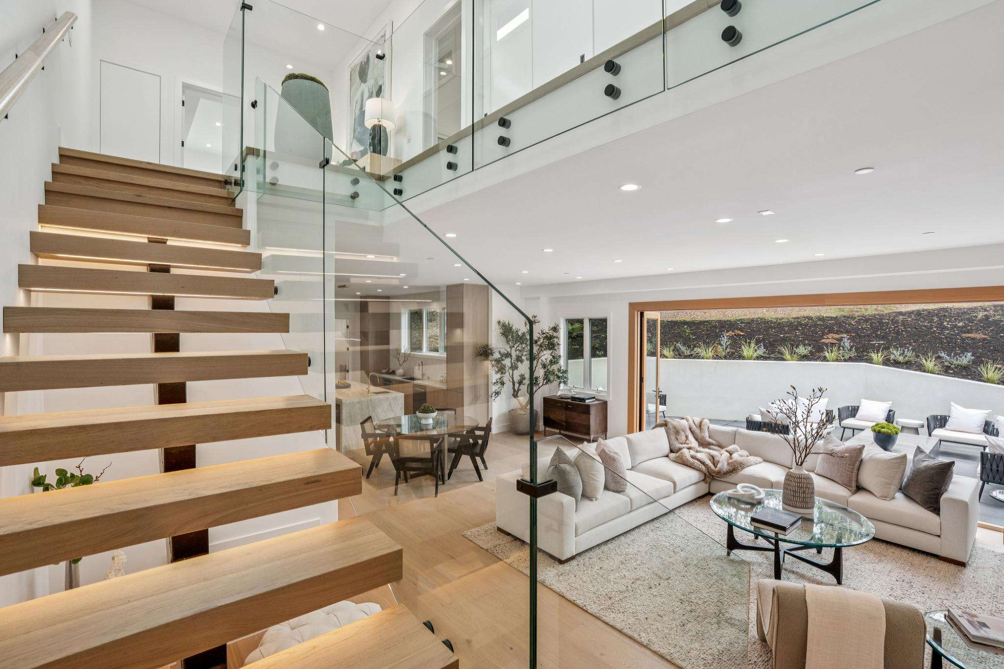 Balancing understated sophistication and artistic vibrance, this bi-level custom estate occupies grounds of nearly 0.5 acre on an exclusive cul-de-sac in the sought-after Country Club neighborhood. Completed in February 2026, the residence reveals sky-lit interiors bathed in natural light and designed to embrace indoor-outdoor living. Highlights include a master chef’s kitchen with butler’s pantry, formal and informal living areas, a ground-level office and bedroom suite, and a spectacular primary suite with spa bath, rooftop patio, and custom luxury closet. A folding wall retracts to connect the gathering areas with an expansive leisure patio—perfect for entertaining. The grounds are newly landscaped and fenced, offering a detached ADU thoughtfully equipped with a full kitchen and two bedrooms. Exciting details include a solid-core pivot door, Taj Mahal quartzite slabs, Italian tiles, German-engineered fixtures, and a floating staircase of wood, metal, and glass. Just one block over from the Los Altos Golf & Country Club. Excellent access to Downtown Los Altos, superb schools, Stanford University, and top tech centers.