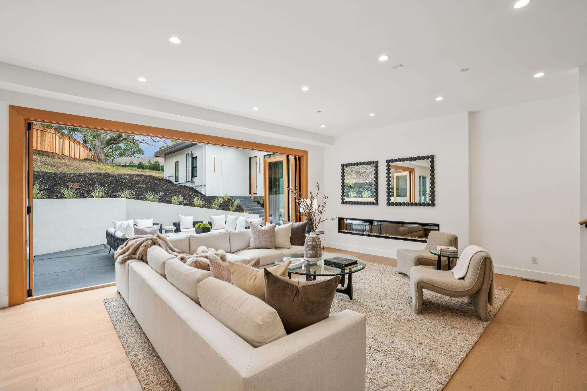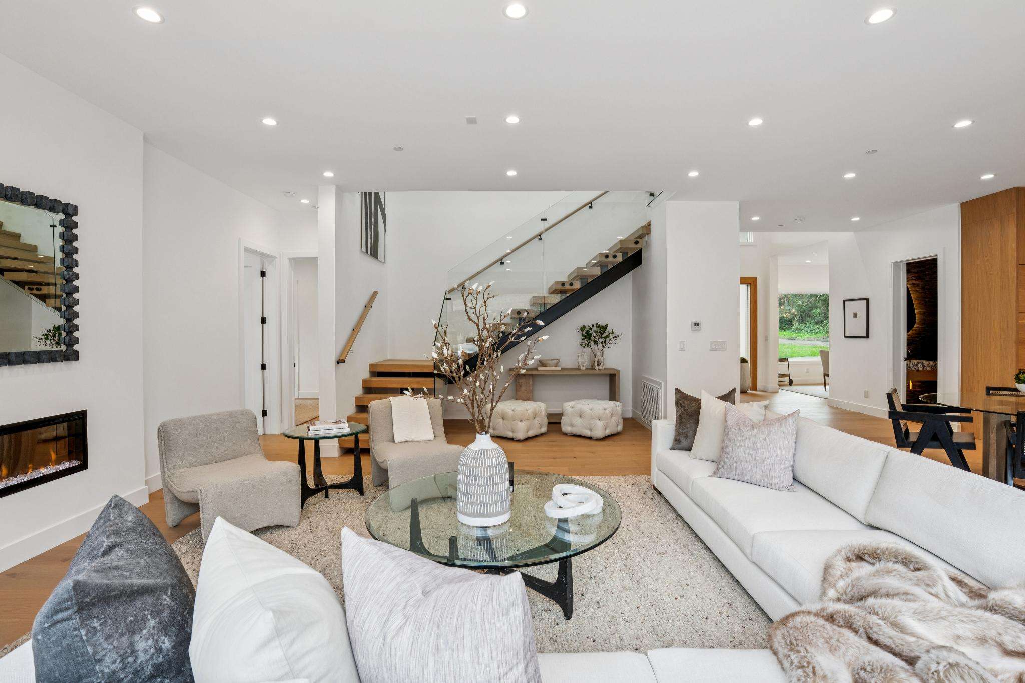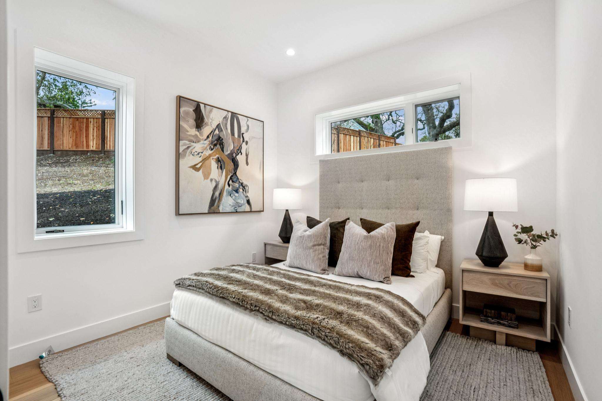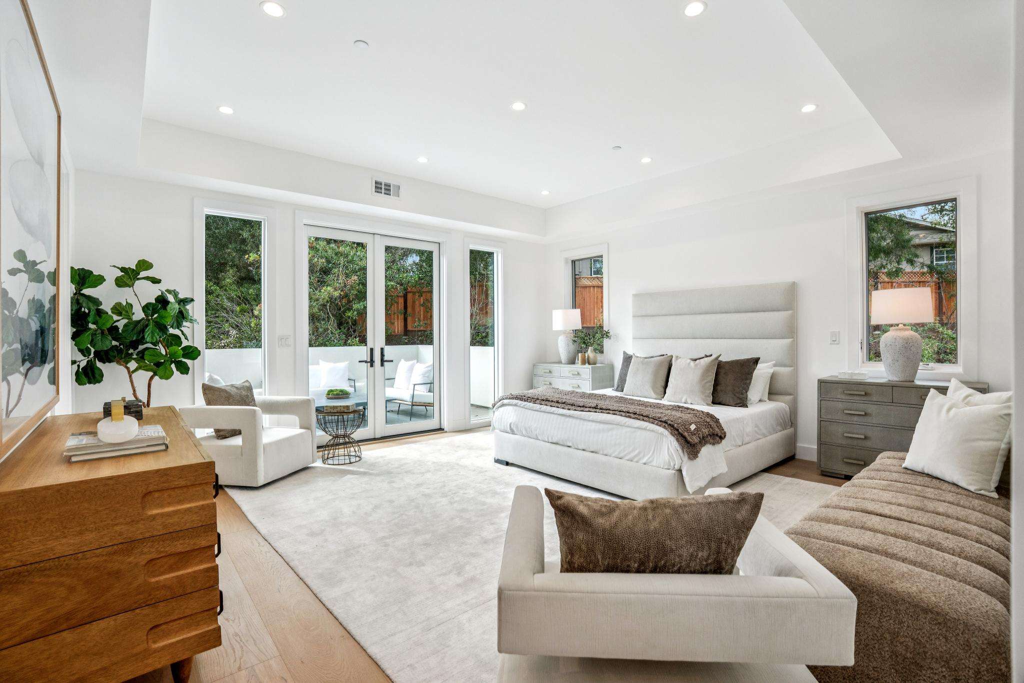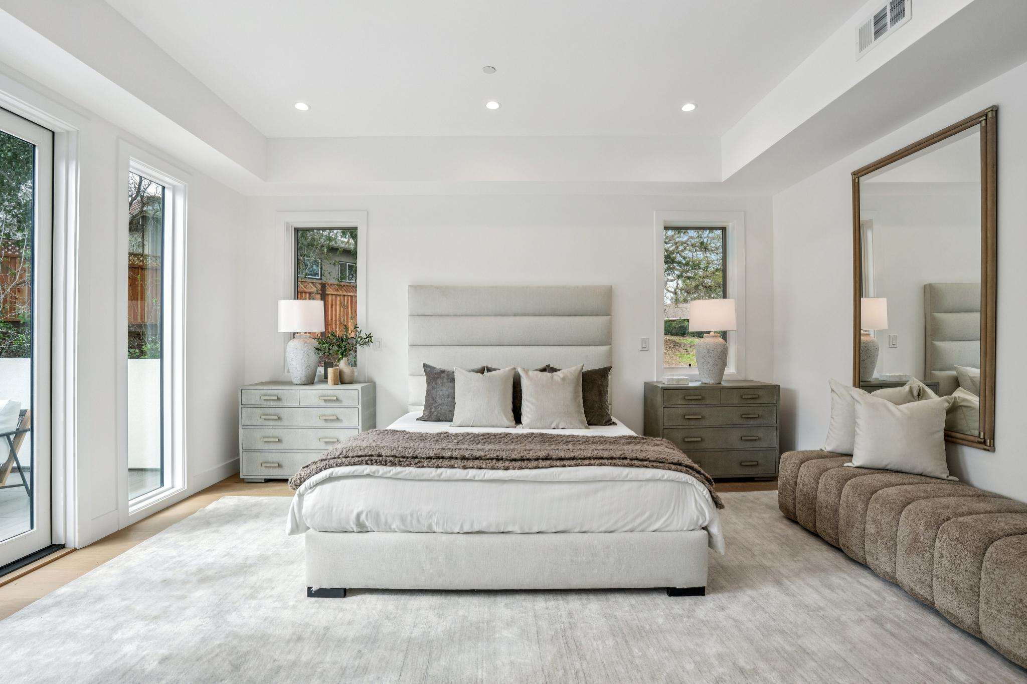 Balancing understated sophistication and artistic vibrance, this bi-level custom estate occupies grounds of nearly 0.5 acre on an exclusive cul-de-sac in the sought-after Country Club neighborhood. Completed in February 2026, the residence reveals sky-lit interiors bathed in natural light and designed to embrace indoor-outdoor living. Highlights include a master chef’s kitchen with butler’s pantry, formal and informal living areas, a ground-level office and bedroom suite, and a spectacular primary suite with spa bath, rooftop patio, and custom luxury closet. A folding wall retracts to connect the gathering areas with an expansive leisure patio—perfect for entertaining. The grounds are newly landscaped and fenced, offering a detached ADU thoughtfully equipped with a full kitchen and two bedrooms. Exciting details include a solid-core pivot door, Taj Mahal quartzite slabs, Italian tiles, German-engineered fixtures, and a floating staircase of wood, metal, and glass. Just one block over from the Los Altos Golf & Country Club. Excellent access to Downtown Los Altos, superb schools, Stanford University, and top tech centers.