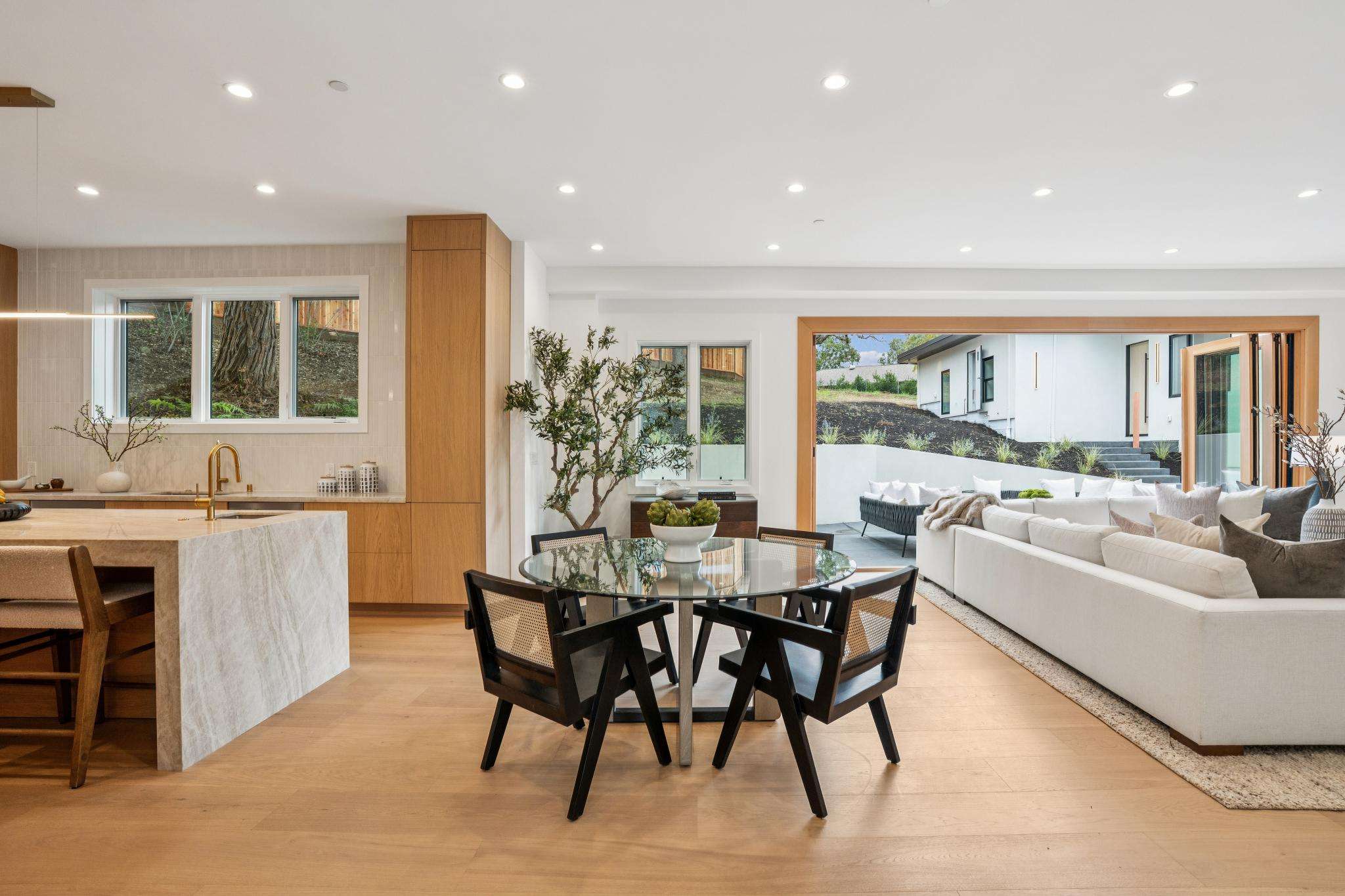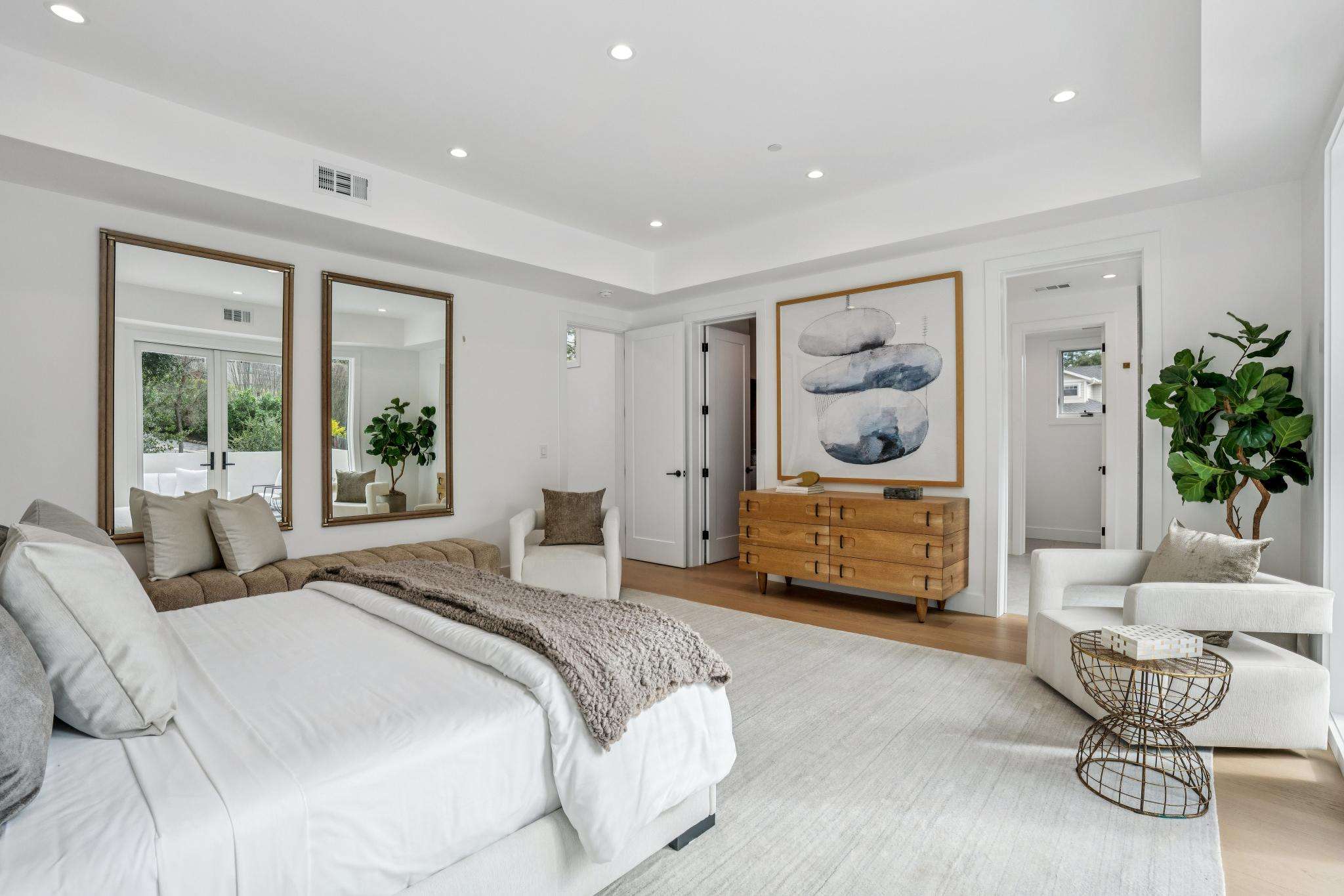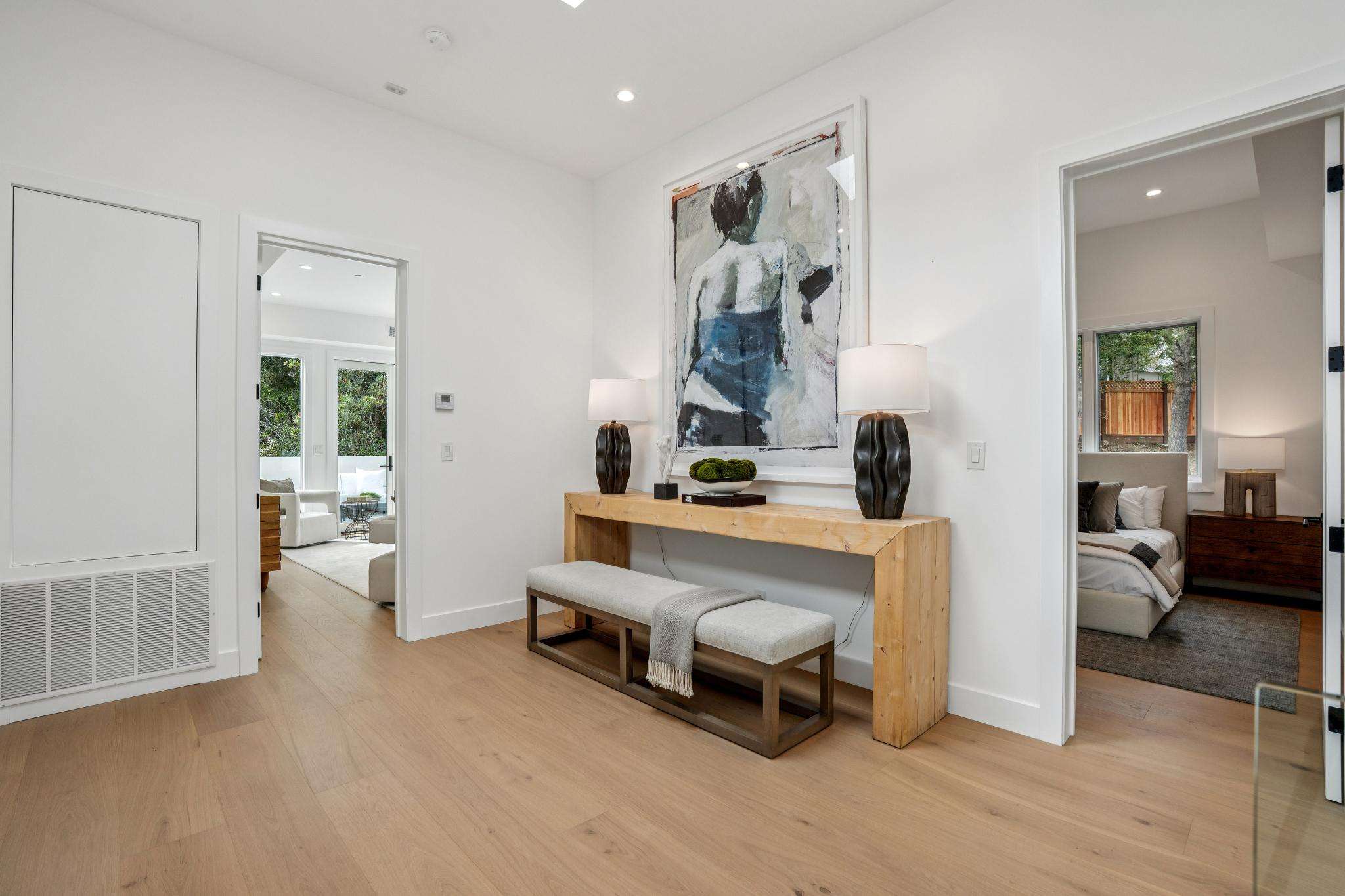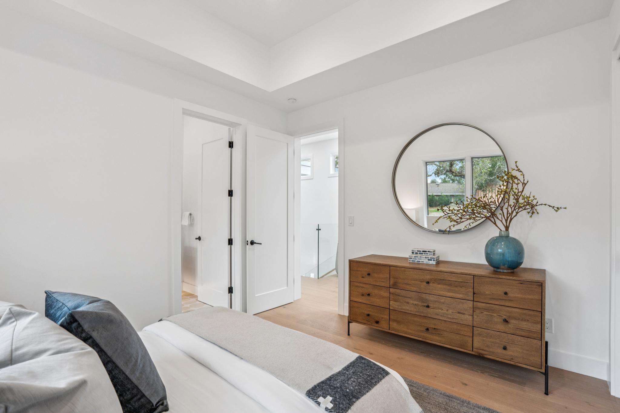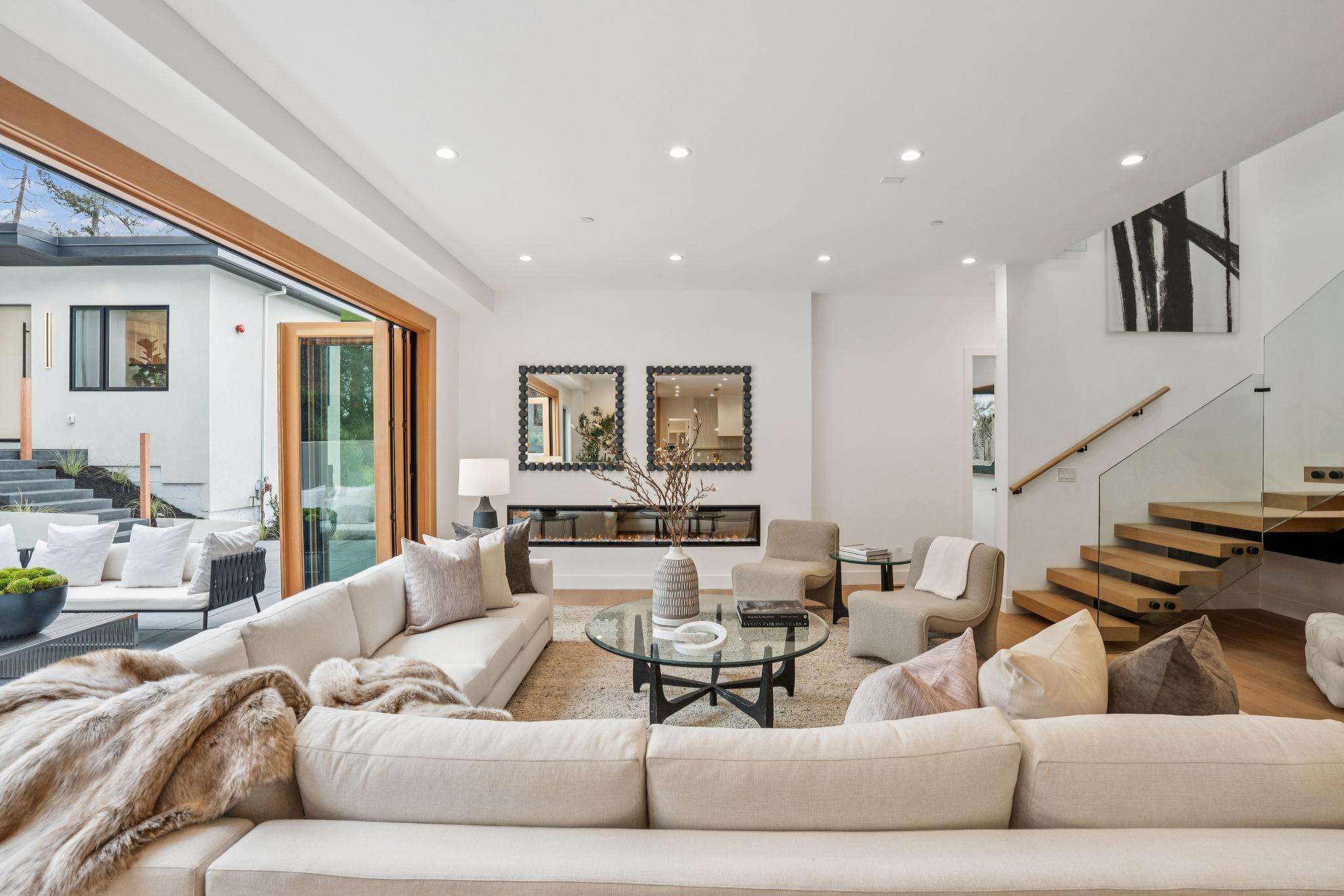 Balancing understated sophistication and artistic vibrance, this bi-level custom estate occupies grounds of nearly 0.5 acre on an exclusive cul-de-sac in the sought-after Country Club neighborhood. Completed in February 2026, the residence reveals sky-lit interiors bathed in natural light and designed to embrace indoor-outdoor living. Highlights include a master chef’s kitchen with butler’s pantry, formal and informal living areas, a ground-level office and bedroom suite, and a spectacular primary suite with spa bath, rooftop patio, and custom luxury closet. A folding wall retracts to connect the gathering areas with an expansive leisure patio—perfect for entertaining. The grounds are newly landscaped and fenced, offering a detached ADU thoughtfully equipped with a full kitchen and two bedrooms. Exciting details include a solid-core pivot door, Taj Mahal quartzite slabs, Italian tiles, German-engineered fixtures, and a floating staircase of wood, metal, and glass. Just one block over from the Los Altos Golf & Country Club. Excellent access to Downtown Los Altos, superb schools, Stanford University, and top tech centers.