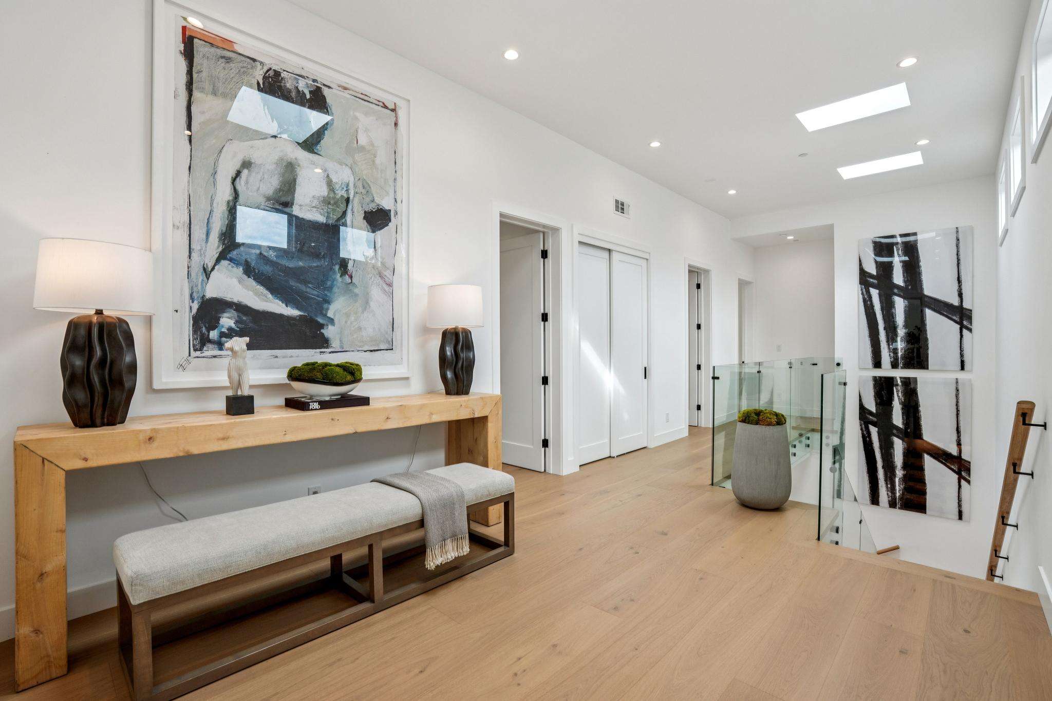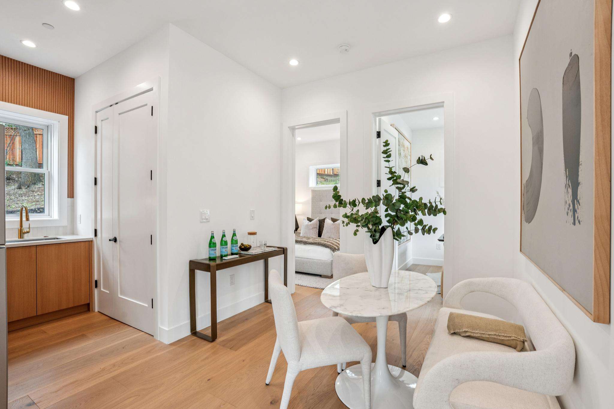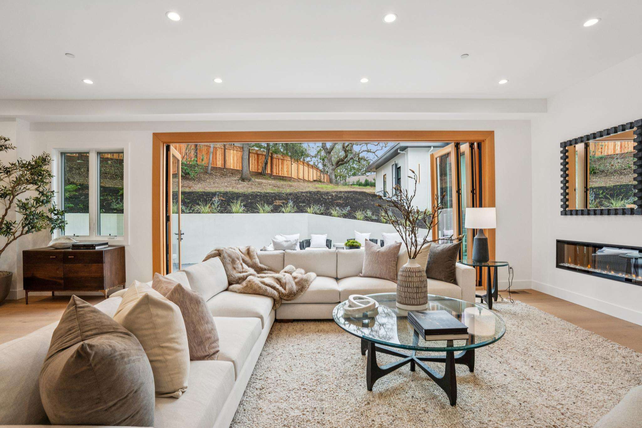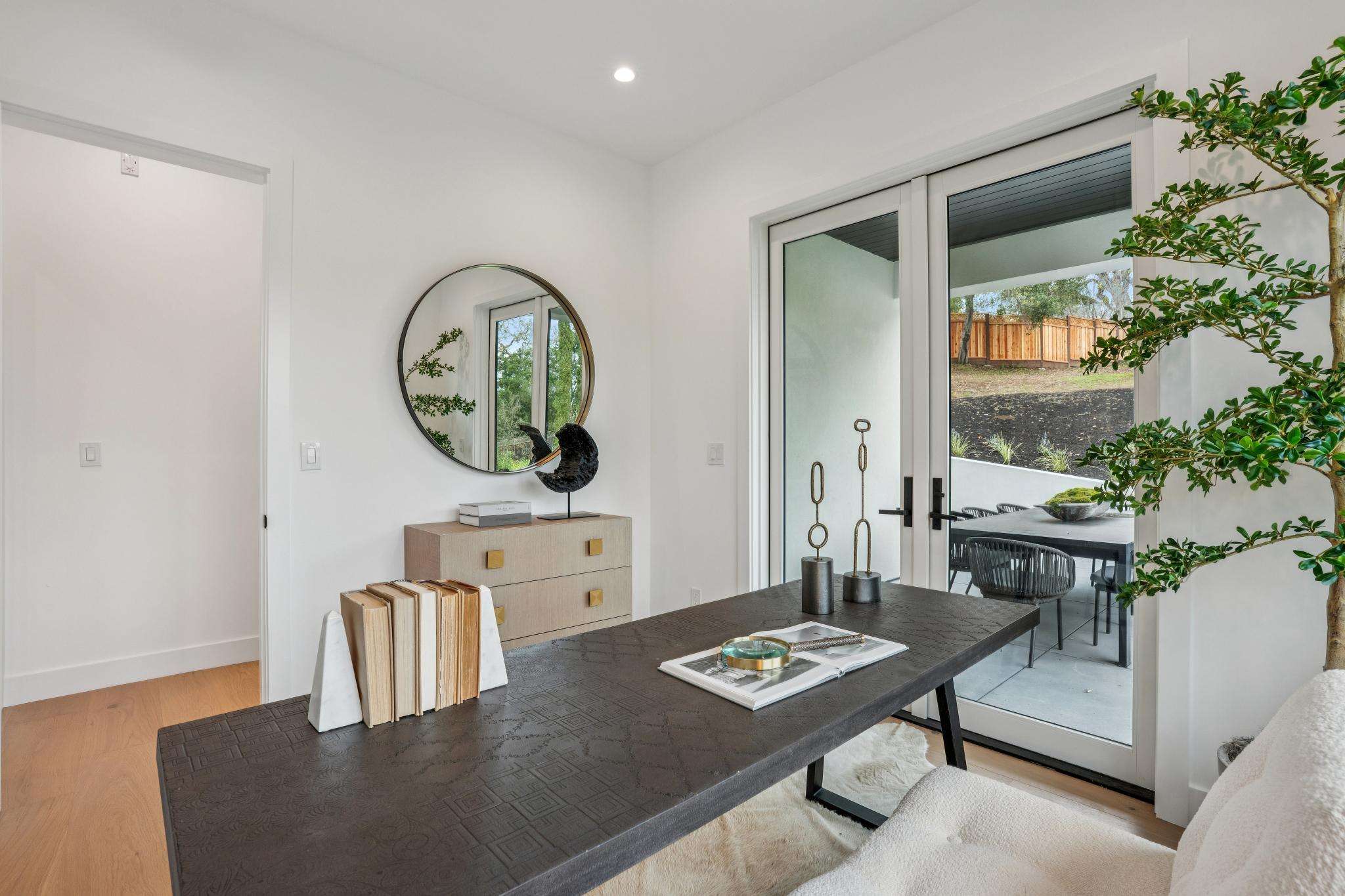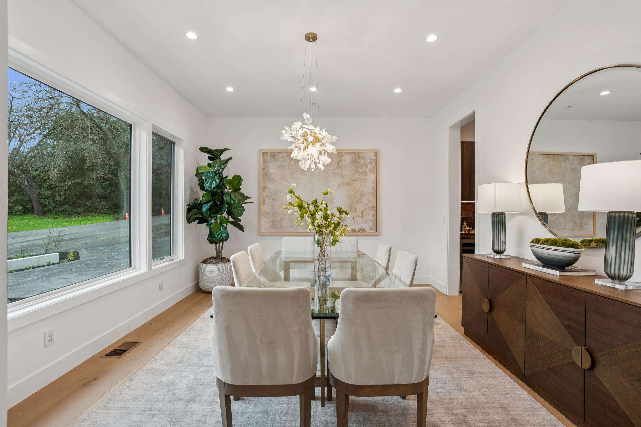 Balancing understated sophistication and artistic vibrance, this bi-level custom estate occupies grounds of nearly 0.5 acre on an exclusive cul-de-sac in the sought-after Country Club neighborhood. Completed in February 2026, the residence reveals sky-lit interiors bathed in natural light and designed to embrace indoor-outdoor living. Highlights include a master chef’s kitchen with butler’s pantry, formal and informal living areas, a ground-level office and bedroom suite, and a spectacular primary suite with spa bath, rooftop patio, and custom luxury closet. A folding wall retracts to connect the gathering areas with an expansive leisure patio—perfect for entertaining. The grounds are newly landscaped and fenced, offering a detached ADU thoughtfully equipped with a full kitchen and two bedrooms. Exciting details include a solid-core pivot door, Taj Mahal quartzite slabs, Italian tiles, German-engineered fixtures, and a floating staircase of wood, metal, and glass. Just one block over from the Los Altos Golf & Country Club. Excellent access to Downtown Los Altos, superb schools, Stanford University, and top tech centers.