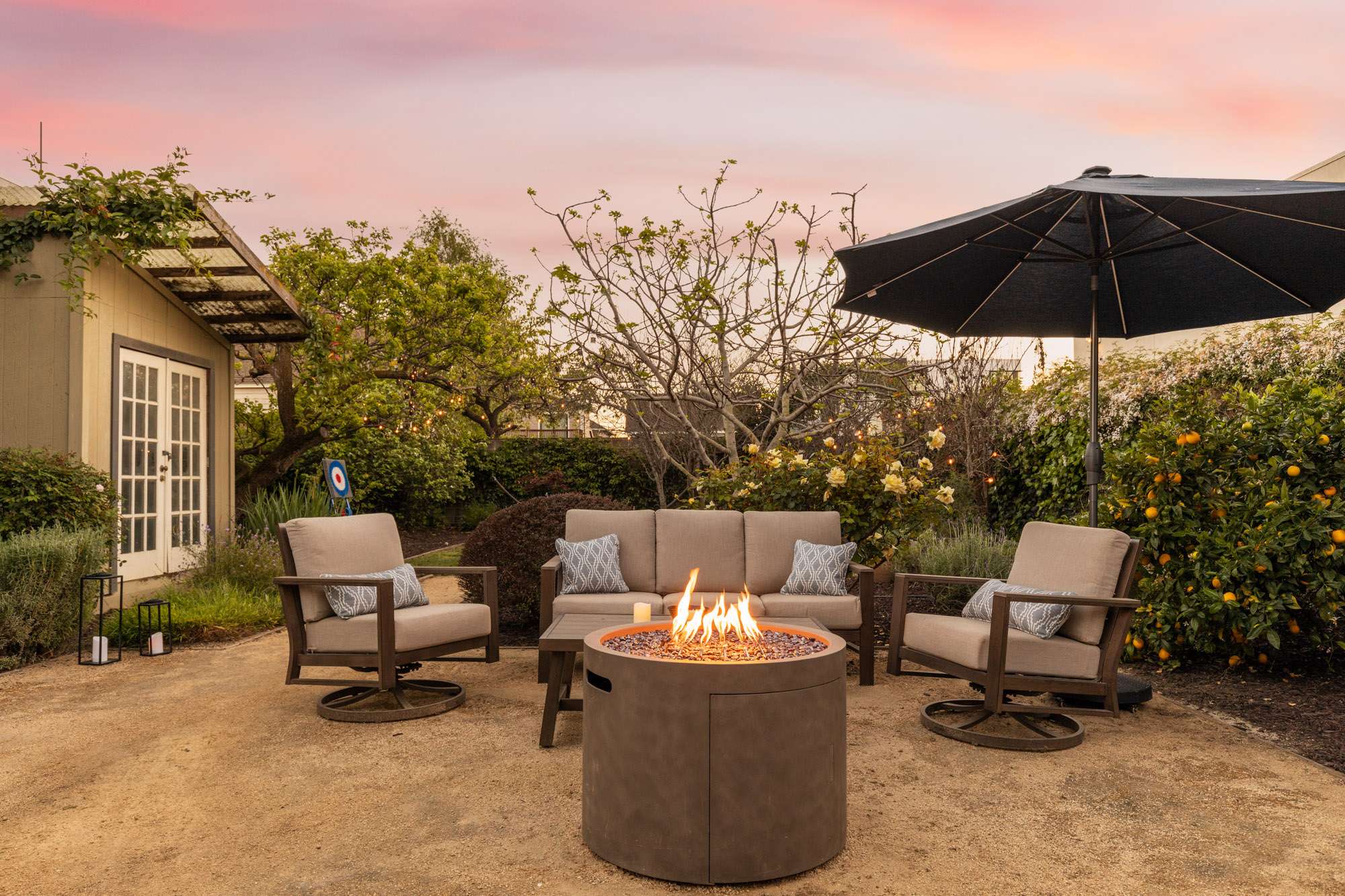 Epic backyard urban oasis with fruit trees, lounge areas, flowers and veggie beds