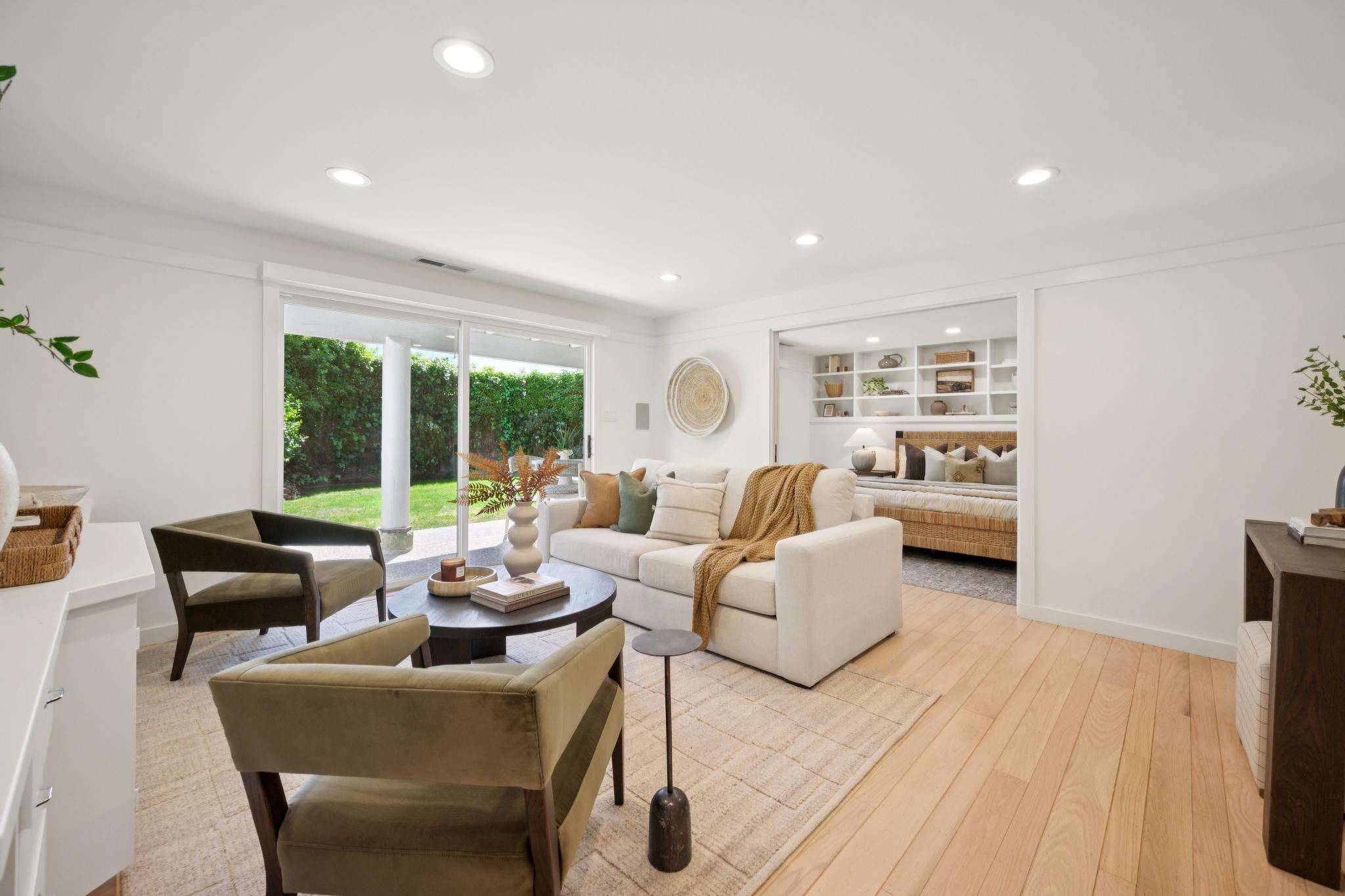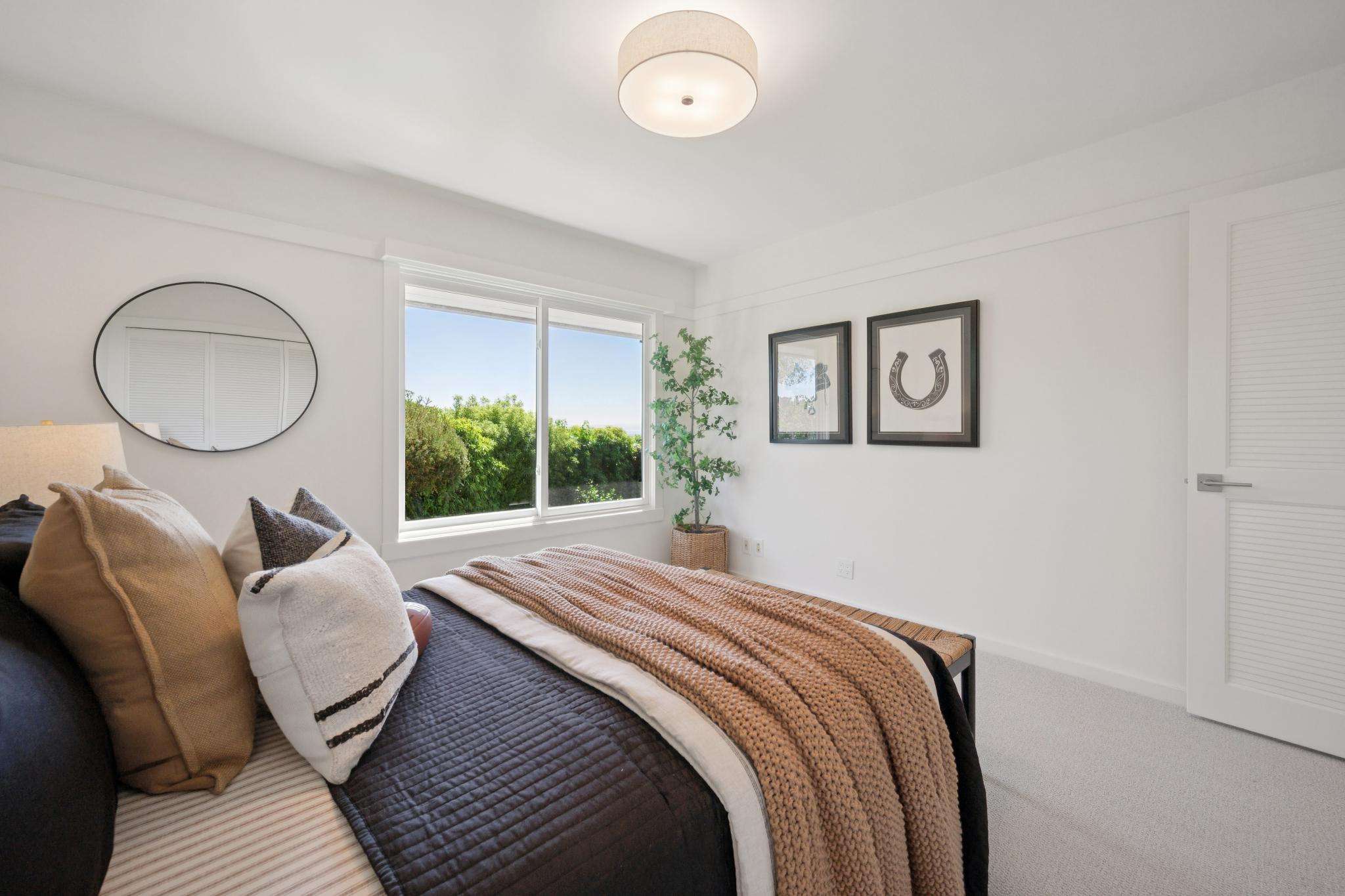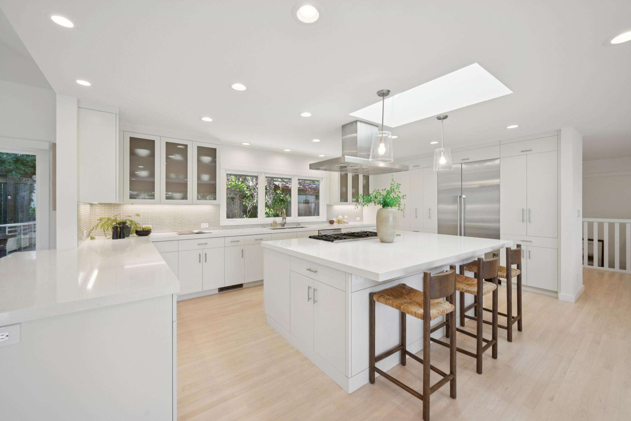 The main living level is beautifully appointed with refinished wood floors, recessed lighting & an abundance of expansive sliding glass doors throughout, bringing the home's incredible setting into every space. The open, airy layout soaks in sweeping views of Richardson Bay, the San Francisco skyline, Angel Island & beyond. The spacious living room is a true showpiece, featuring stunning "wow" views, a fireplace & wide sliding doors that open to the expansive view deck. The chef's kitchen is beautifully designed with quartz countertops, a large center island, abundant cabinetry & stainless-steel appliances, complemented by a window overlooking lush landscaping & opening seamlessly to the living & dining areas; creating an ideal setting for everyday living & effortless entertaining. The generous dining room includes custom built-in shelving & two sets of sliding doors, one opening to a private landscaped patio & the other connecting to the view deck & backyard beyond. Also on this level is a primary suite with a full bathroom & access to a serene landscaped patio, along with two additional bedrooms & a second full bathroom, each enjoying natural light & yard or bay outlooks.