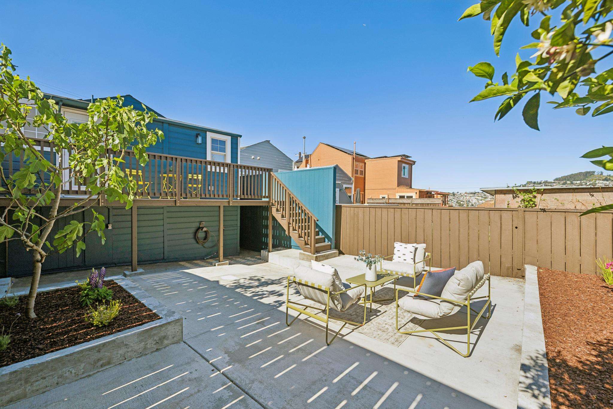 From the upper level and rear deck, take in captivating views of Sutro Tower and Twin Peaks, adding a quintessential San Francisco backdrop to your daily life.