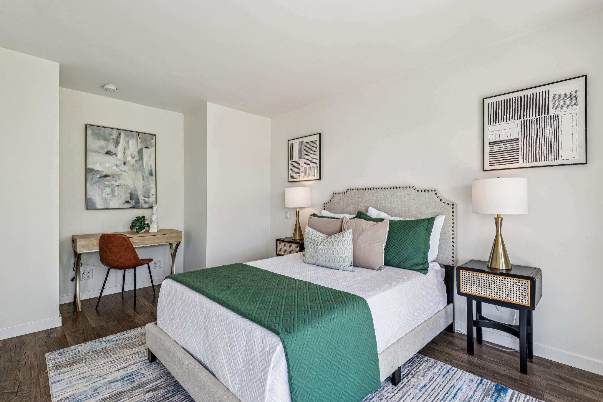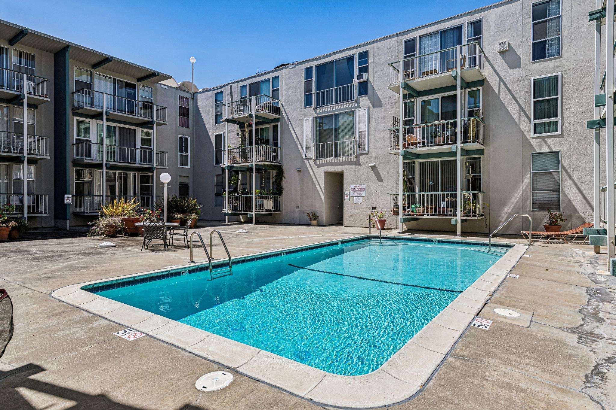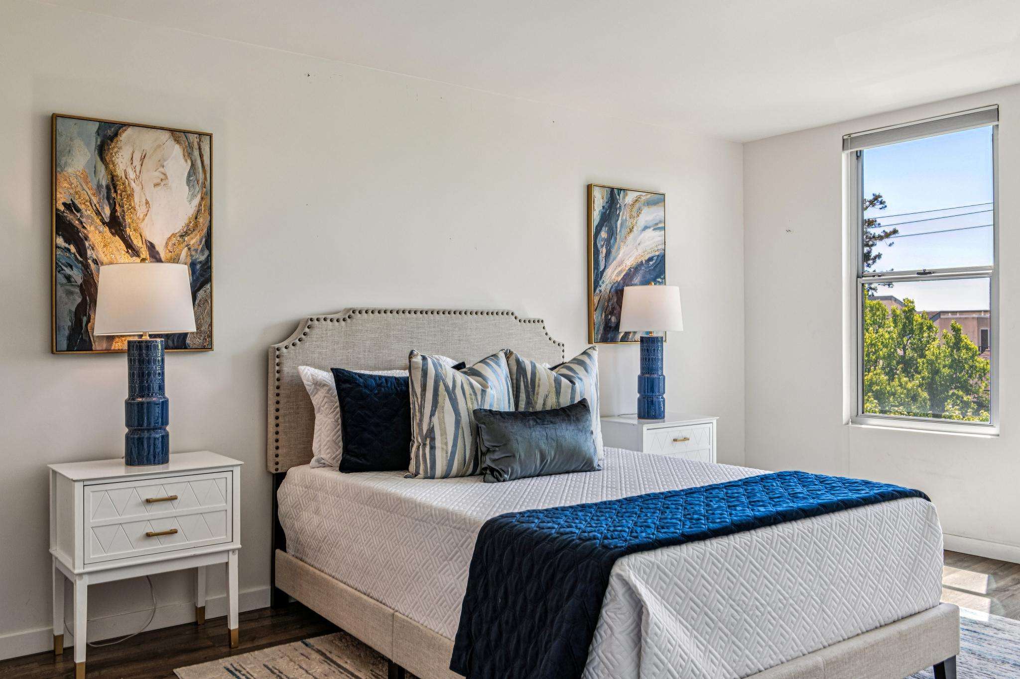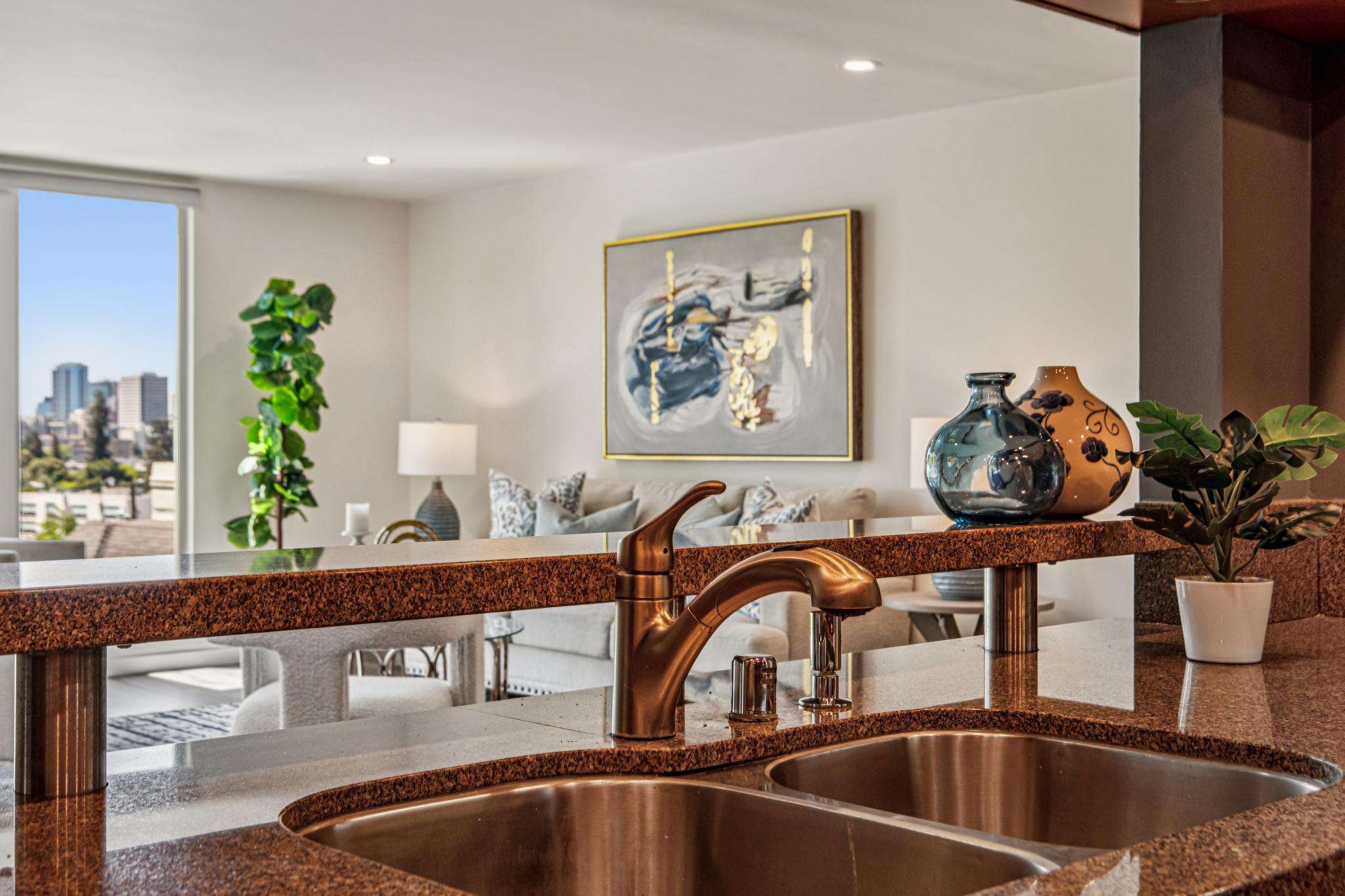 Close to everything and above it all, this bright, sunny top floor condo is your tranquil retreat in the heart of one of Oakland's most vibrant and exciting neighborhoods. Move right in and enjoy contemporary finishes like granite countertops, wood cabinets, sleek modern flooring with radiant heat, and thoughtful upgrades like the motorized awning which can either give you shade on your balcony or let the sun shine in. The spacious primary has a full ensuite and two big closets. The second bedroom has custom doors and could serve as an elegant home office. There is a private storage room right across the hall, indoor gated parking, sauna rooms, and a pool. All just steps from Lake Merritt and all the shopping and restaurants of Grand and Lakeshore. Don’t miss this urban gem.