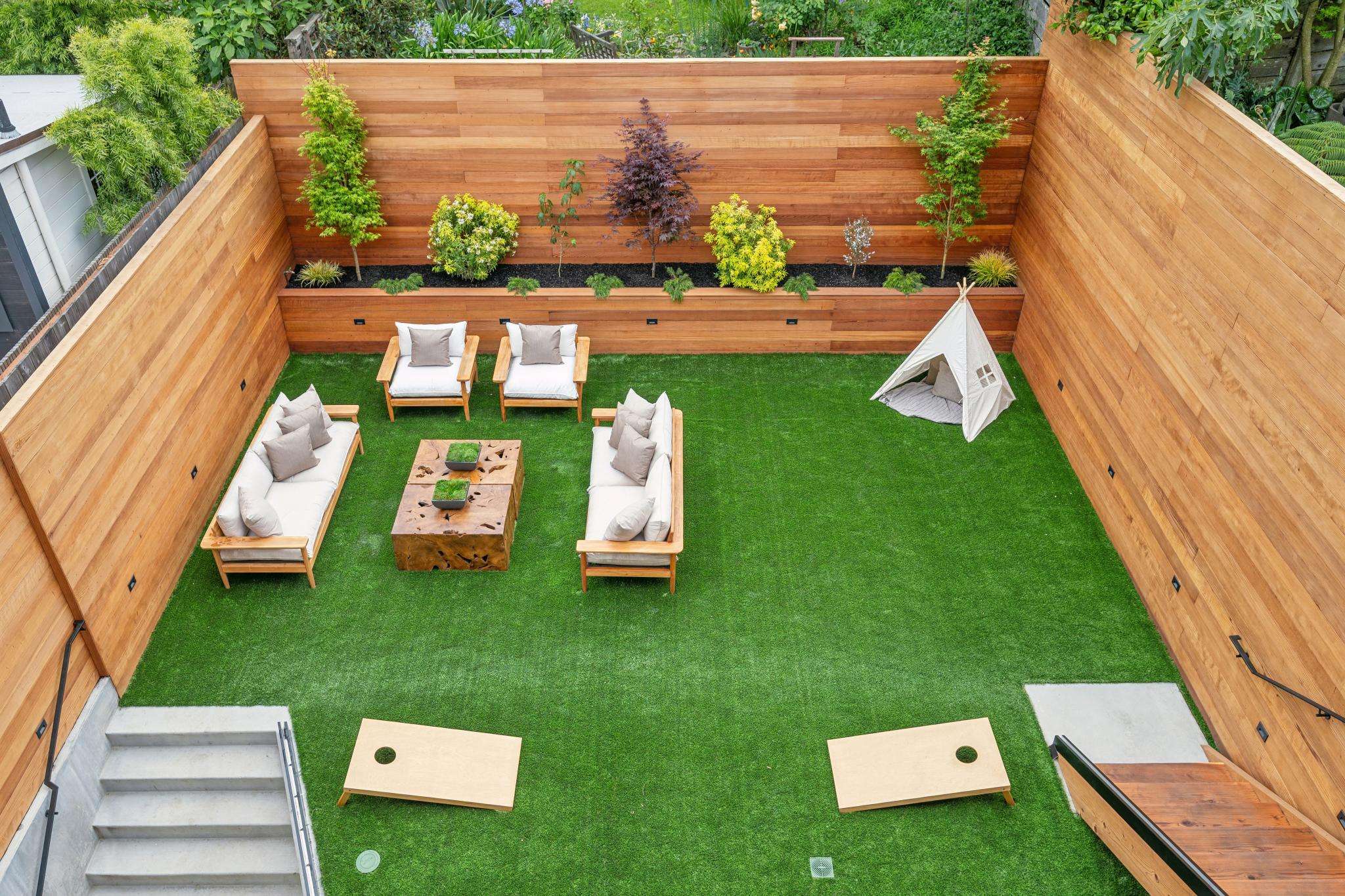 The home is introduced by a striking main entry with a cathedral ceiling and skylights, creating an immediate sense of architectural presence. The primary living level features a grand open‑plan layout with 11‑foot ceilings, custom floor‑to‑ceiling disappearing glass doors, and direct access to an expansive walk‑out terrace and a sun filled, flat rear yard with turf and perimeter lighting – a truly unique entertaining experience.