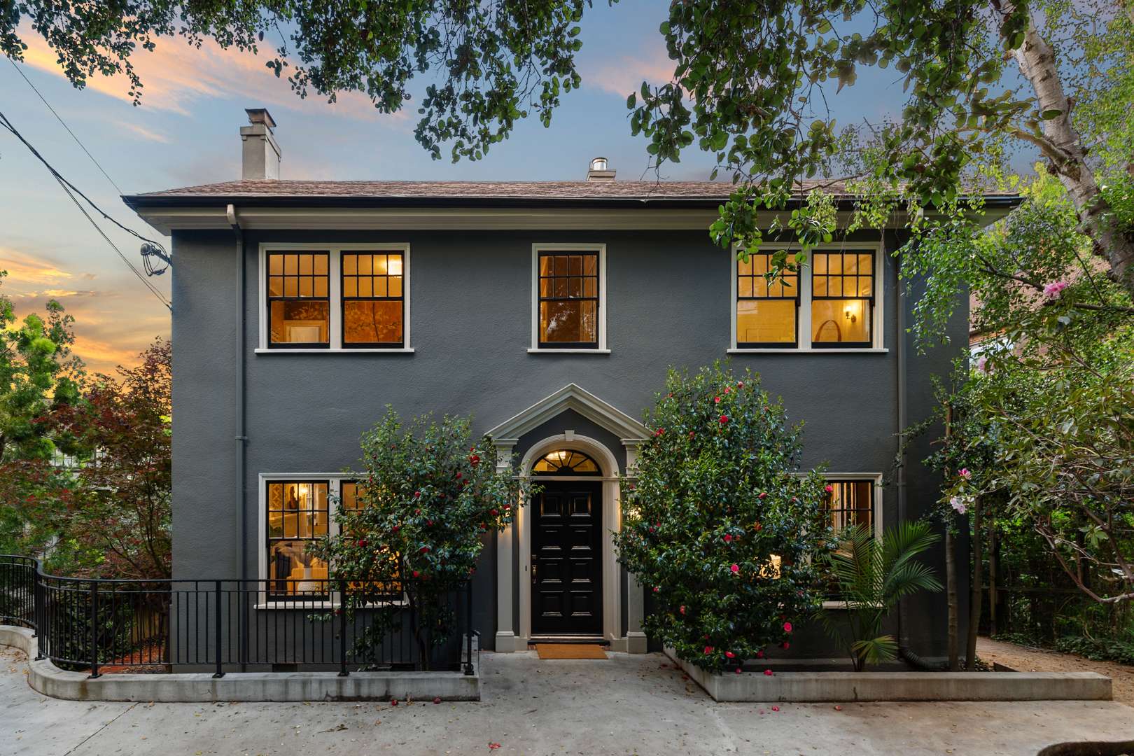 There is a quiet grace to this Claremont home, an ease and warmth that unfolds slowly, inviting you to linger. Set on a lushly landscaped lot, where gardens wrap the home in greenery and light filters through mature trees, this classic traditional offers a rare sense of calm just moments from the vibrancy of the surrounding neighborhoods. A welcoming entry leads inside, where sunlit rooms and timeless details create a feeling of understated elegance. The living and dining spaces flow together effortlessly, anchored by a fireplace and framed by multi-pane windows looking out onto gorgeous trees and plants nearby—rooms that feel both refined and deeply livable. A generous library or family room offers a place to gather, read, or simply be.